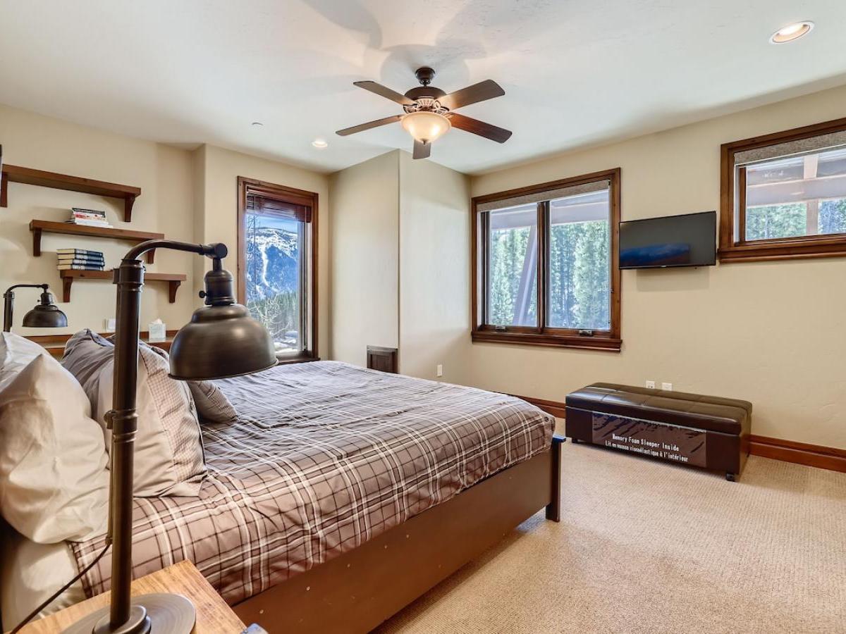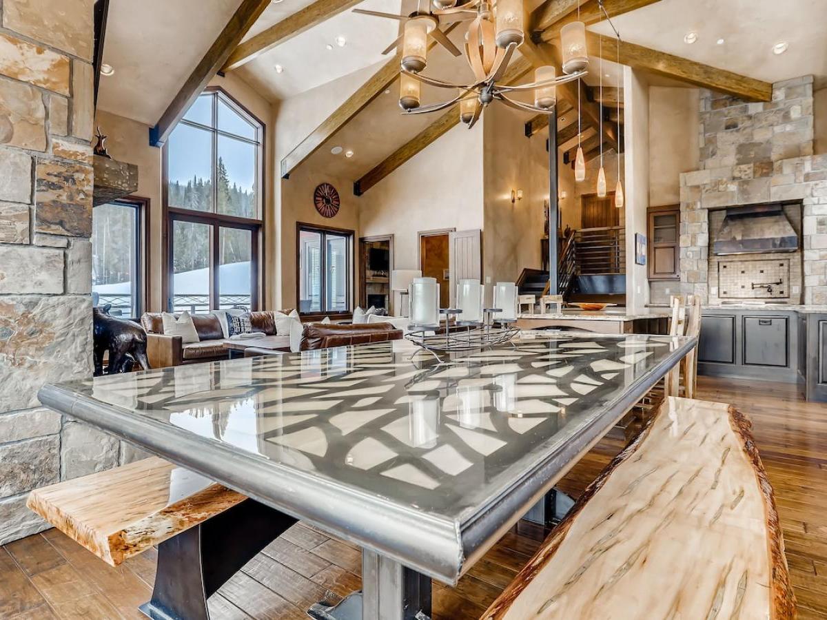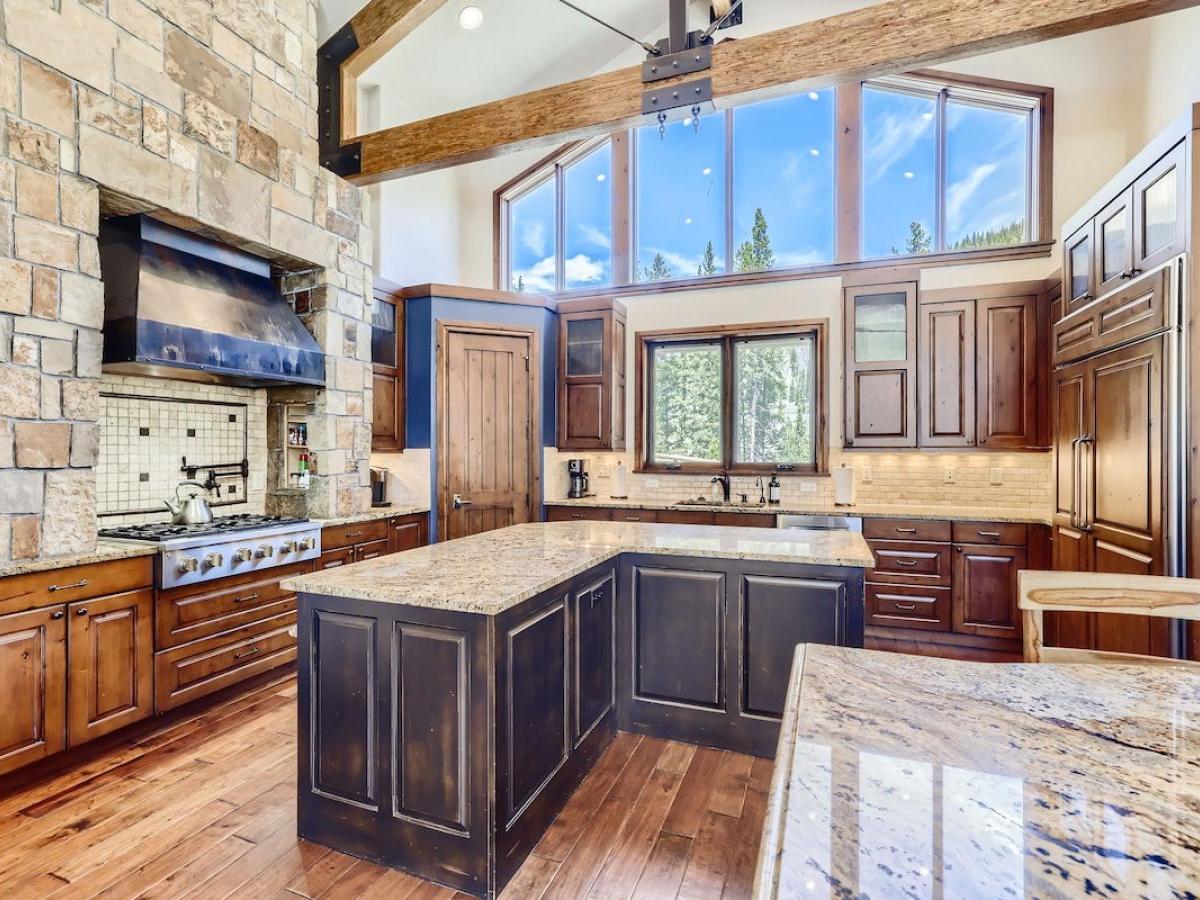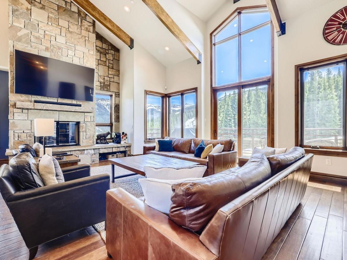 Lewis Ranch Lodge is a spectacular vacation home located slopeside in the Union Creek section of Copper Mountain, just above the Children's Ski School Center in the gated Lewis Ranch community. Featuring over 6,100 square feet of luxurious living space, this six bedroom, seven and a half bathroom residence is beautifully equipped to comfortably accommodate up to twenty guests. From this premier location guests staying at the Lewis Ranch Lodge enjoy ski-in/ski-out access to the slopes and are a short drive to the Center Village at Copper. Designer furnishings centered on a two-story stone fireplace and flat screen television fill the spacious living room which enjoys amazing views of the slopes and surrounding mountains. An adjacent dining area with seating for eight overlooks the Ten Mile Range. Six additional seats are located in the gourmet kitchen around a granite-covered island. Stone accents and large wood trusses are located in the large kitchen which includes upscale appliances and custom cabinetry. This Great Room which encompasses the living room, dining area and kitchen is the ideal space for the entire group to entertain. Exclusive vacation amenities are located on the lower level of the Lewis Ranch Lodge where guests will find hours of enjoyment. Off of the lower level family room which includes a flat screen television is a pool room with stone fireplace and a wine cellar. Movie night will be an amazing experience in the theater room with its unique decorations, state-of-the-art entertainment system, and ultra-comfortable lounge chairs. Relaxing in the private outdoor hot tub while enjoying the spectacular Colorado sunsets will create unforgettable vacation memories. Six bedrooms are spread throughout the massive home offering luxurious furnishings and a level of privacy that is perfect for large groups. One of the rooms is actually a private apartment with a King bed and full kitchen. A second Master Suite is equipped with a King bed, fireplace, private deck, and steam shower. Three of the guest rooms are equipped with Queen beds and the Bunk Room includes Two Queen Bunk Beds. All of the bedrooms at the Lewis Ranch Lodge feature private bathrooms.