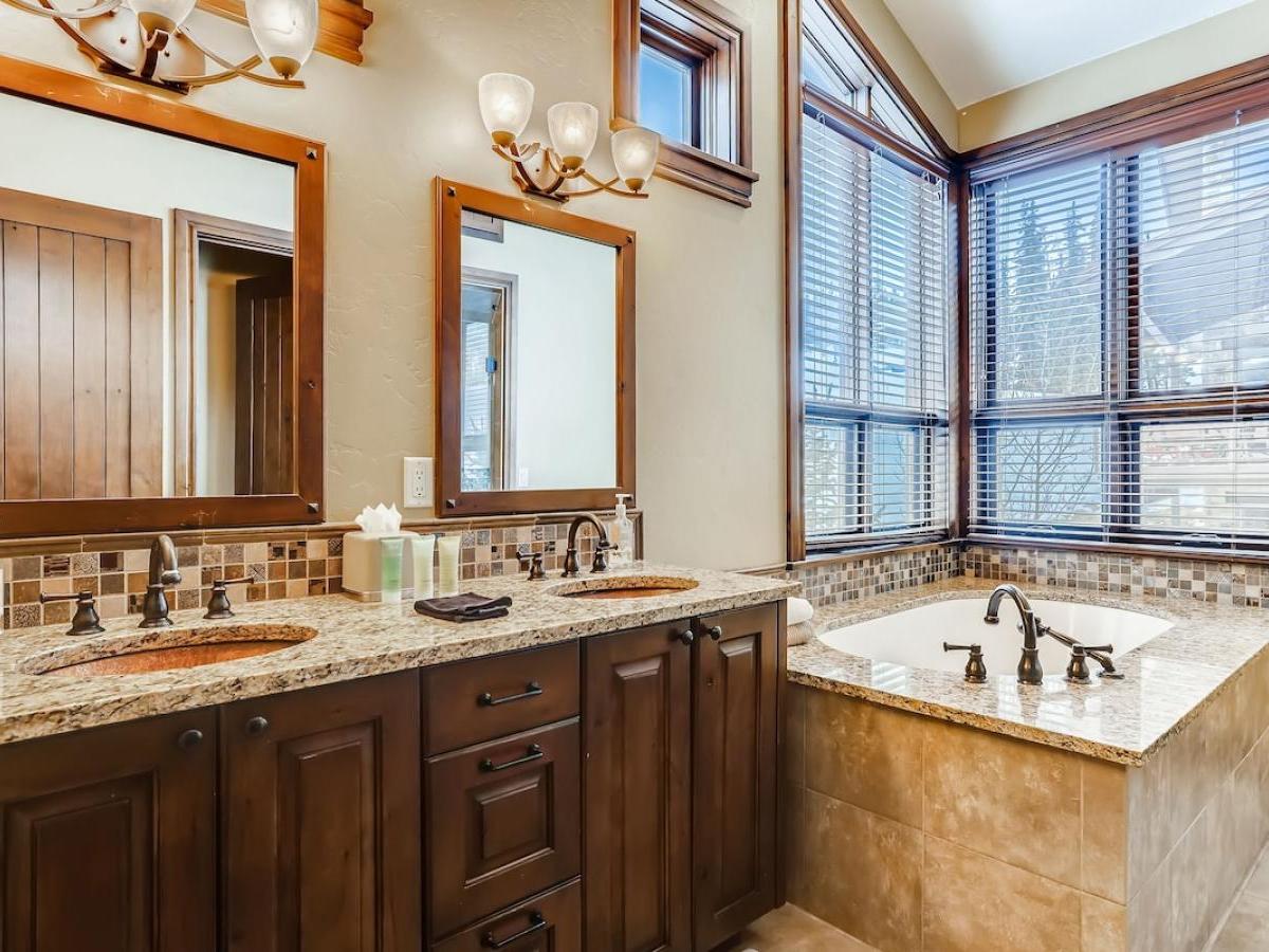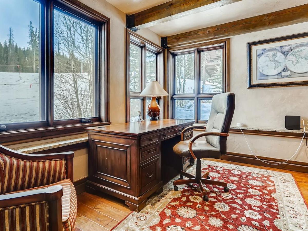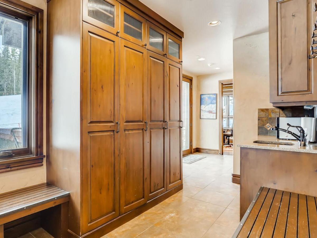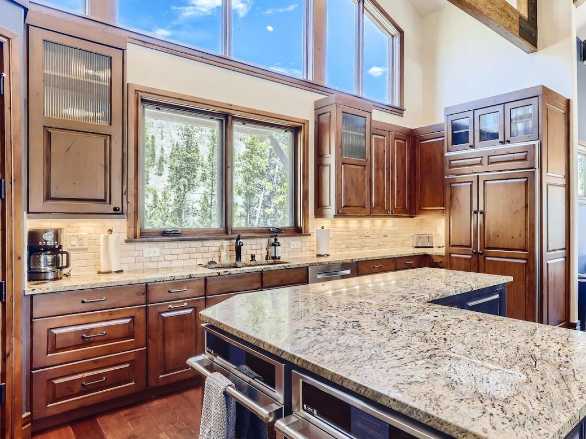 Lewis Ranch Lodge is a spectacular vacation home located slopeside in the Union Creek section of Copper Mountain, just above the Children's Ski School Center in the gated Lewis Ranch community. Featuring over 6,100 square feet of luxurious living space, this six bedroom, seven and a half bathroom residence is beautifully equipped to comfortably accommodate up to twenty guests. From this premier location guests staying at the Lewis Ranch Lodge enjoy ski-in/ski-out access to the slopes and are a short drive to the Center Village at Copper. Designer furnishings centered on a two-story stone fireplace and flat screen television fill the spacious living room which enjoys amazing views of the slopes and surrounding mountains. An adjacent dining area with seating for eight overlooks the Ten Mile Range. Six additional seats are located in the gourmet kitchen around a granite-covered island. Stone accents and large wood trusses are located in the large kitchen which includes upscale appliances and custom cabinetry. This Great Room which encompasses the living room, dining area and kitchen is the ideal space for the entire group to entertain. Exclusive vacation amenities are located on the lower level of the Lewis Ranch Lodge where guests will find hours of enjoyment. Off of the lower level family room which includes a flat screen television is a pool room with stone fireplace and a wine cellar. Movie night will be an amazing experience in the theater room with its unique decorations, state-of-the-art entertainment system, and ultra-comfortable lounge chairs. Relaxing in the private outdoor hot tub while enjoying the spectacular Colorado sunsets will create unforgettable vacation memories. Six bedrooms are spread throughout the massive home offering luxurious furnishings and a level of privacy that is perfect for large groups. One of the rooms is actually a private apartment with a King bed and full kitchen. A second Master Suite is equipped with a King bed, fireplace, private deck, and steam shower. Three of the guest rooms are equipped with Queen beds and the Bunk Room includes Two Queen Bunk Beds. All of the bedrooms at the Lewis Ranch Lodge feature private bathrooms.