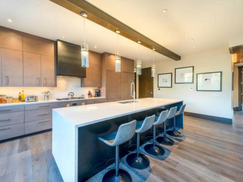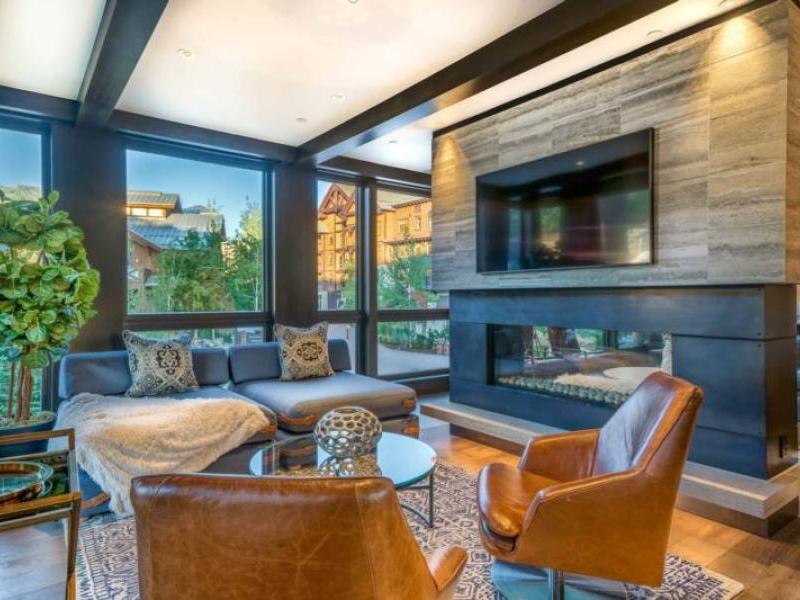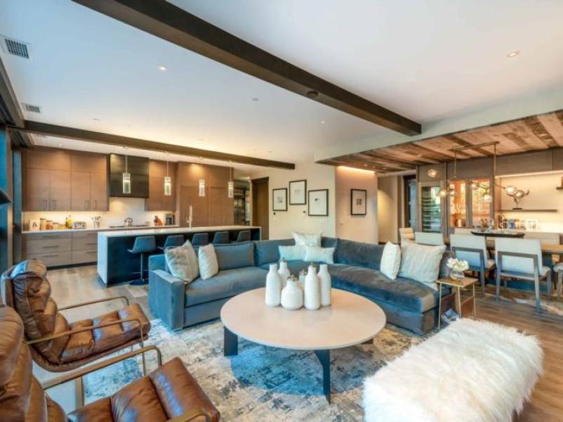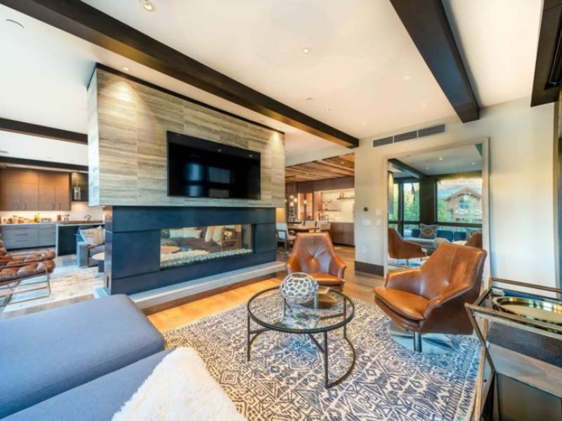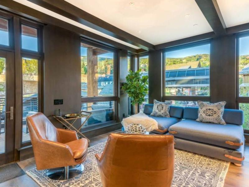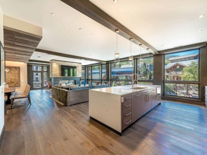 Gaze out upon the legendary Snowmass Mountain from floor-to-ceiling windows that frame the entire living space stretching the length of the residence as you relax amongst designer furnishings and the finest of finishes found throughout the Lumin Residence. Fall in love with the contrast of custom wooden floors, light stone and metal that create a contemporary mountain masterpiece. Large doors open to expand the entertaining space into the outdoors and on the large deck overlooking the action in the base village below. The cascading kitchen island will be your family's gathering place while you prepare a gourmet meal in the upscale kitchen, complete with European Gaggenau appliances and a Sub Zero Wine fridge.