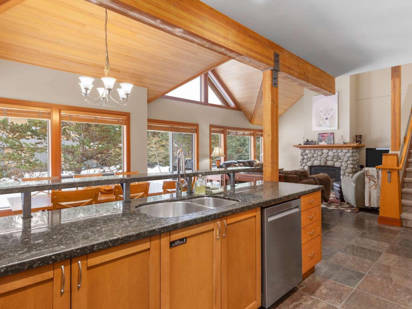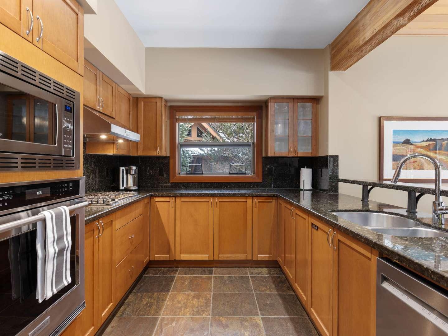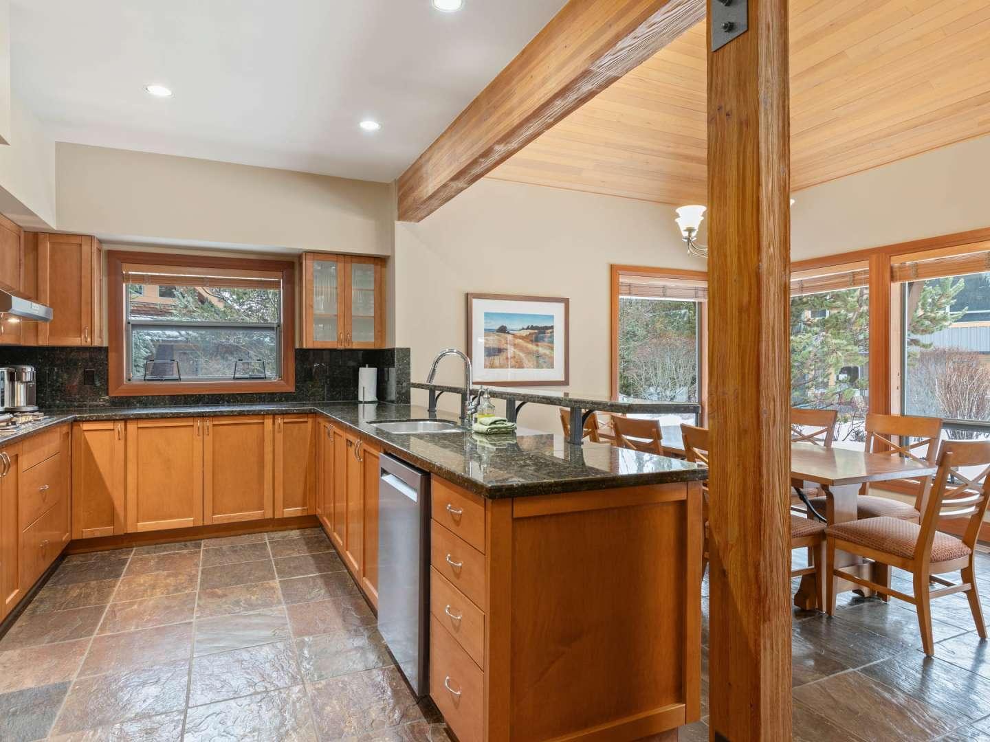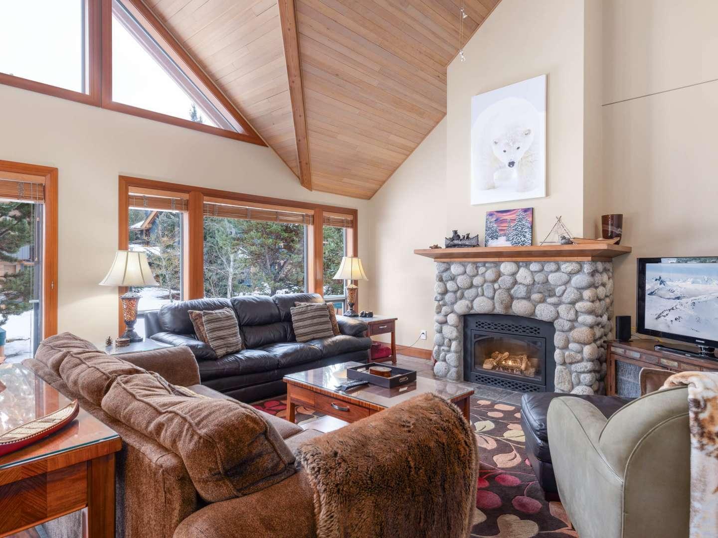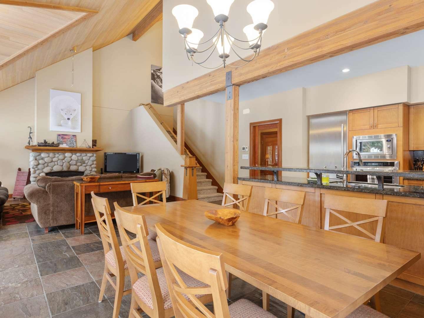 Spacious and open, the Montebello vacation rentals are individually decorated and furnished offering quality lodging to please groups of friends or families. Cozy living rooms are set under vaulted ceilings with comfortable furnishings centered on a fireplace and television. Adjacent to the living room is a dining area and fully equipped kitchen, updated rentals boast granite countertops and upscale appliances. Access to the deck and private hot tub (in select rentals) are off of the dining area.
