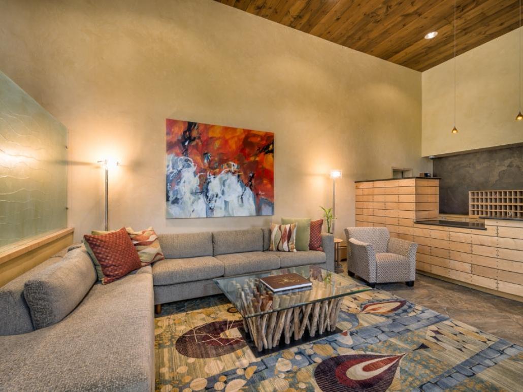 Centered on a modern stone fireplace, the lobby of the Mountain Haus is a wonderful place to enjoy reading a book or to commune before heading out on the town. Unwinding in the outdoor heated pool, sauna, steam room or one of the indoor or outdoor hot tubs after a day on the slopes is a favorite activity for all guests staying at the Mountain Haus. For those who can't get enough exercise on the mountain, the full fitness center offers everything needed to round out the work out.