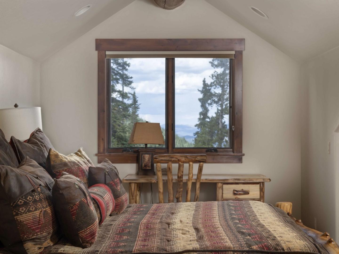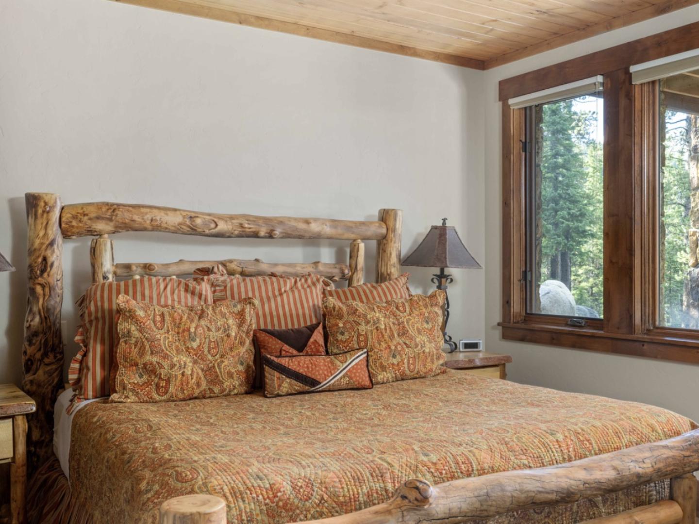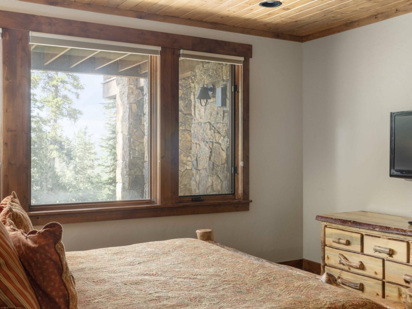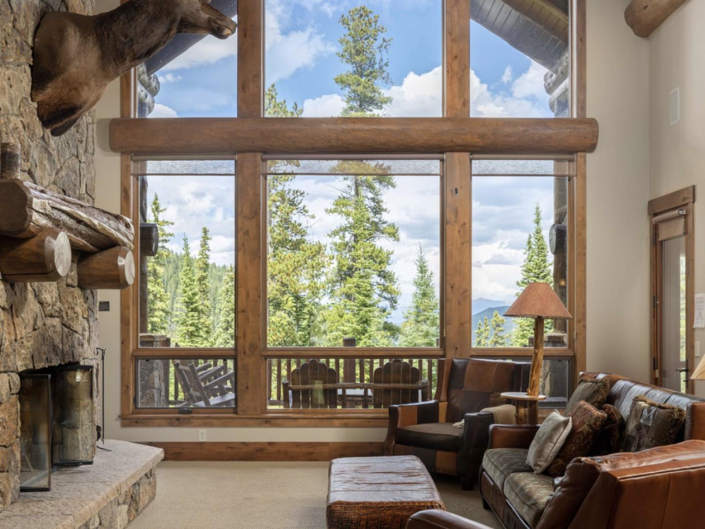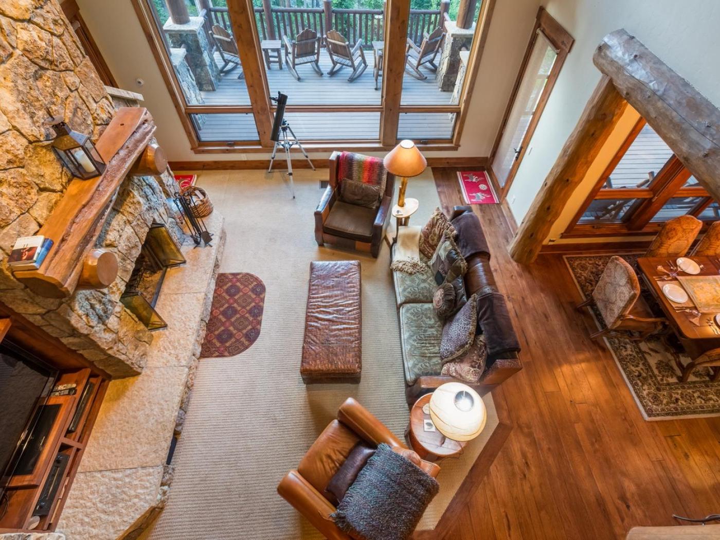 Reminiscent of a classic mountain cabin updated with refined finishes, Mountain Kingdom Lodge welcomes guests with a two-story great room anchored by an enormous wood-burning fireplace, exposed beams, and a built-in entertainment system. Walls of windows frame sweeping views across the tops of the pines to the valley below, and a telescope at the window invites lingering stargazing and wildlife watching.
