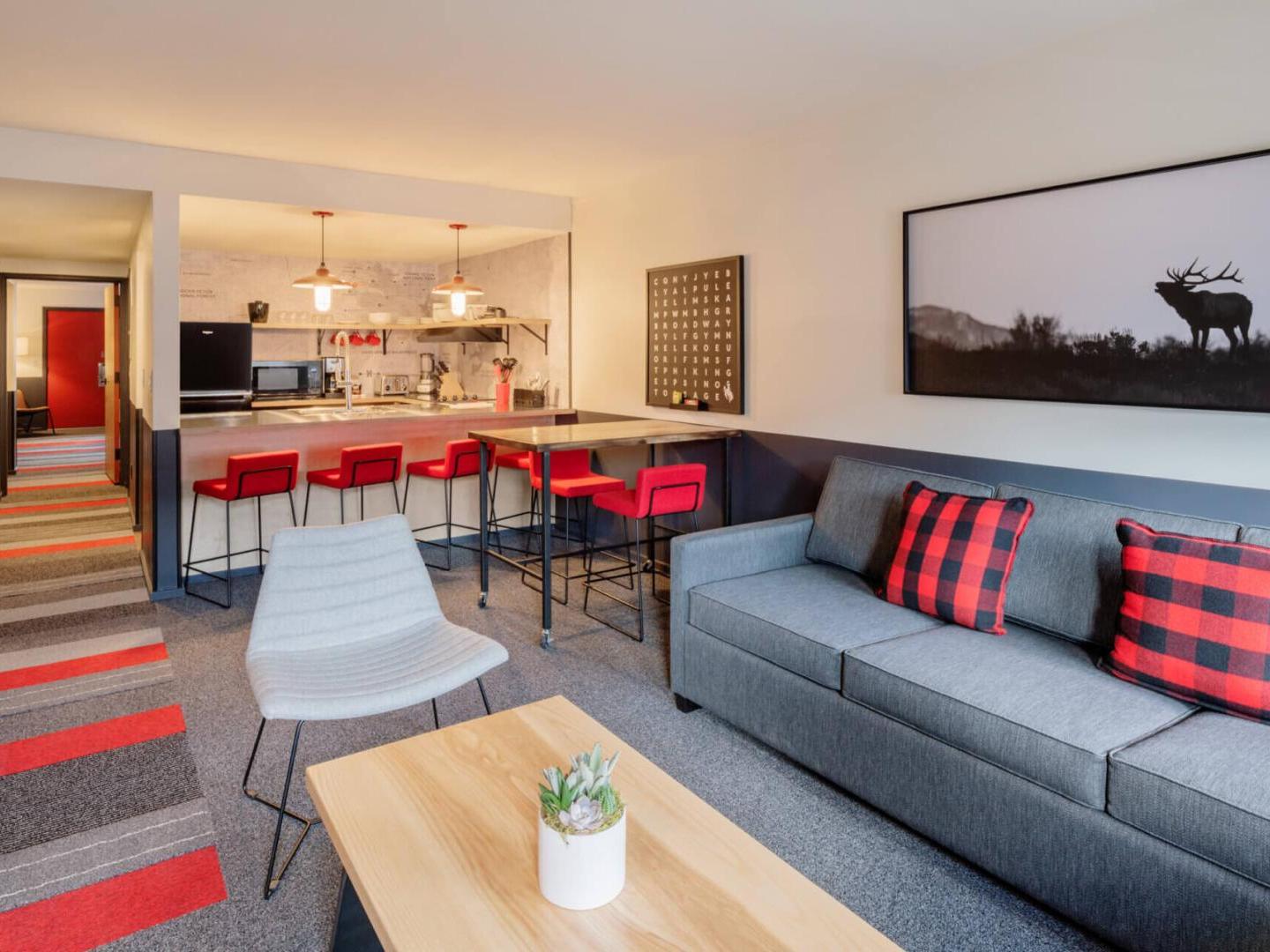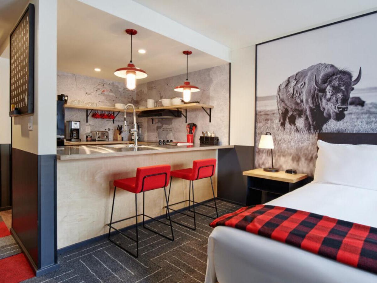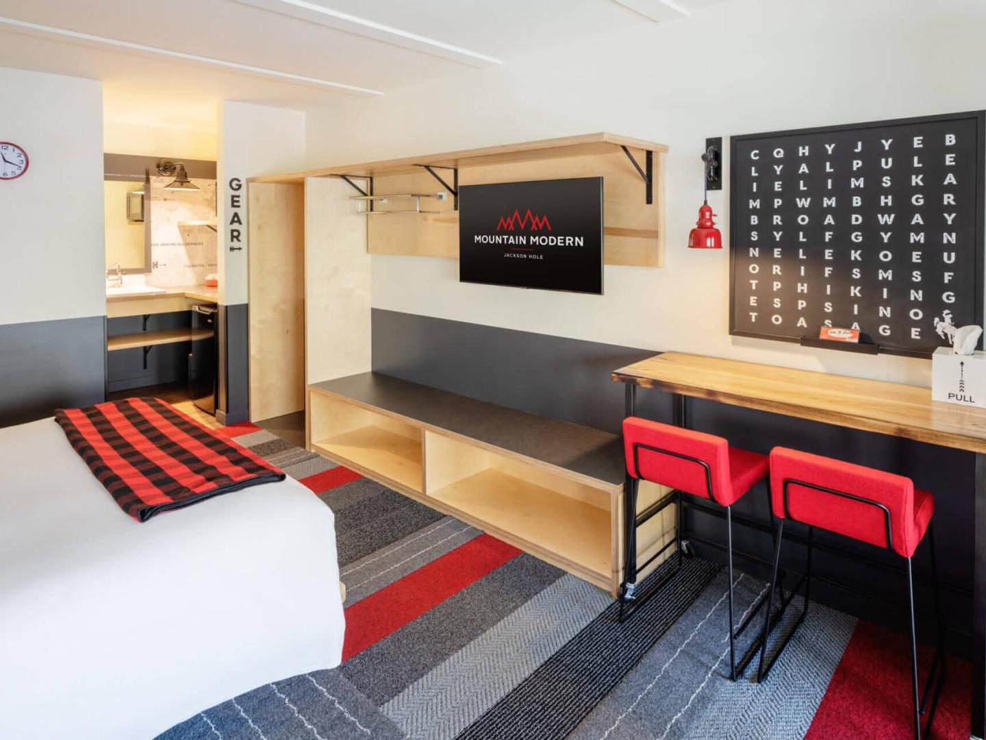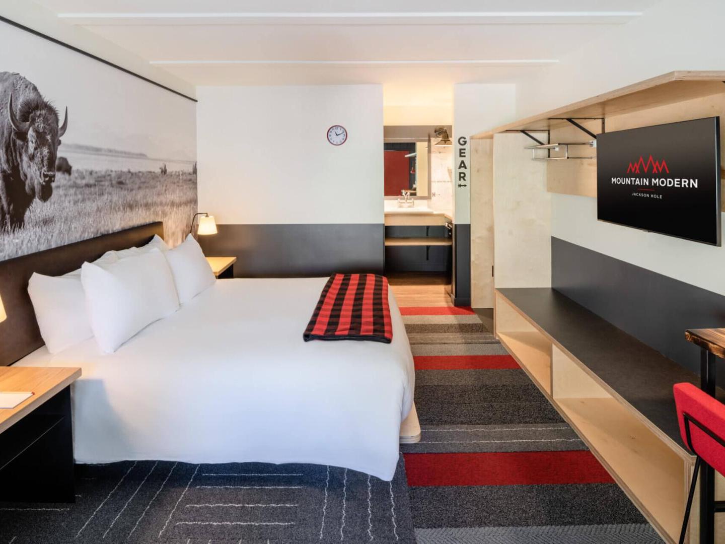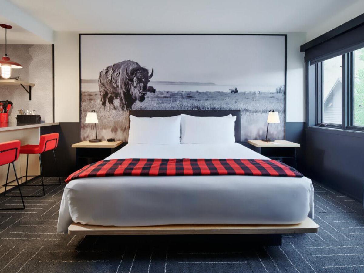 Mountain Modern conveniently sits just a short walk from Town Square, five blocks from Snow King Mountain, and 12 miles from Jackson Hole Mountain Resort. A delightful blend of motor lodge and well-appointed hotel, this charming getaway features guest rooms and condominium-style suites, designed using thoughtful materials, lush amenities and just the right amount of pampering. On-site amenities are plentiful, designed to keep guests relaxed and entertained.