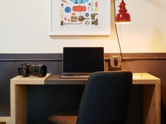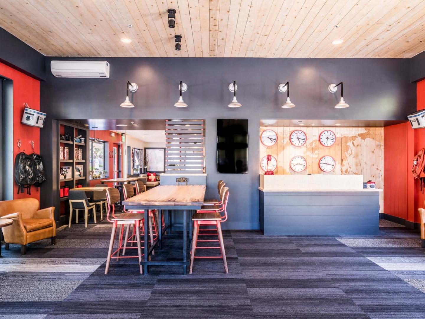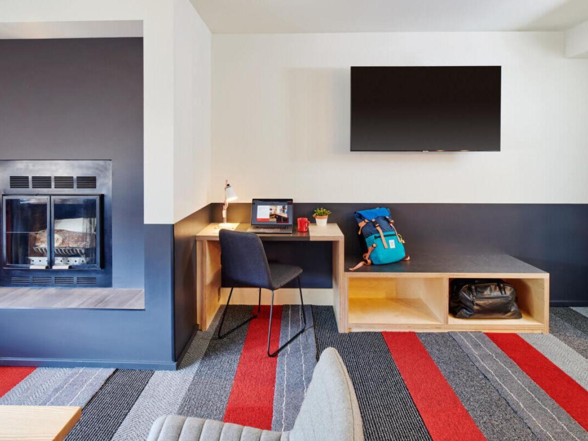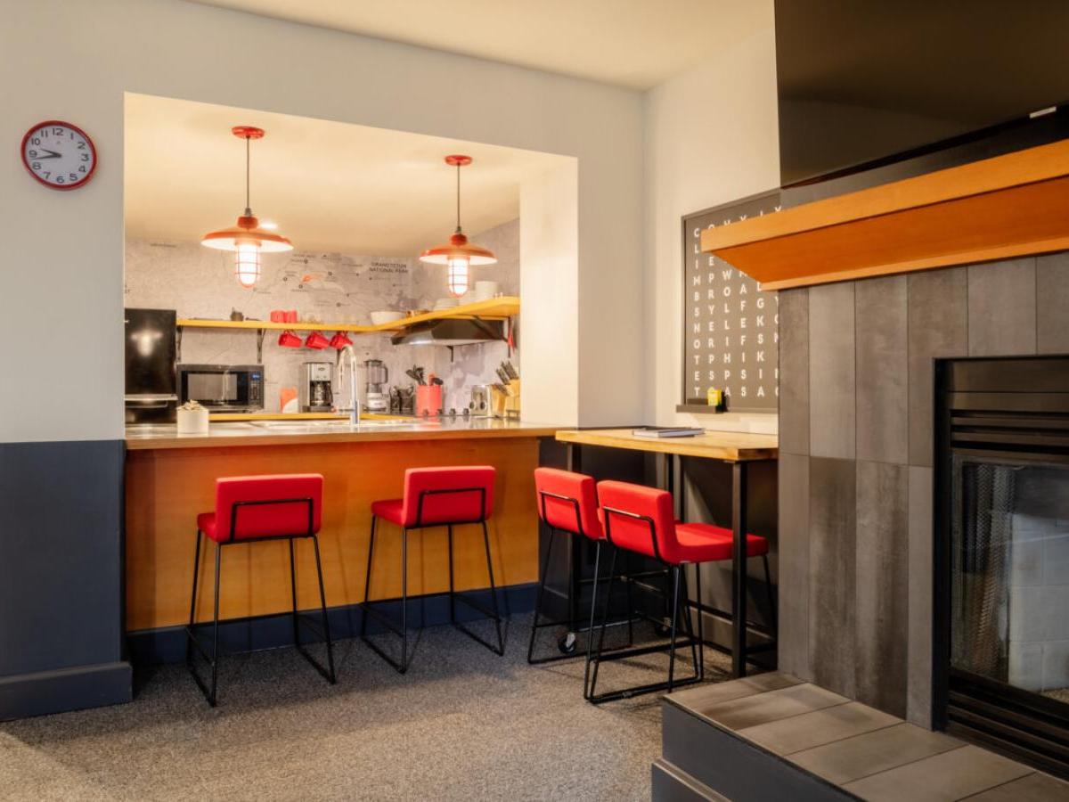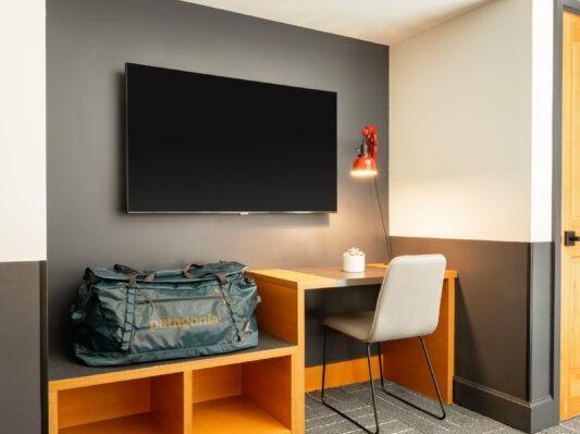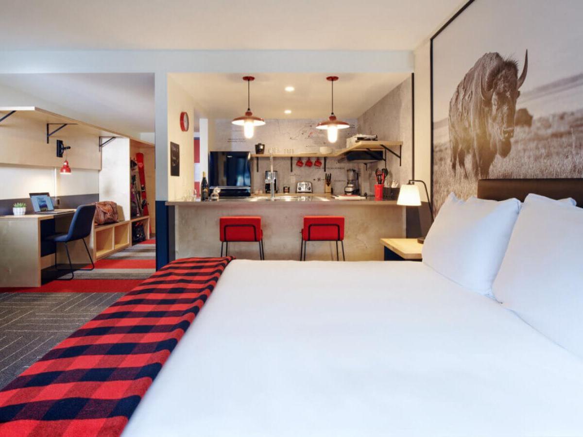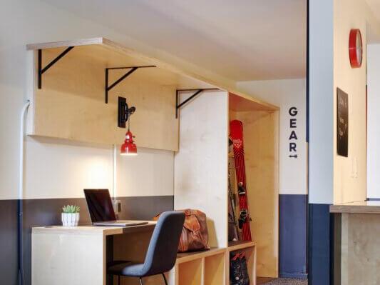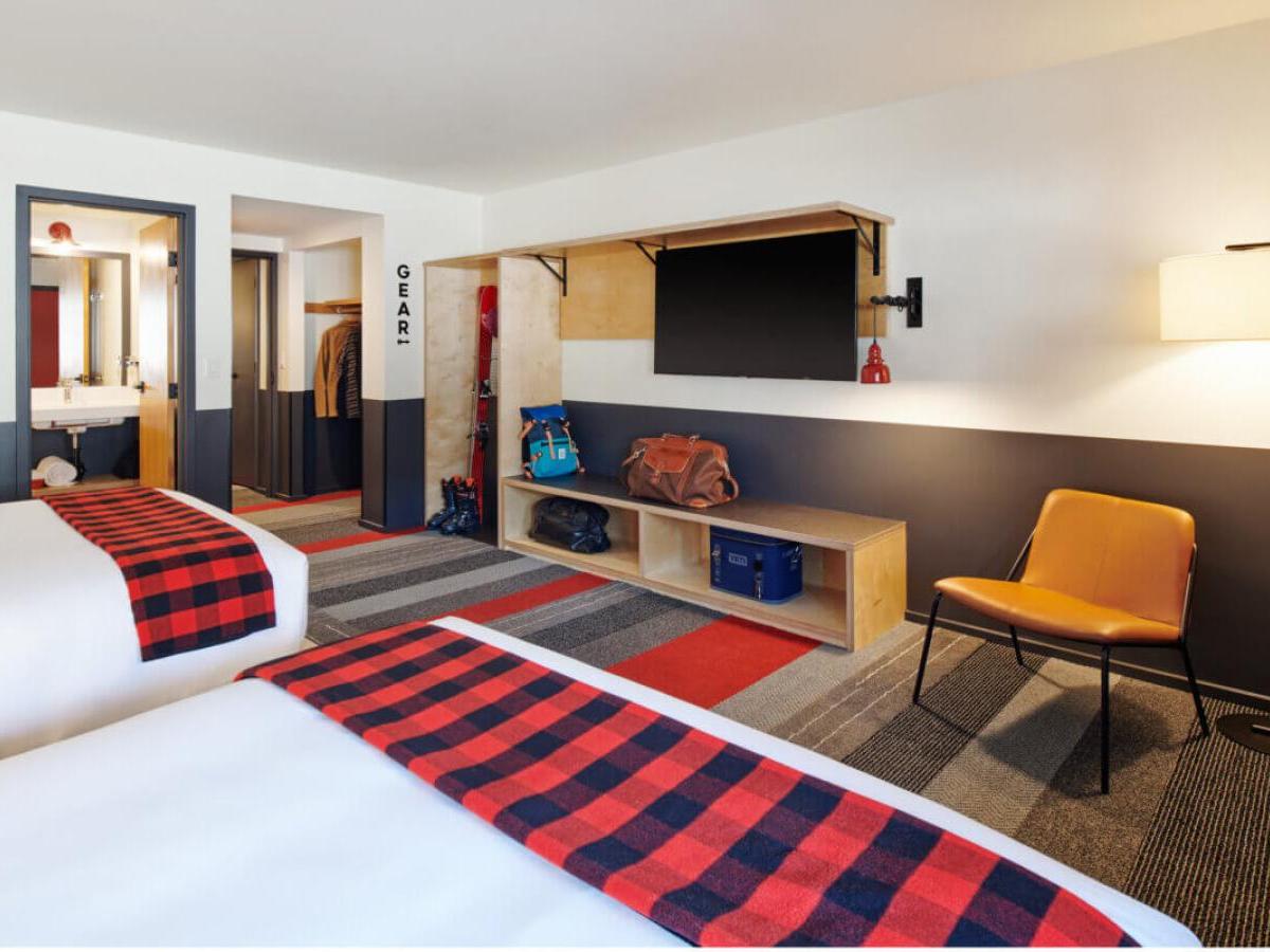 You’ll adore the lobby, boasting a 24-hour front desk, plus a selection of specialty coffees, pastries and delectable eats. They have cozy chairs spread around the deck for relaxing, or if you’re heading out to the slopes or another adventure, there are grab and go food options to keep you well-nourished and hydrated. When you return, take a dip in the heated indoor pool, or enjoy happy hour or a meal in either of the two on-site restaurants. Mountain Modern also offers an on-site salon, laundry facilities and even a bike and gear repair station, designed to keep you fresh, clean and prepared throughout your travels.