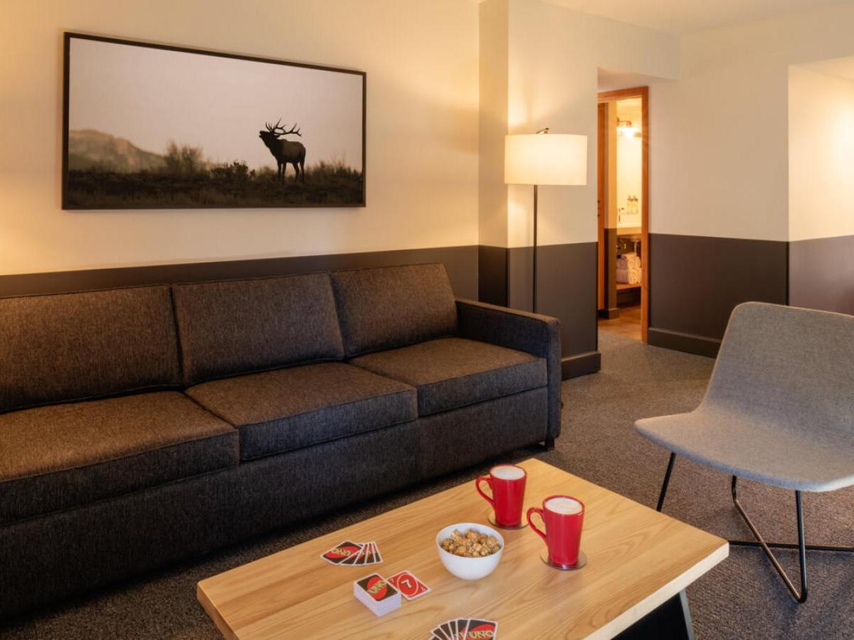 Deluxe Rooms: Ranging from 225 to 300 square feet, each Deluxe Queen room features one queen to accommodate two guests, while the Deluxe Double Queen offers two queen beds for up to four guests. Two rooms can be connected for an even larger space if needed. All of these lux accommodations boast mini fridges and microwaves, plus tons of storage space for your adventure gear.