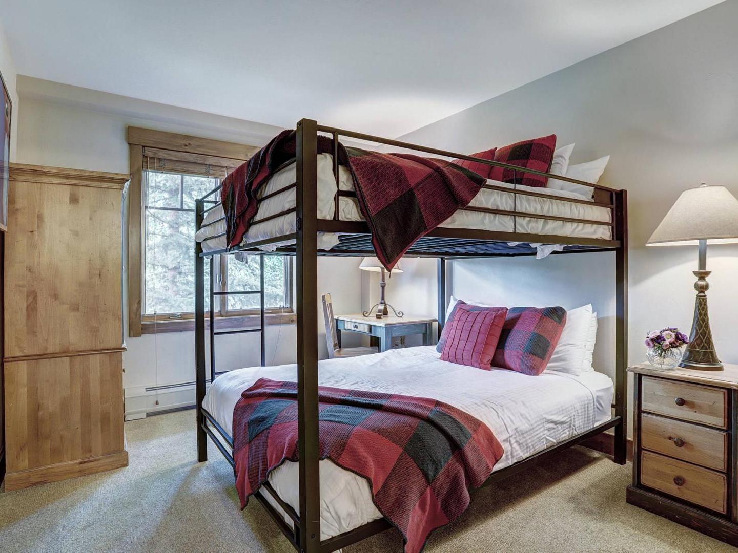 Mountain Thunder Lodge evokes a luxurious yet rustic feel with a gorgeous main floor grand lobby adorned with log accents, slate floors and plush furniture. Meet friends apres ski by the cozy fire in the lobby’s spacious sitting area. Vacationer’s needs are a top priority with 24-hour guest service, an on-site concierge for assistance with activities and dining, and complimentary curbside shuttle service. After an exhilarating day on the slopes, guests can enjoy access to the year-round heated outdoor pool, pool house and several hot tubs. There are two state-of-the-art fitness facilities on the property as well as a children’s play area, covering bases for both young and old to enjoy their time at this alpine retreat. Guests are also privy to all the incredible amenities located at One Ski Hill Place including a two-lane bowling alley, two movie lounges, an aquatics center with two indoor pools, and a sports massage center featuring a steam room and sauna.
