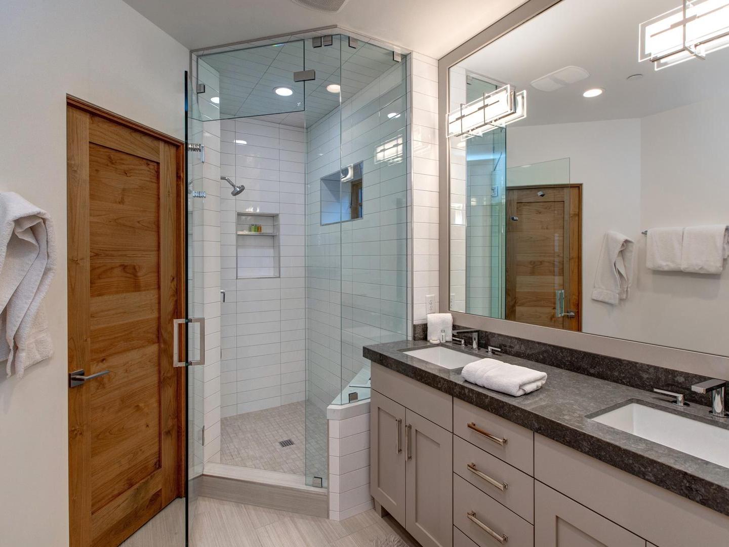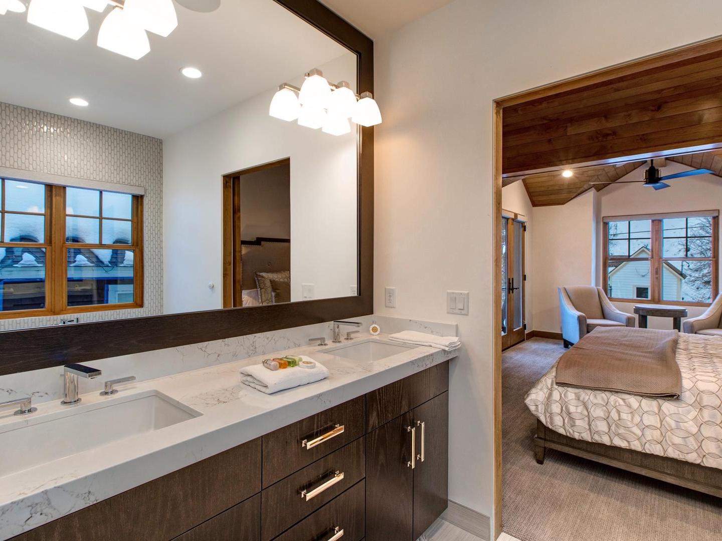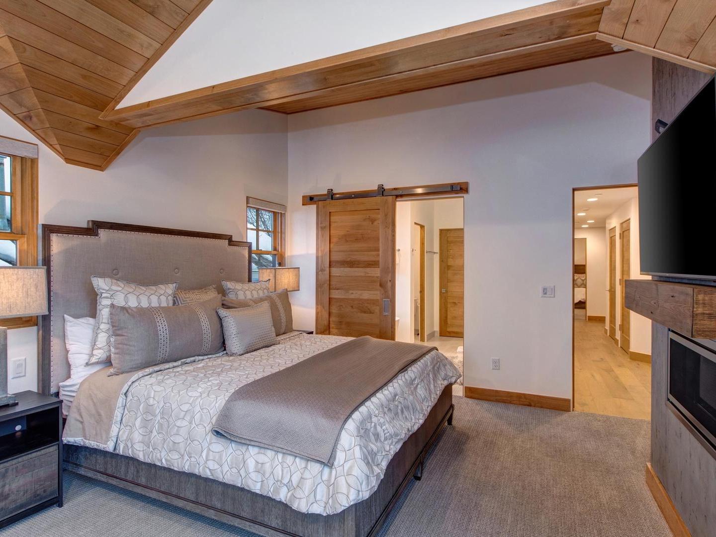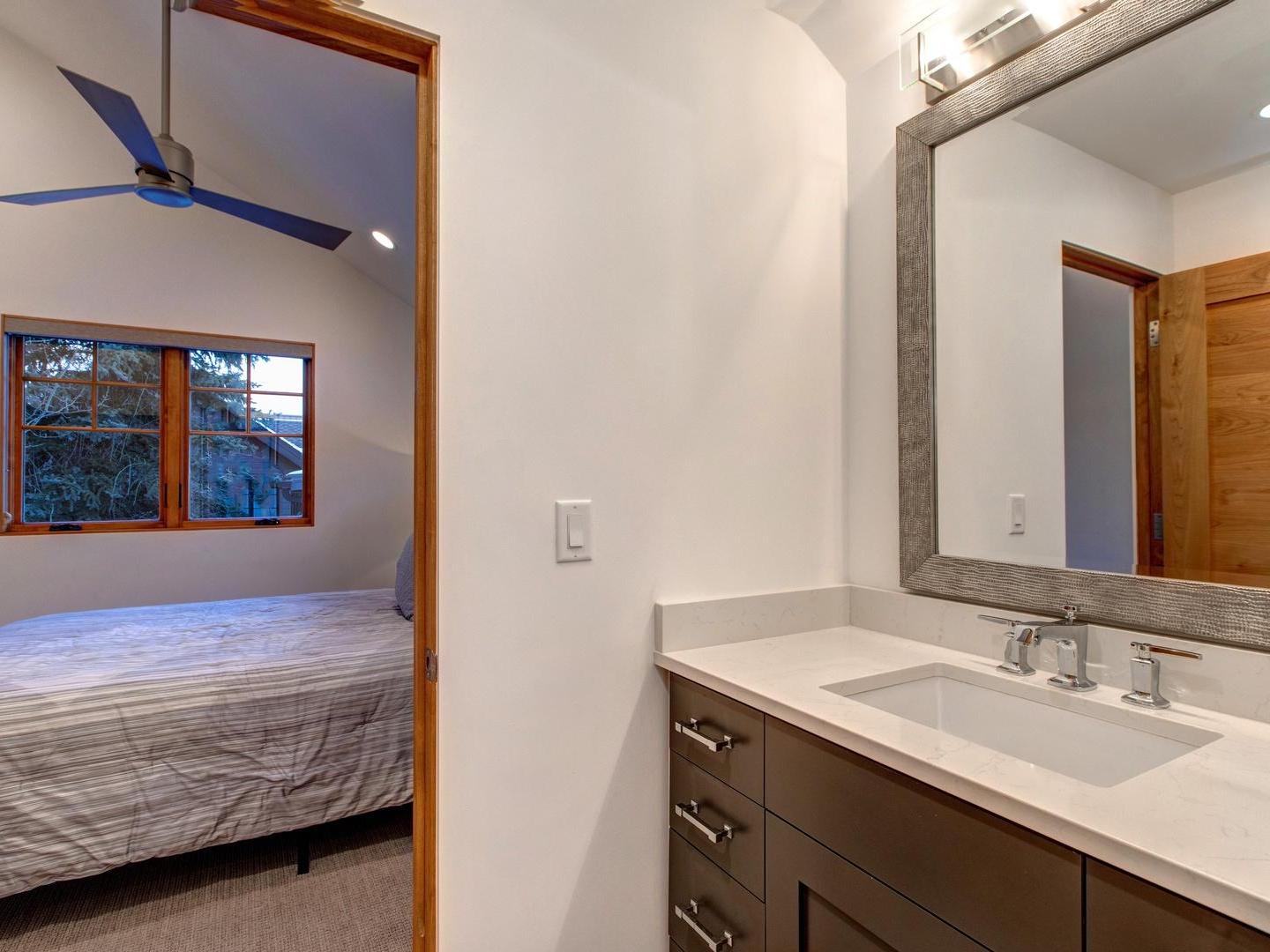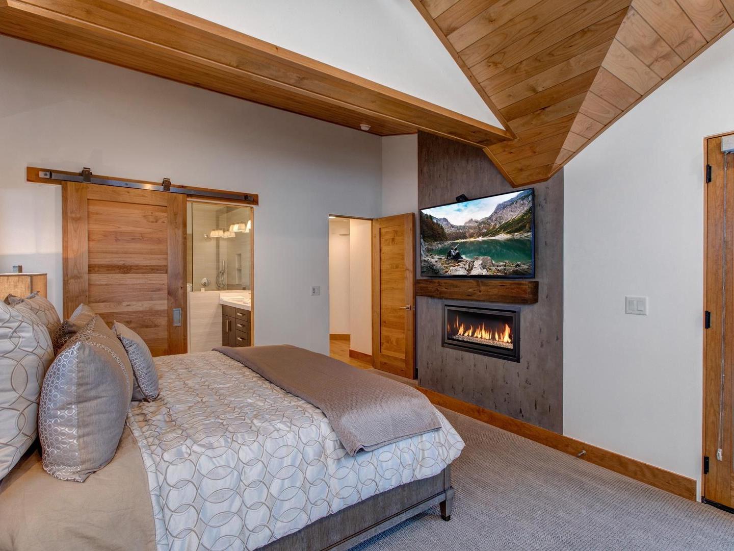 Six bedrooms are split between the second and third level of the home with 3 on each floor. Level two is home to the primary suite offering a King bed, gas fireplace, private deck, and private bathroom with a soaking tub and steam shower. One of the guest bedrooms on this level is outfitted with a King bed, gas fireplace, private deck, and private bathroom with a walk-in shower. The third guest bedroom is furnished with a Queen bed and offers a private bathroom. All three bedrooms on the third level include private bathrooms, two are furnished with Queen beds while the final bedroom offers two Twin beds.