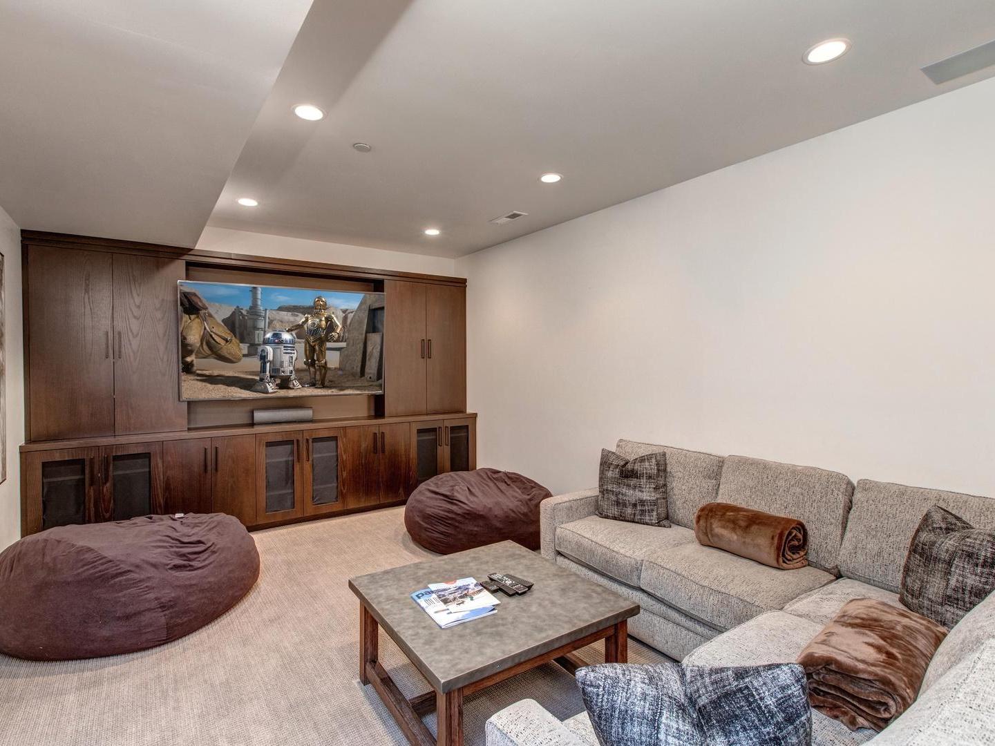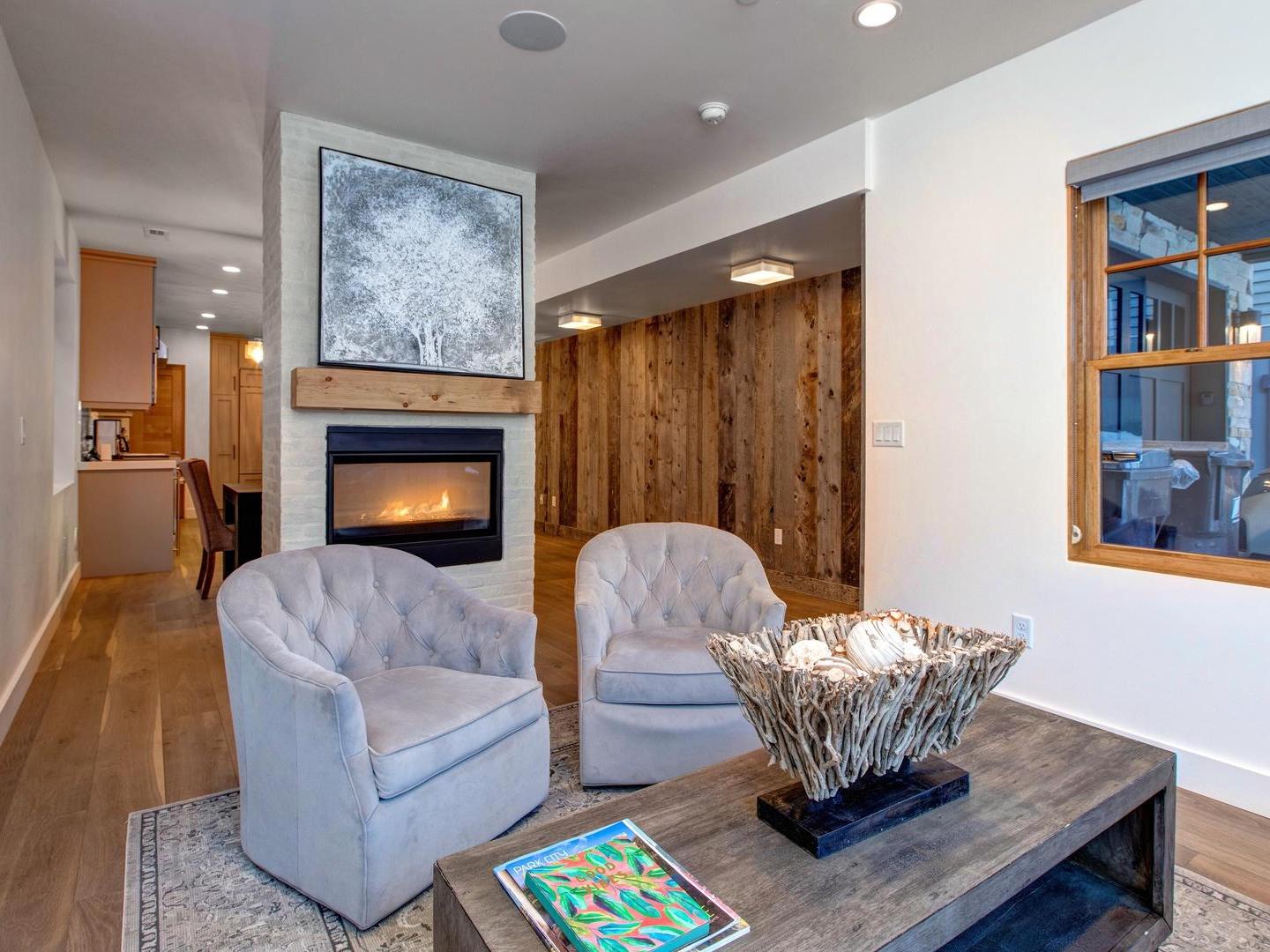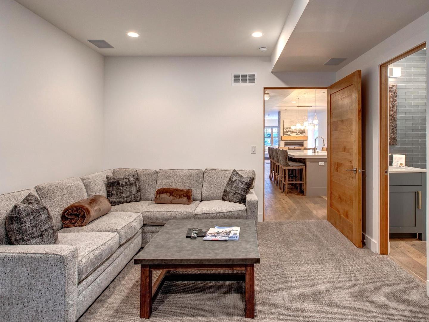 Spread over four levels with multiple living spaces, this 6 bedroom vacation home with 6.5 bathrooms presents the ideal retreat for groups of up to 12 guests. Enter on the main level which features a cozy sitting area with a double-sided gas fireplace on one end and an inviting den with a large screen television on the other end. Between the living areas is a dining table with seating for 6 guests that sits on the opposite side of the fireplace and a gourmet kitchen featuring a large breakfast bar that seats an additional 6 guests. Chefs in the group will love the kitchen boasting Wolf and Sub-Zero appliances and beautiful polished stone countertops.