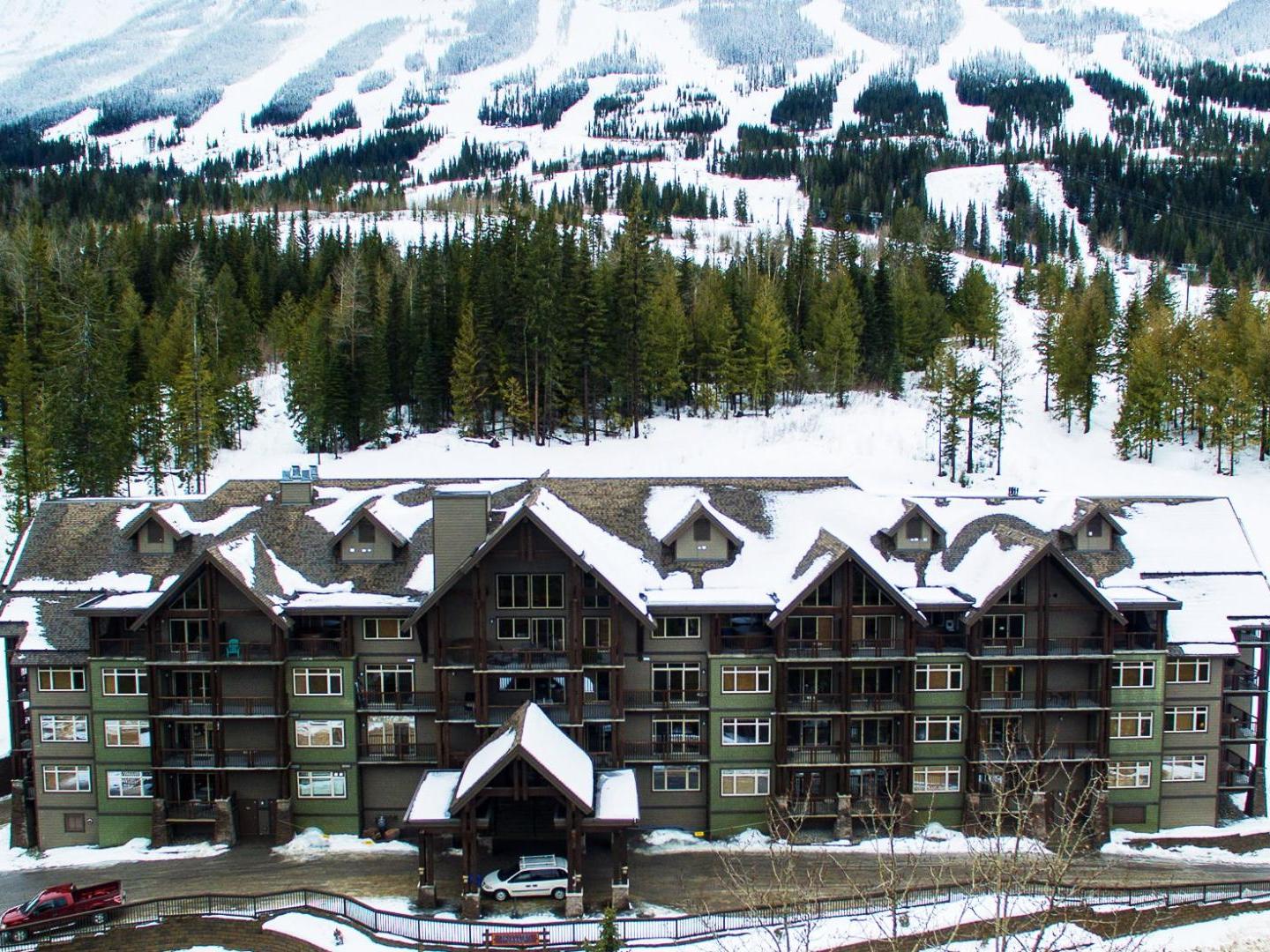 Step out of the door and click on your goal to ski down to the lifts at the base of the Kicking Horse ski slopes from your slopeside base at Palliser Lodge. With hotel rooms, one and two bedroom fully equipped suites this prime spot on the mountain offers a comprehensive mountain vacation experience for couples, groups of friends and families. Enjoy the on-site amenities that include a hot tub tucked into the mountainside, fitness room, and equipment storage.