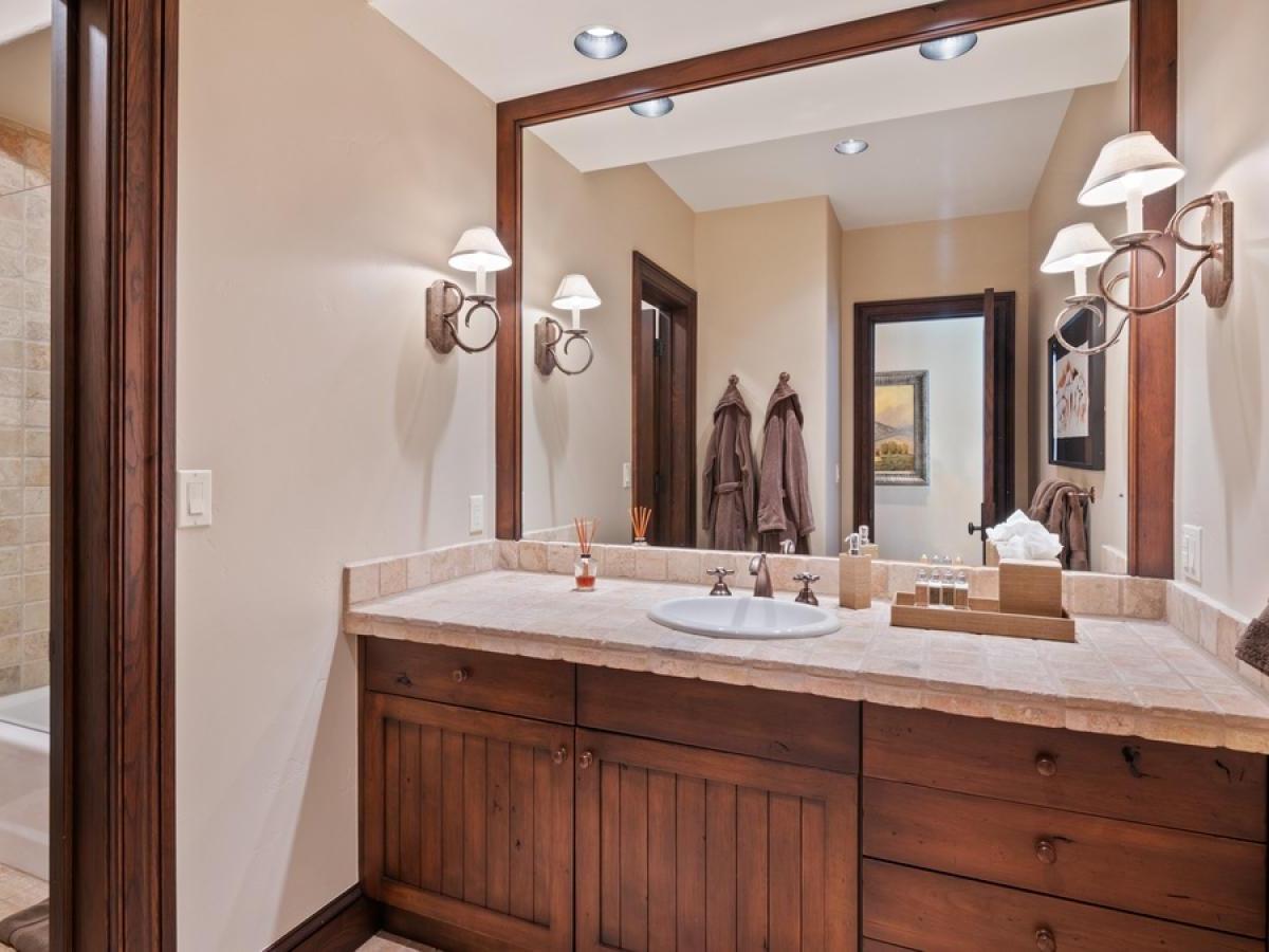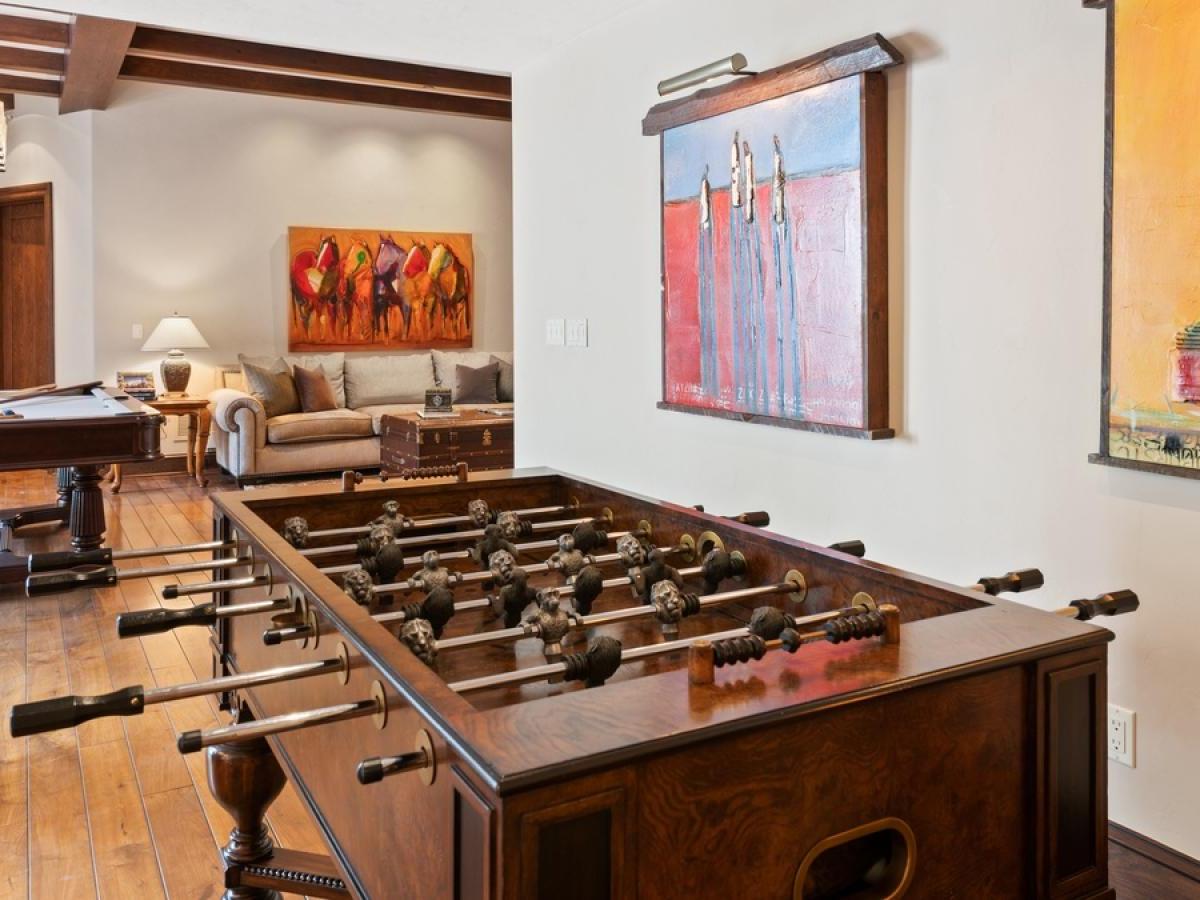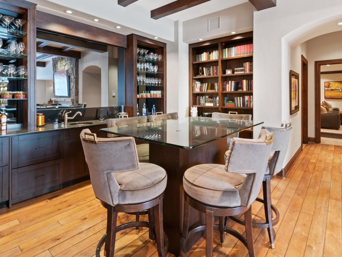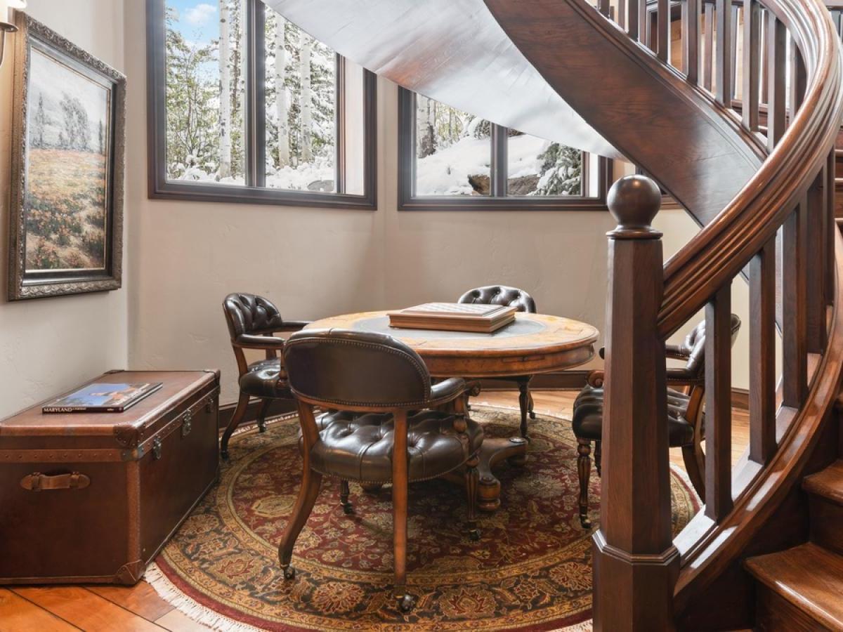 Outside, you will find getting to and from the ski slopes ultimately convenient via the private ski trail accessing the Elkhorn Chairlift below. Upon returning you will appreciate the outdoor areas that are ideally outfitted for enjoyment. Soothe the aching muscles in the oversized pool/hot tub, roast marshmallows around the fire pit, swing in front of the outdoor fireplace, and grill out in the comprehensive outdoor kitchen set under a covered area with heaters.