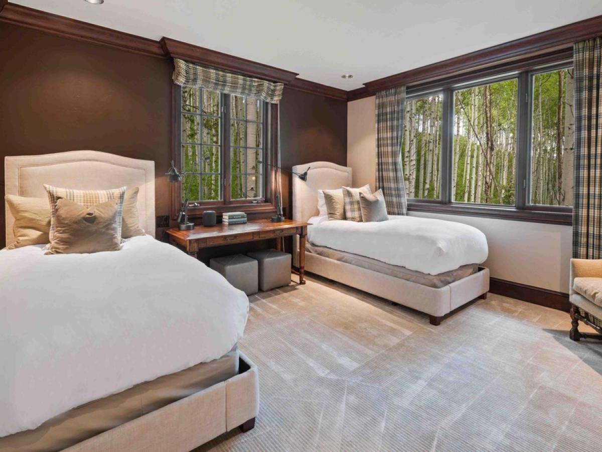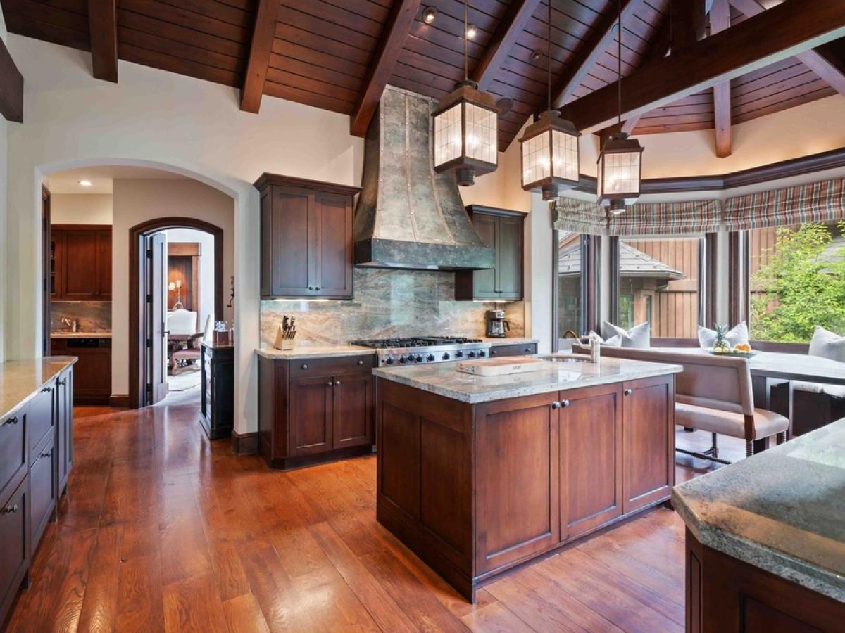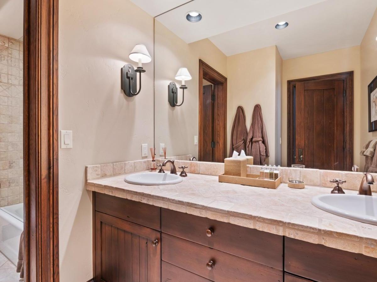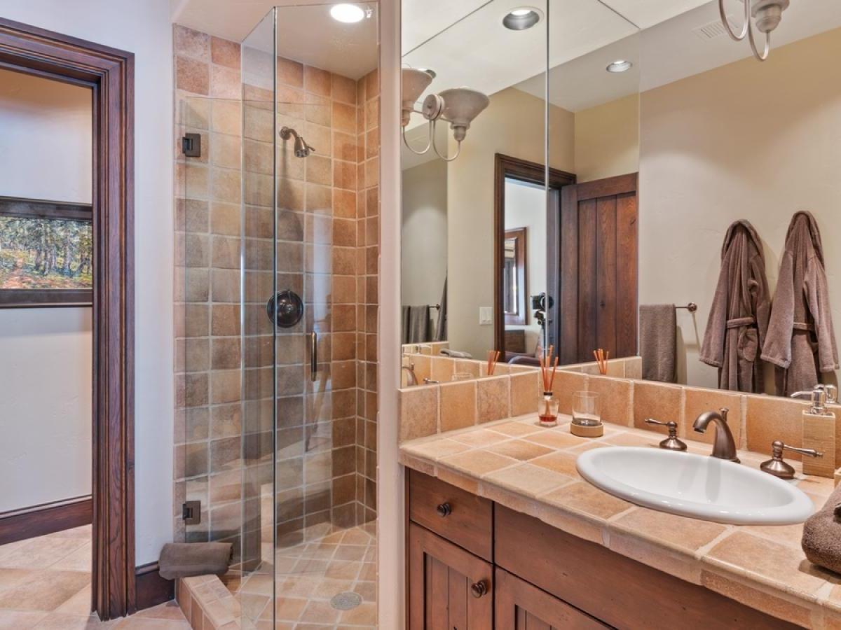 Outside, you will find getting to and from the ski slopes ultimately convenient via the private ski trail accessing the Elkhorn Chairlift below. Upon returning you will appreciate the outdoor areas that are ideally outfitted for enjoyment. Soothe the aching muscles in the oversized pool/hot tub, roast marshmallows around the fire pit, swing in front of the outdoor fireplace, and grill out in the comprehensive outdoor kitchen set under a covered area with heaters.