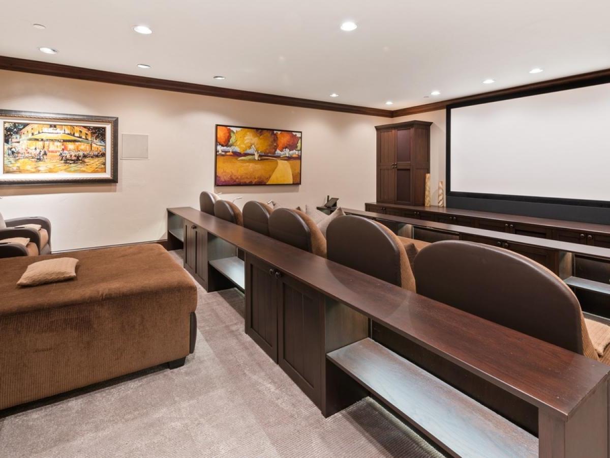 Step down to the lower level family room where you will spend hours of fun enjoying the comprehensive offering of vacation amenities. Anchoring this space is a cozy sitting area with a gas fireplace set between the full wet bar and game area featuring a pool table, foosball table and card table. Relax in the plushly appointed theater room for movie night or to watch the big game, hire a private masseuse to take advantage of the fully equipped massage room, and get a little extra exercise in the fitness room.