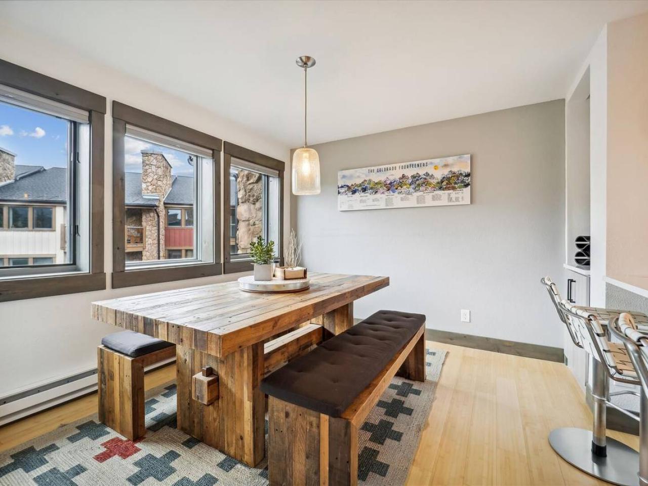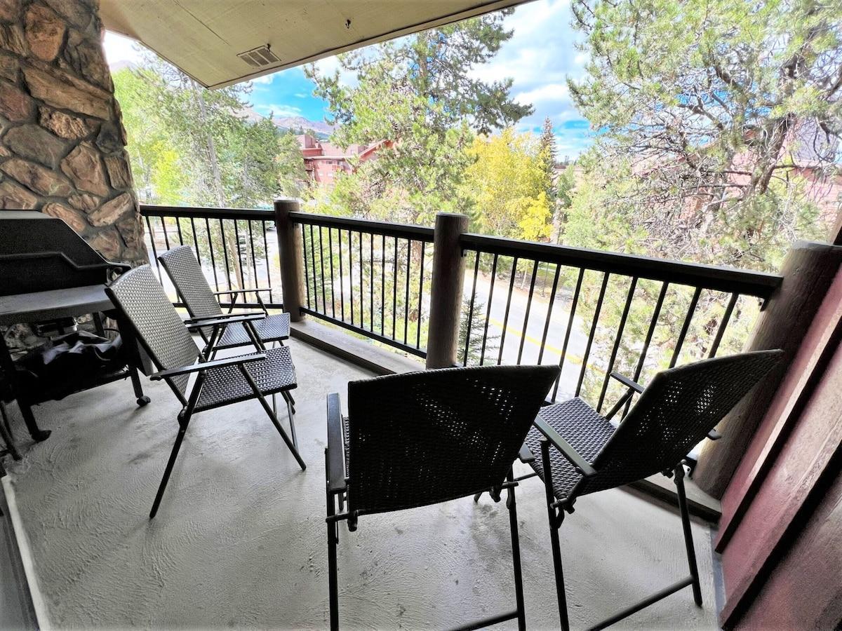 Comfortably appointed and well maintained, vacation rentals in this classic Breckenridge property offer a more spacious floorplan than most of the newer properties in town. Each condo has a fully equipped kitchen, living room with gas fireplace, private deck and access to the hot tub. Guests also enjoy access to the Upper Village clubhouse with a year-round swimming pool and hot tubs.