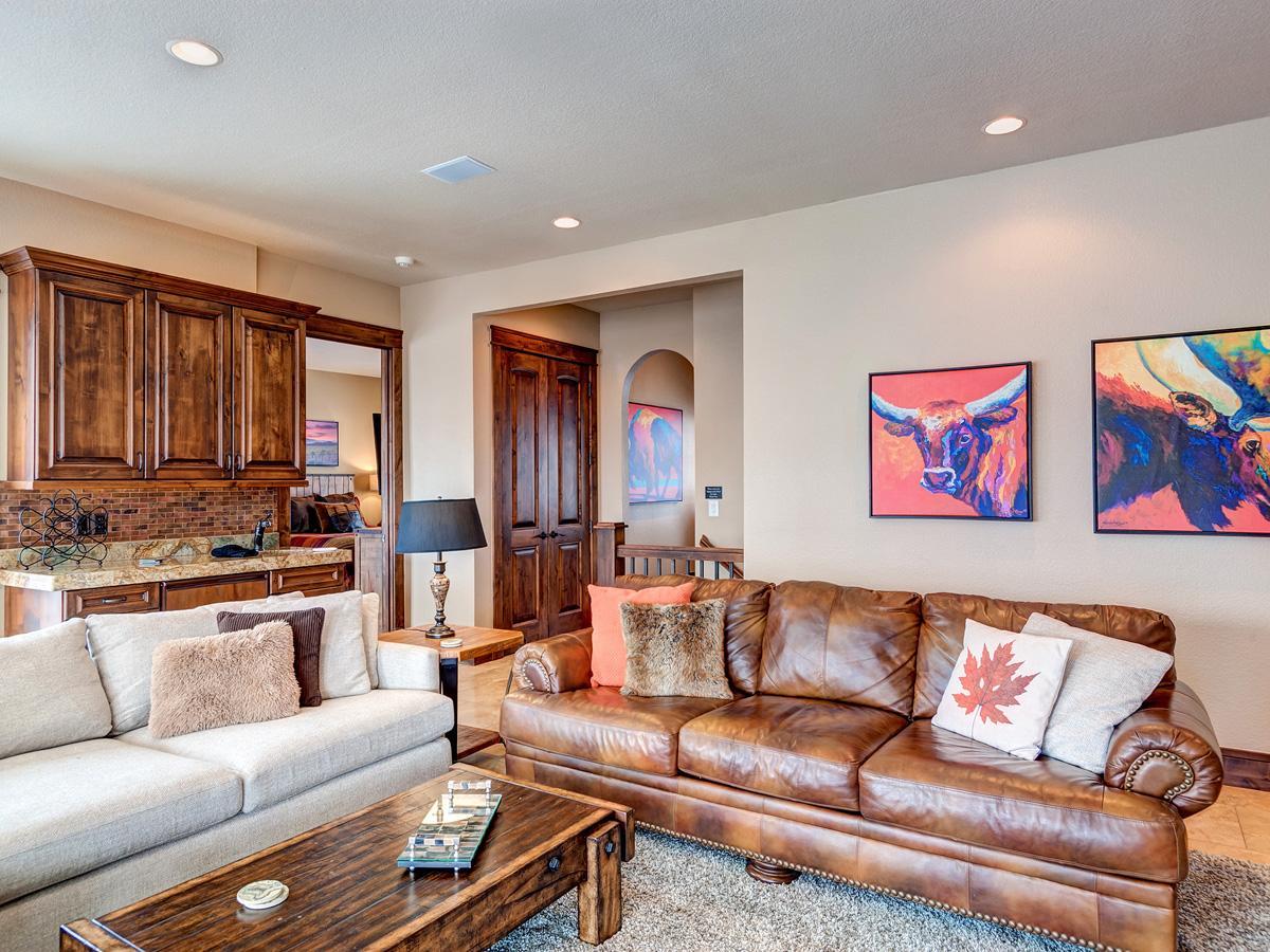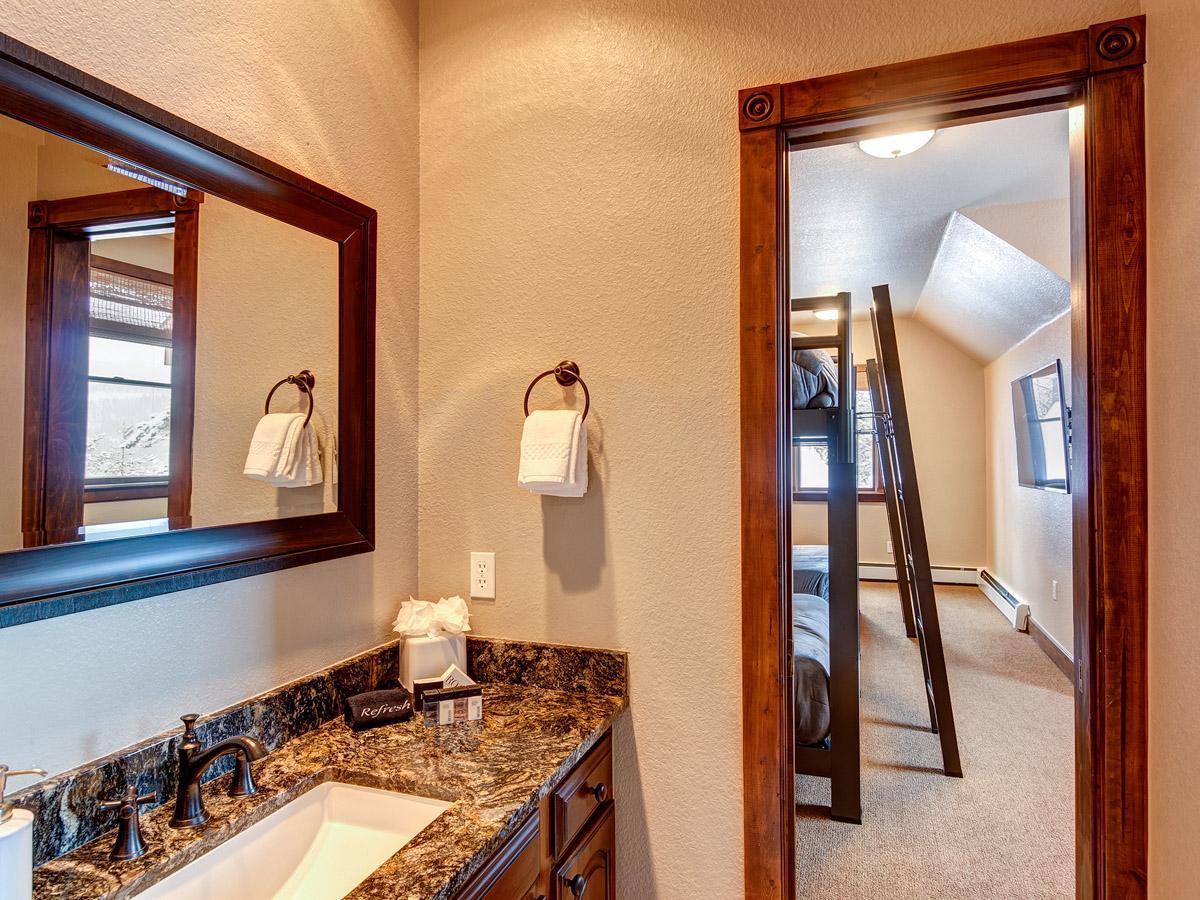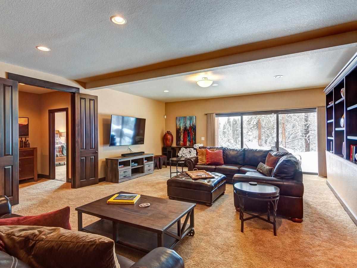 Your crew will adore the lower level living spaces which are perfect for entertaining. A spacious recreation room features a plush sectional sofa with a large flat screen television, while a nearby pool table sits next to a cute high-top pub table. Guests hanging out in these spaces will love to have use of a second kitchen that is ideal for grabbing breakfast before the slopes or a yummy nighttime snack. Another popular spot to congregate is the private hot tub, which overlooks the town of Breckenridge and offers the perfect place to relax and unwind. Peak 8 Estate also includes a fully equipped laundry room along with a gear area outfitted with benches, cubbies and cabinets.