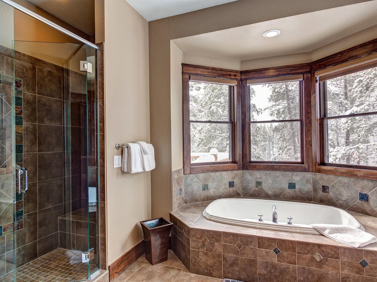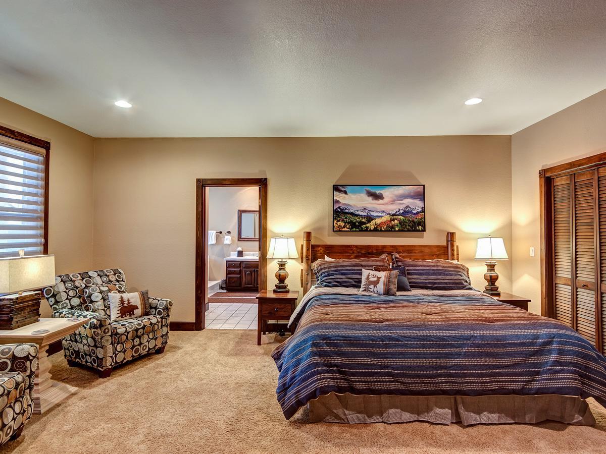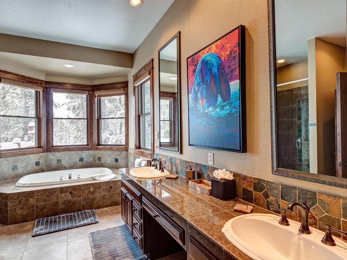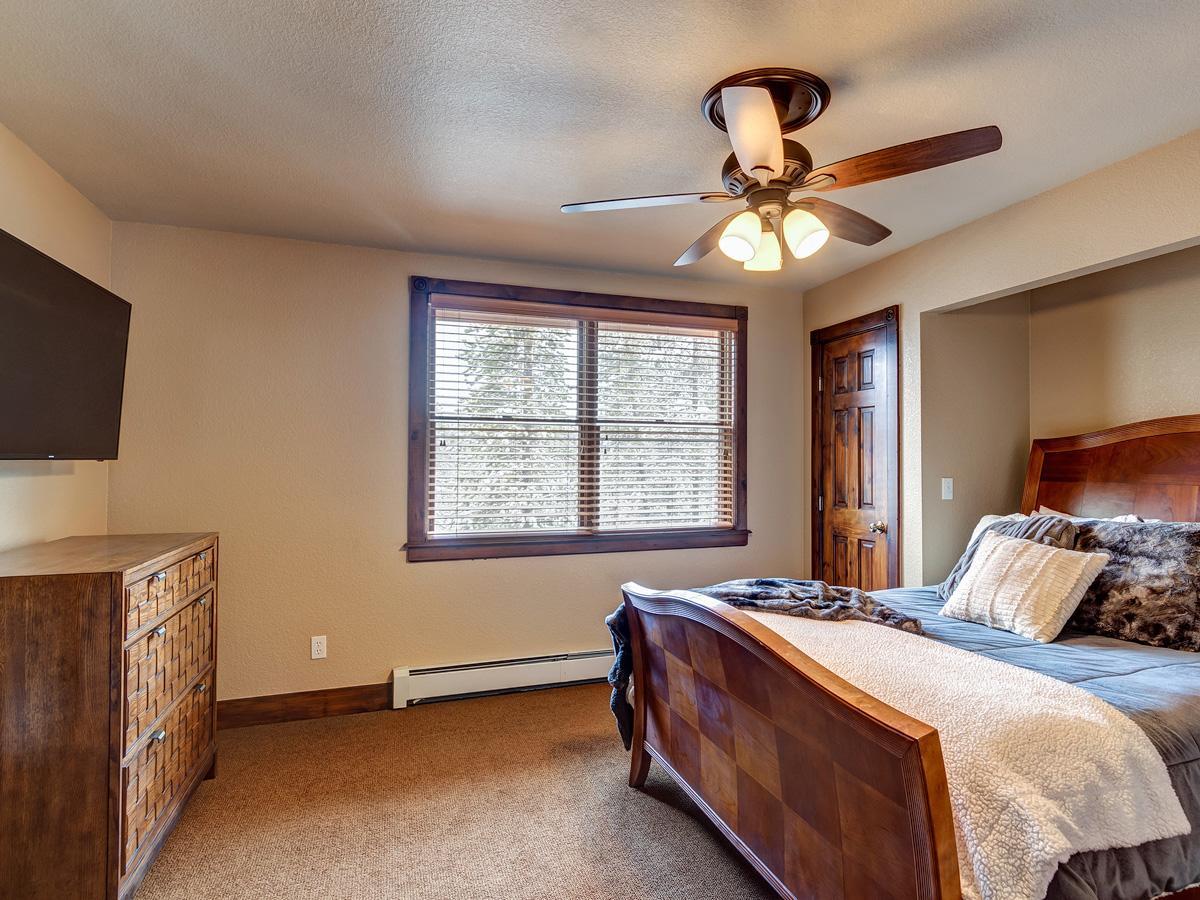Your crew will adore the lower level living spaces which are perfect for entertaining. A spacious recreation room features a plush sectional sofa with a large flat screen television, while a nearby pool table sits next to a cute high-top pub table. Guests hanging out in these spaces will love to have use of a second kitchen that is ideal for grabbing breakfast before the slopes or a yummy nighttime snack. Another popular spot to congregate is the private hot tub, which overlooks the town of Breckenridge and offers the perfect place to relax and unwind. Peak 8 Estate also includes a fully equipped laundry room along with a gear area outfitted with benches, cubbies and cabinets.
