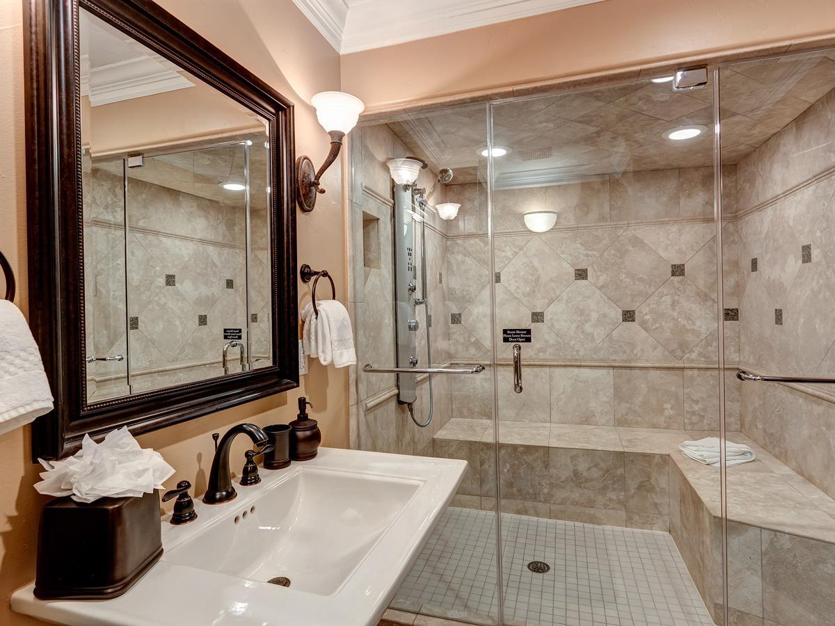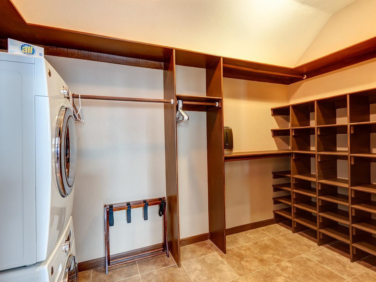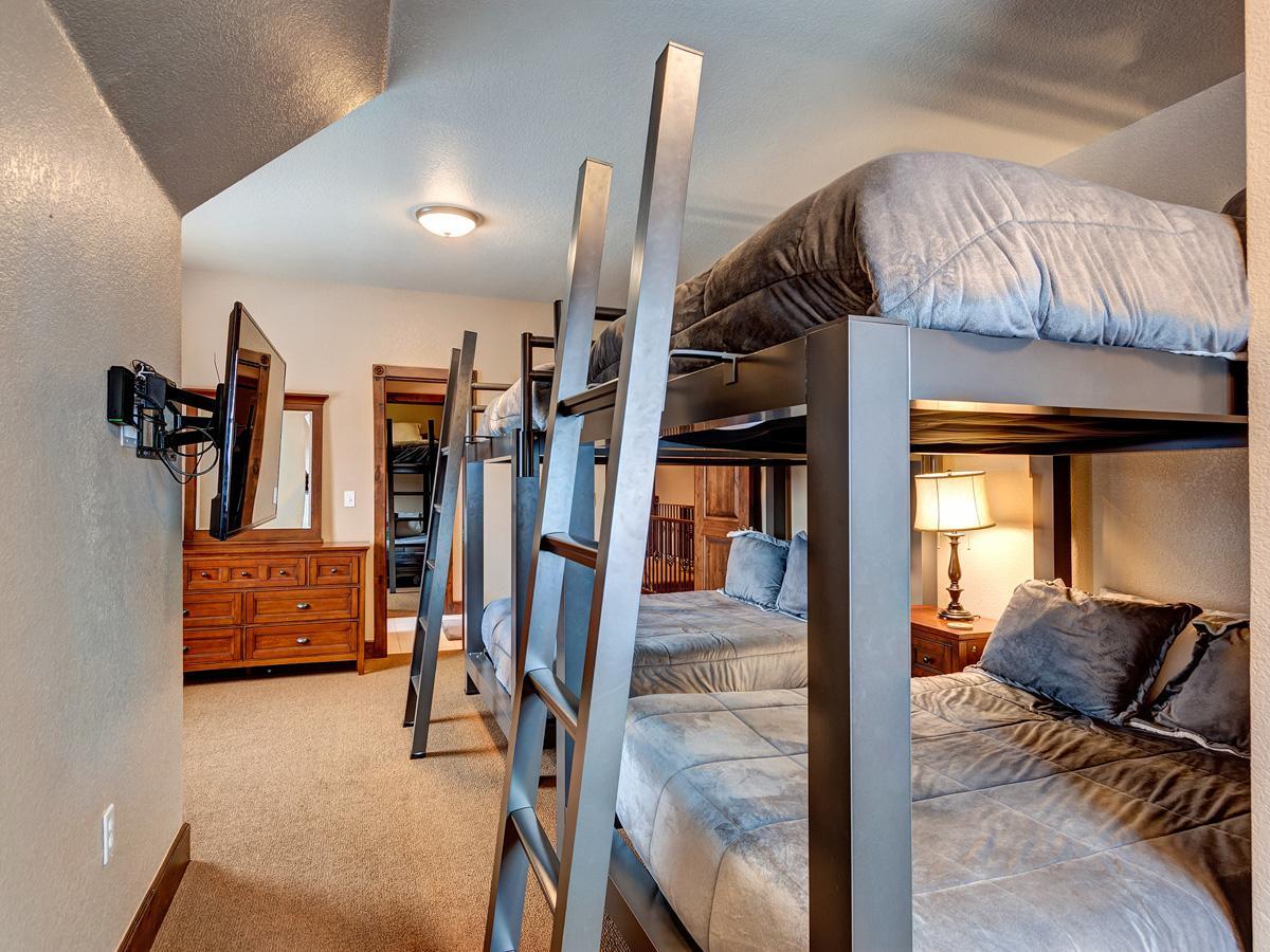 Six well-appointed bedrooms are spread across all three levels of this spectacular rental home. Situated on the main floor, the primary bedroom is appointed with a King bed, flat screen television and a walk-in closet with a stackable washer and dryer. Pamper yourself in the luxurious private bathroom which offers a jetted tub and walk-in shower. Two bunk rooms share a bathroom on the upper level, one is equipped with a Queen over Queen bunk while the other offers two sets of Queen over Queen bunk beds. Another upper level bedroom is furnished with a Queen bed and includes a private bathroom. Two lower bedrooms are outfitted with King beds, one offers a private bathroom while the other includes a bonus Queen sleeper sofa and shares a full bathroom with the family room and features a large steam shower. For additional lodging, there is a sleeper sofa in the family room.
