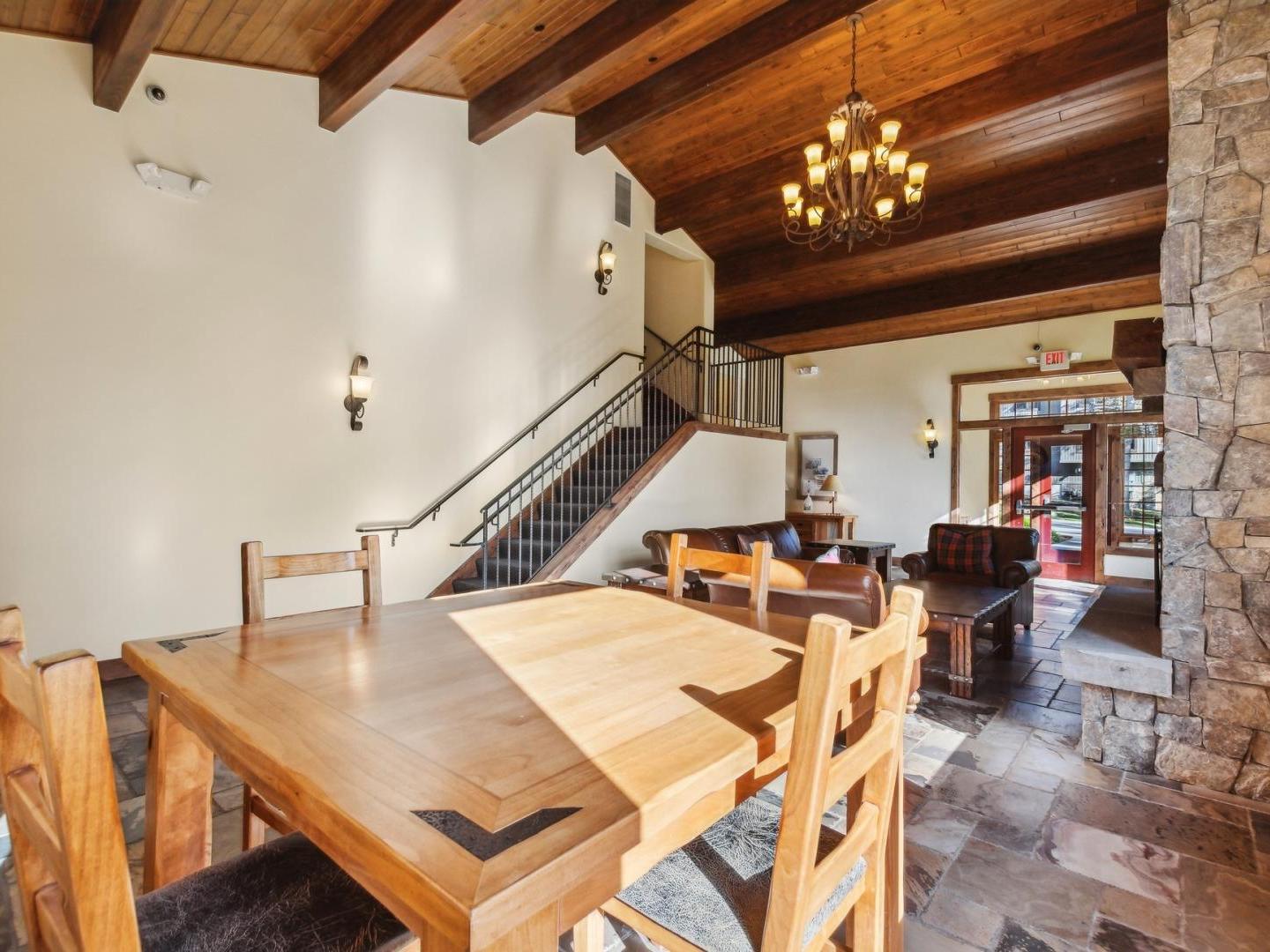 Bedrooms are set off of the living area with a variety of bedding options, most have a large bed in at least one of the bedrooms with a private bathroom in the primary suite. Other amenities in the building include a covered heated parking garage, private ski locker, and a roof-top deck with a common area for grilling and entertaining with friends. Guest enjoy access to the Sherpa complex indoor swimming pool and hot tubs located across the street.
