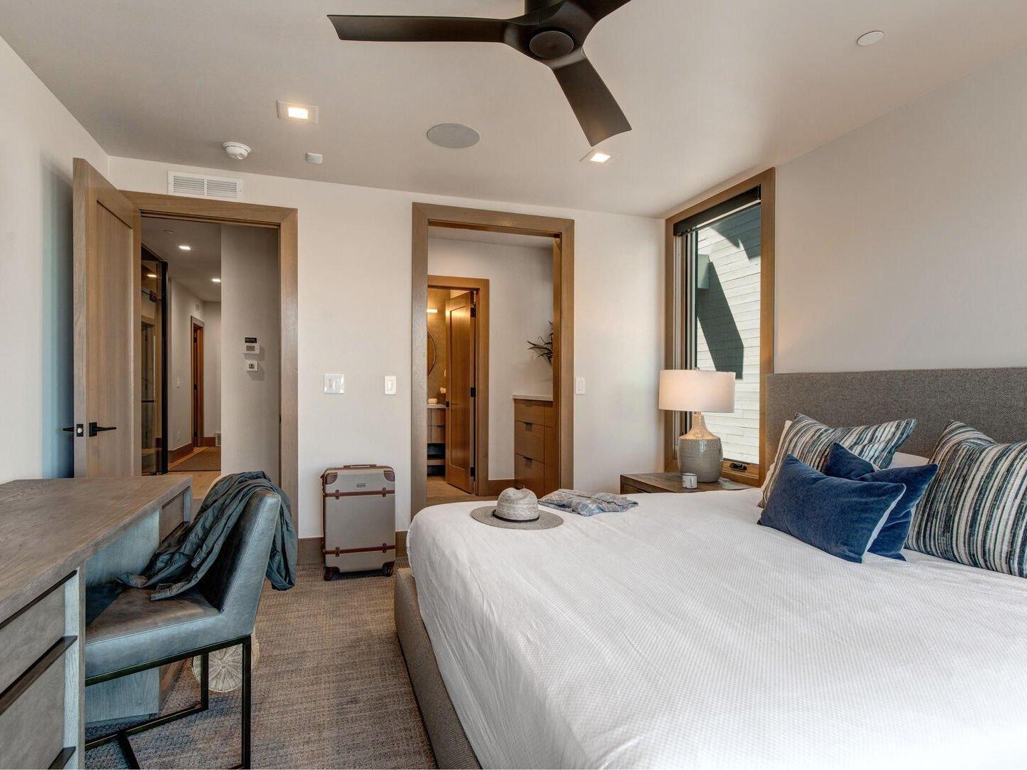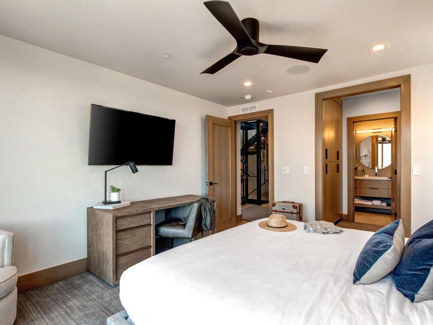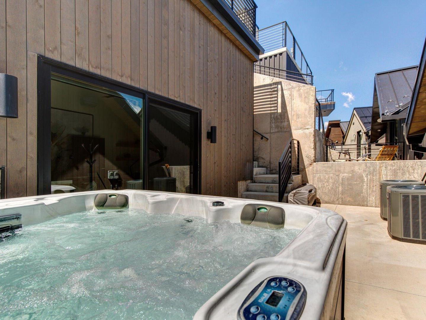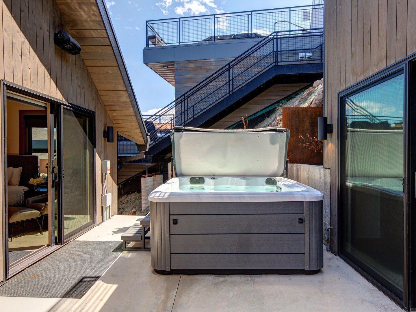 Head to the lowest level for movie night in the inviting theater room, where plush sofas are arranged in two levels before a large-screen television. After a day on the slopes, unwind in the rooftop hot tub, before heading out for a night on the town. Stay productive on vacation in the private rooftop office, fully equipped for those needing to fit in some work while enjoying the mountains.