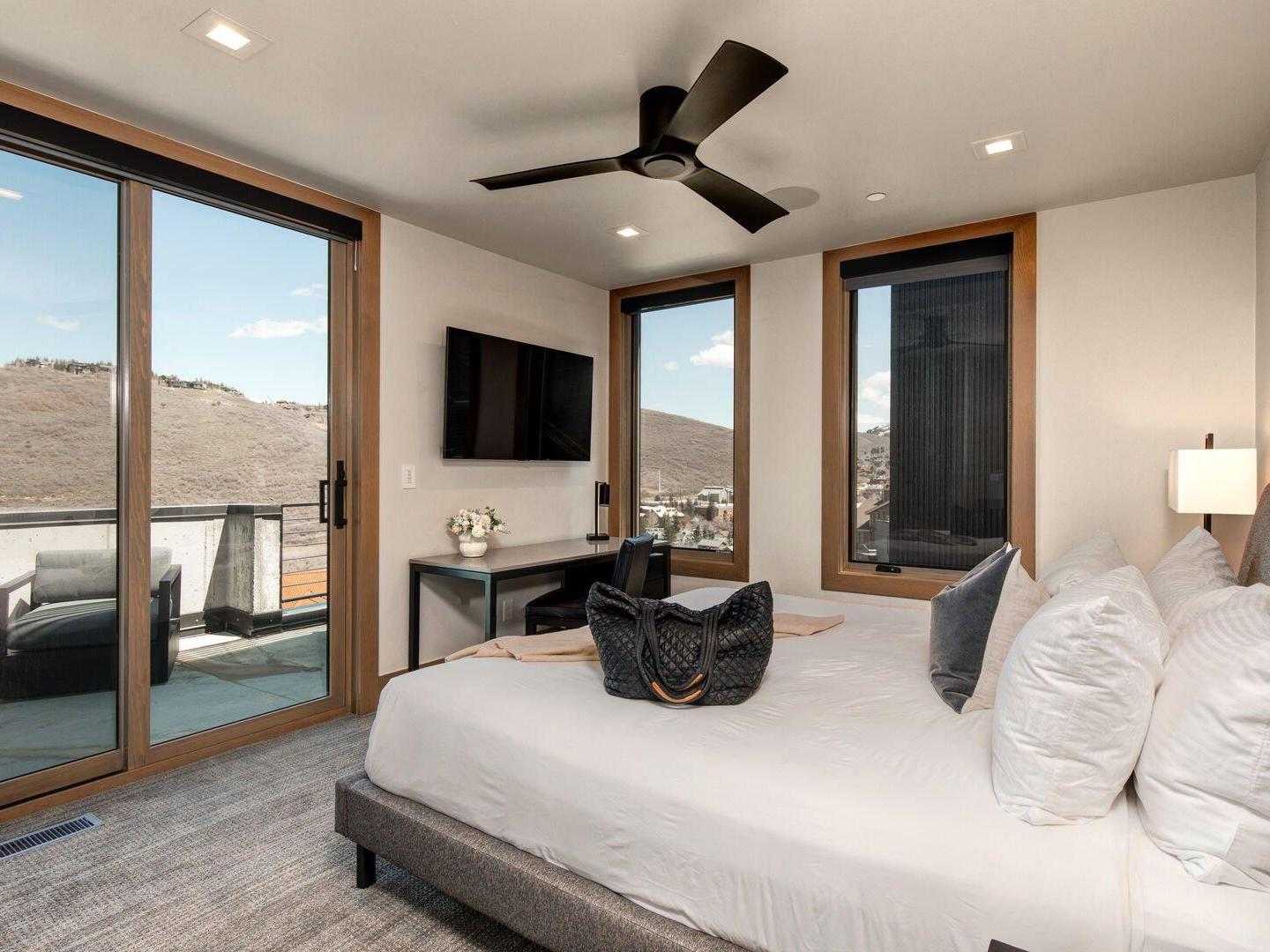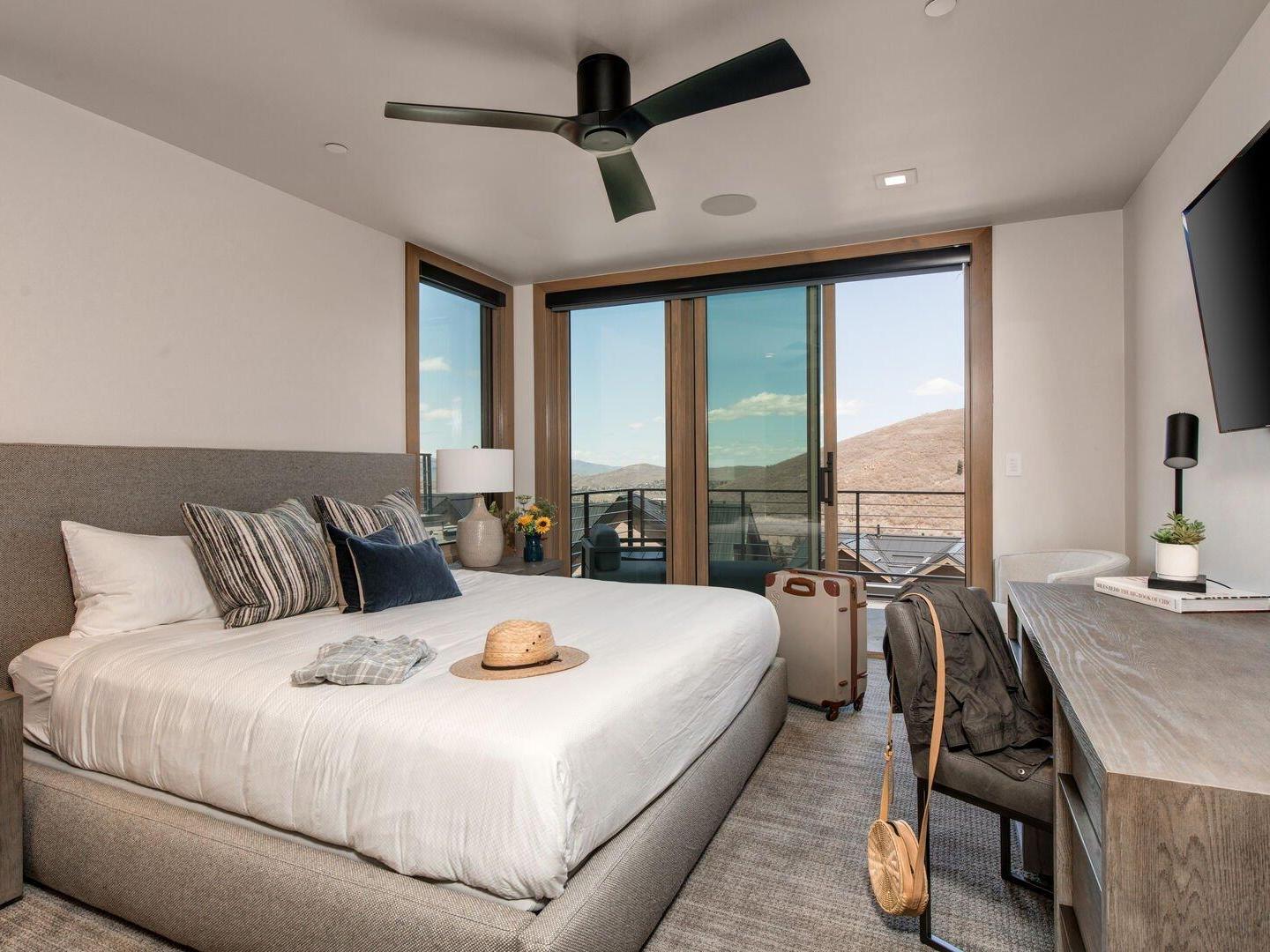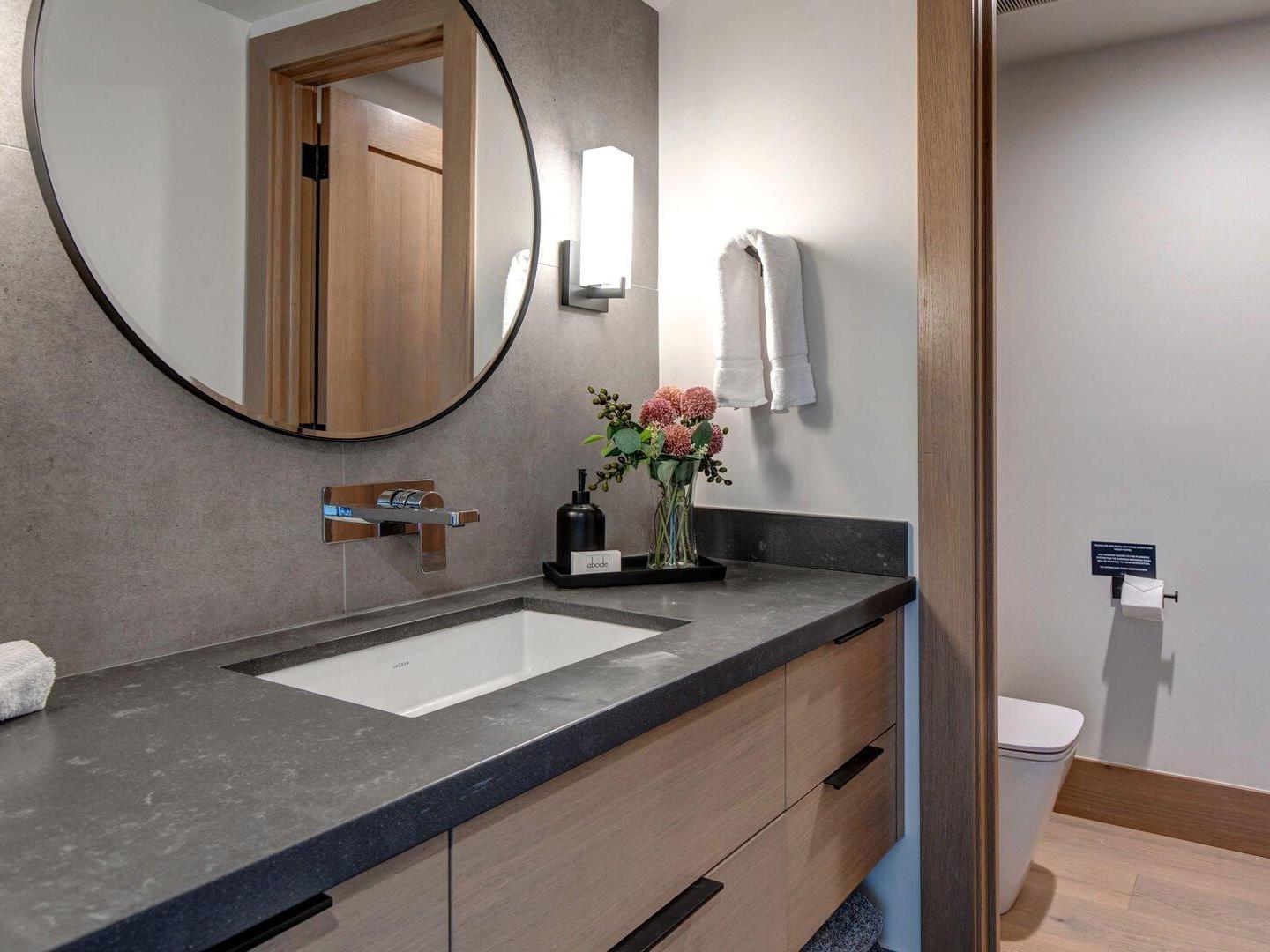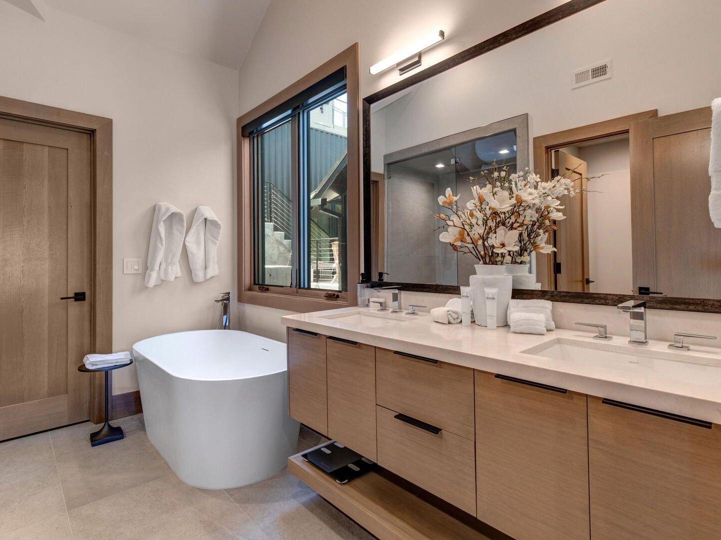 Head to the lowest level for movie night in the inviting theater room, where plush sofas are arranged in two levels before a large-screen television. After a day on the slopes, unwind in the rooftop hot tub, before heading out for a night on the town. Stay productive on vacation in the private rooftop office, fully equipped for those needing to fit in some work while enjoying the mountains.