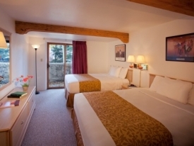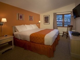 Deluxe Hotel Room- Roughly 250 square feet, choose from one king or two twin beds. One additional person is allowed with the use of a rollaway bed. Includes a mini-kitchen comprised of a mini-fridge, microwave, coffee maker and toaster. Room also offers a telephone, satellite television and wireless internet. Some boast a balcony with alpine views of Wheeler Peak and the slopes. Sleeps 1-3