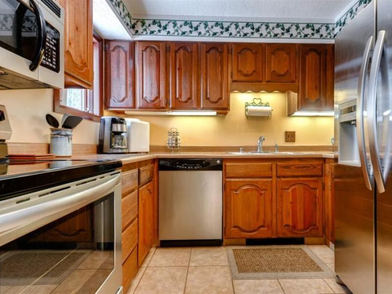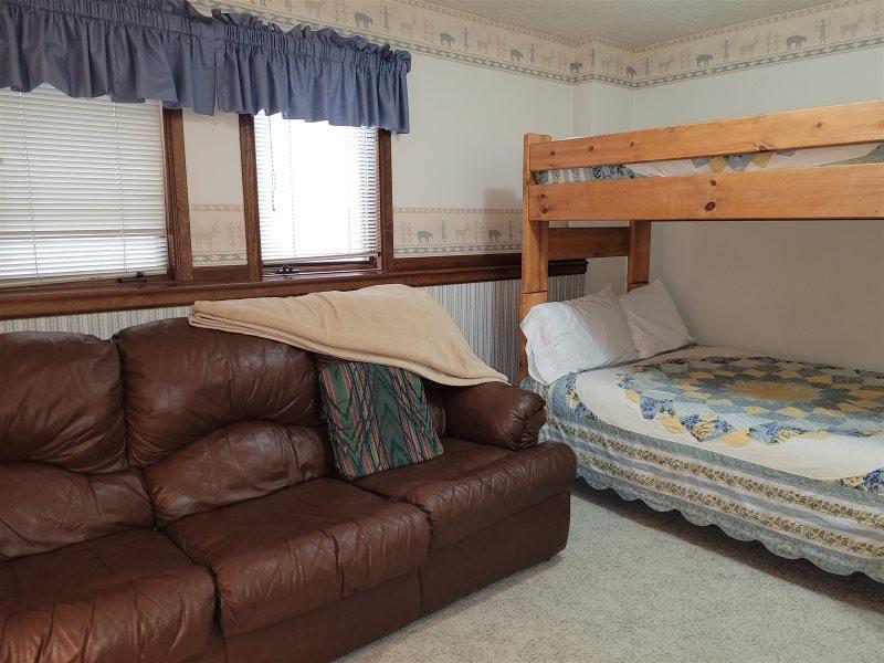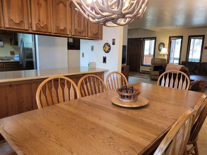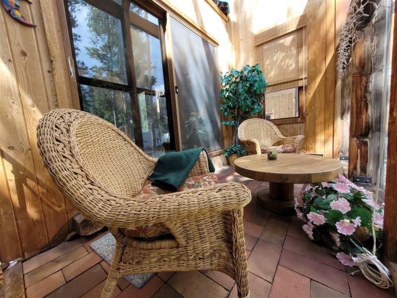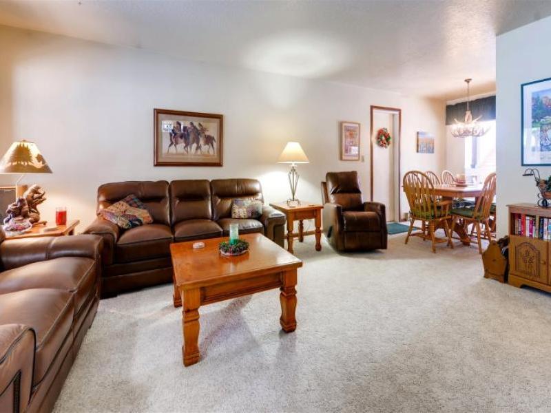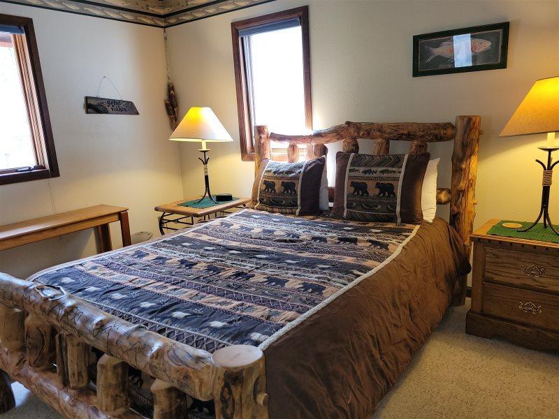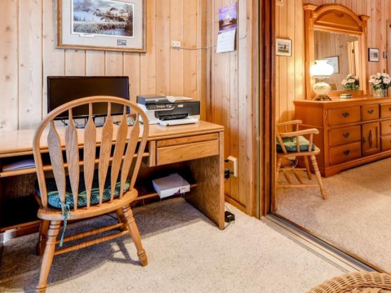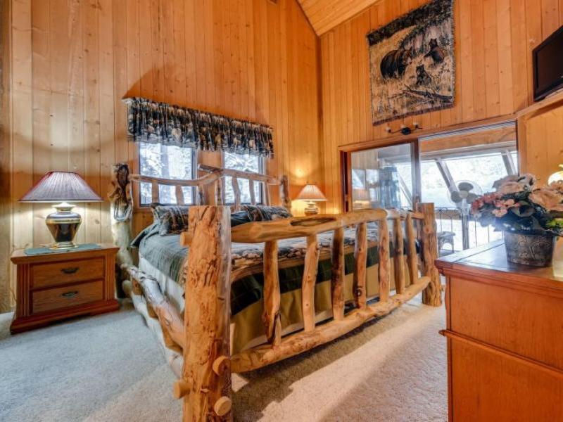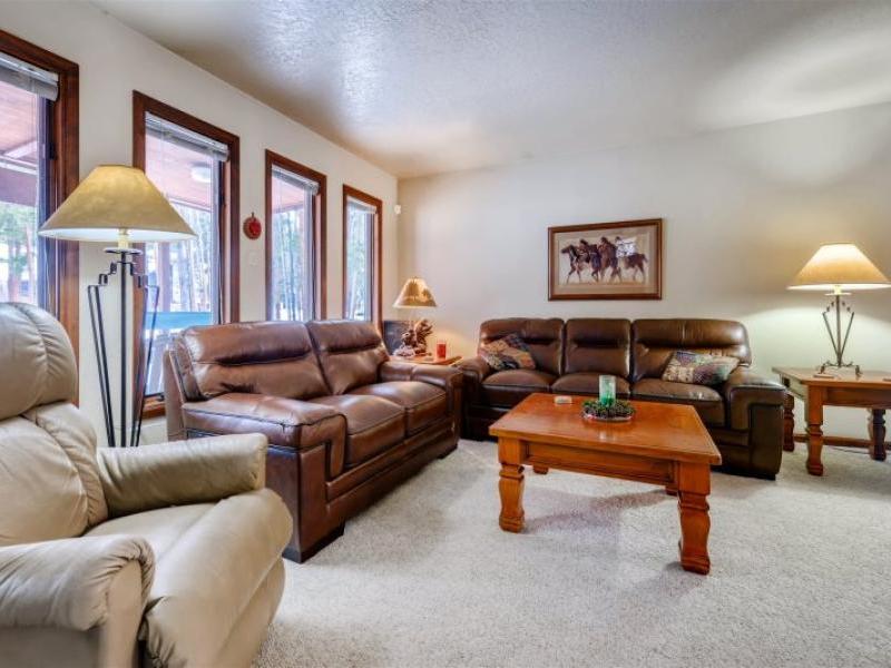 Each bedroom is decorated with comfortable, alpine furnishings to provide a good night’s sleep throughout your stay. In the primary bedroom, you’ll find a King bed, flat screen television, a private sun porch with an office, and a bathroom with a relaxing jetted tub. Two guest bedrooms are furnished with Queen beds and the bunk room offers a Full over Full bunk bed. A sleeper sofa in the living room can accommodate two extra guests if needed.
