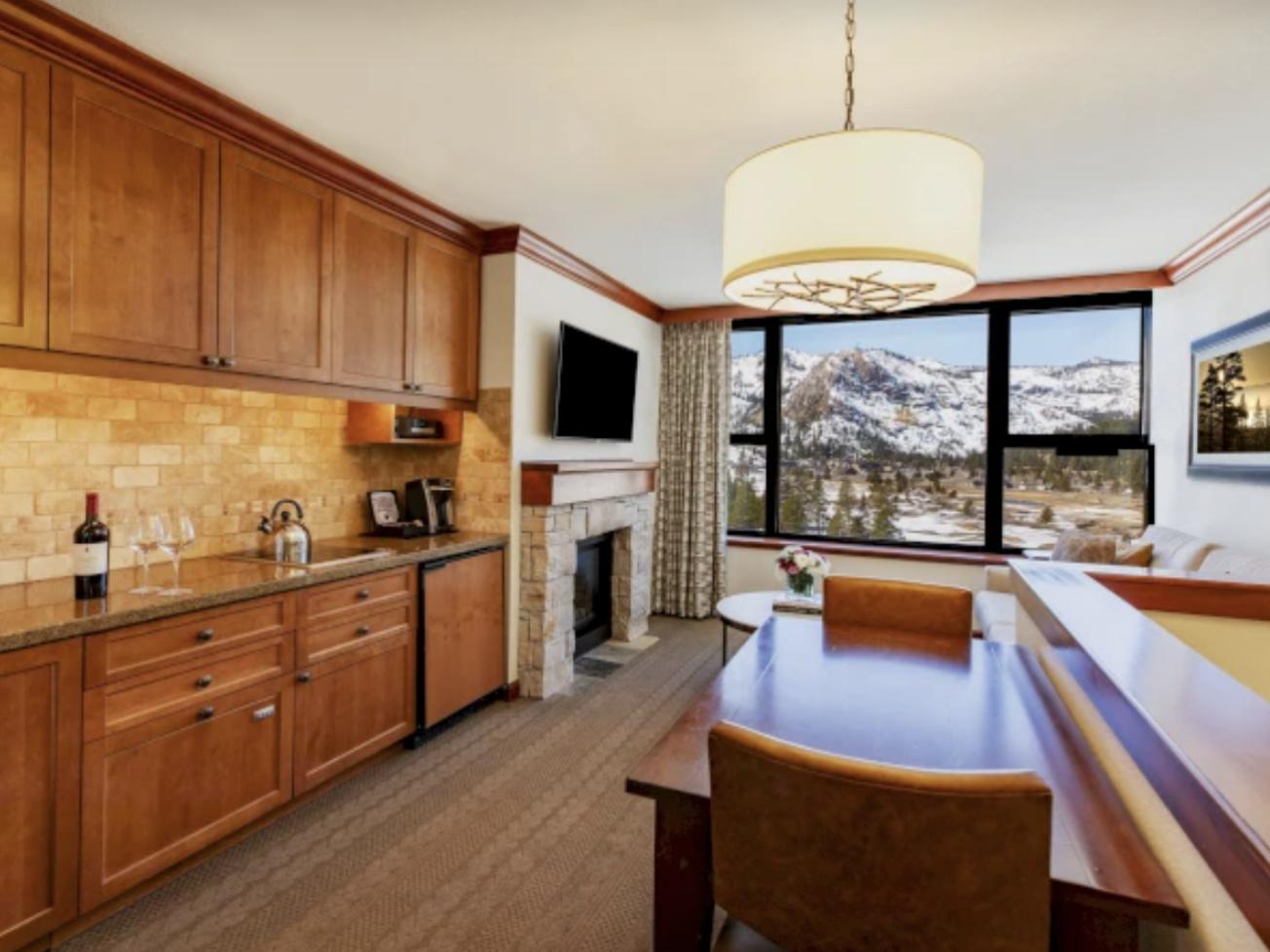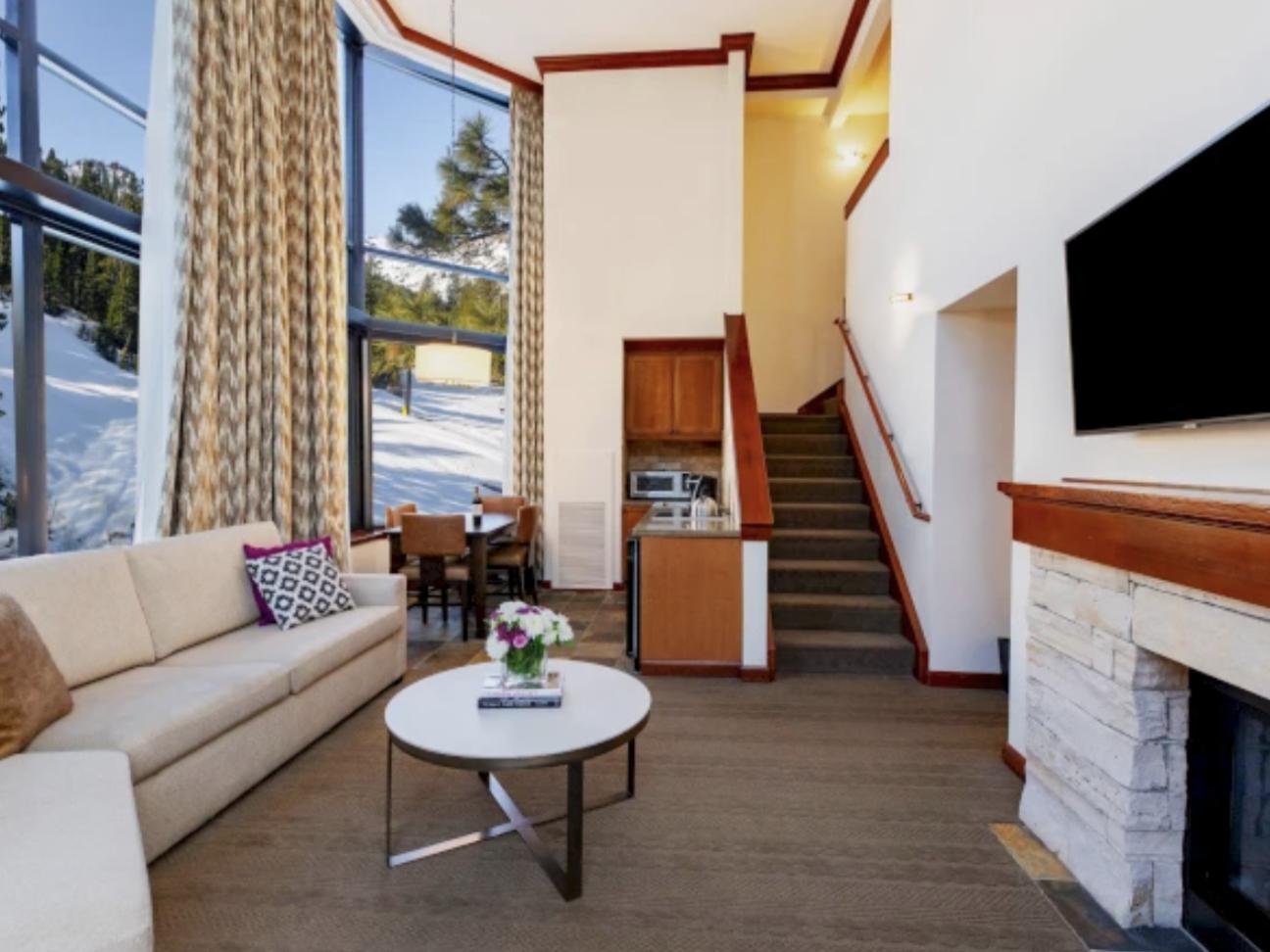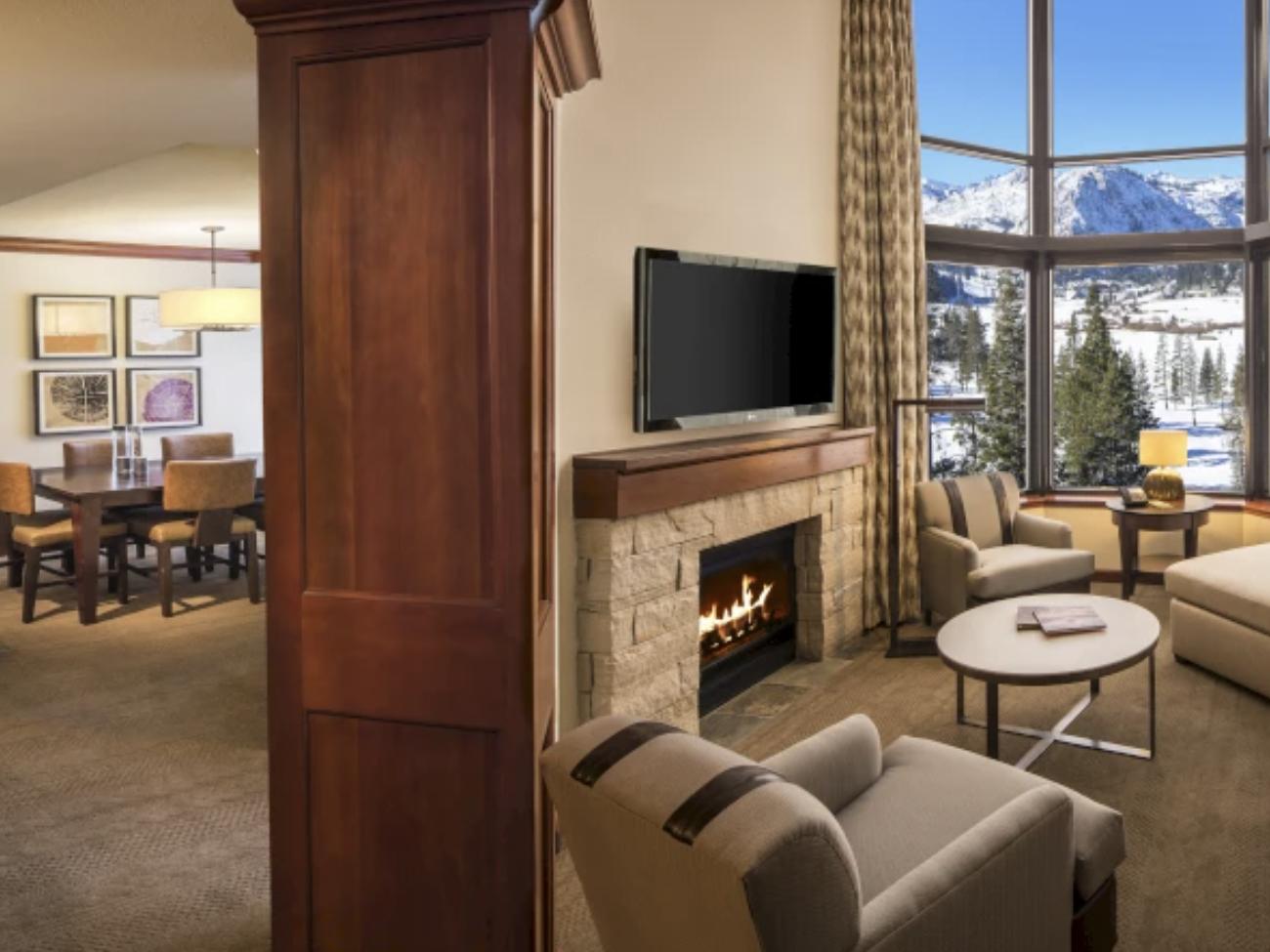 - Fireplace Suites: Feature residential-style furnishings and fixtures, along with expansive vistas of Squaw Valley and the surrounding Sierra Nevada peaks from large picture windows. Offering separate bedrooms and living rooms, these spacious lodging suites offer an abundance of room to relax.These luxury suites include:
