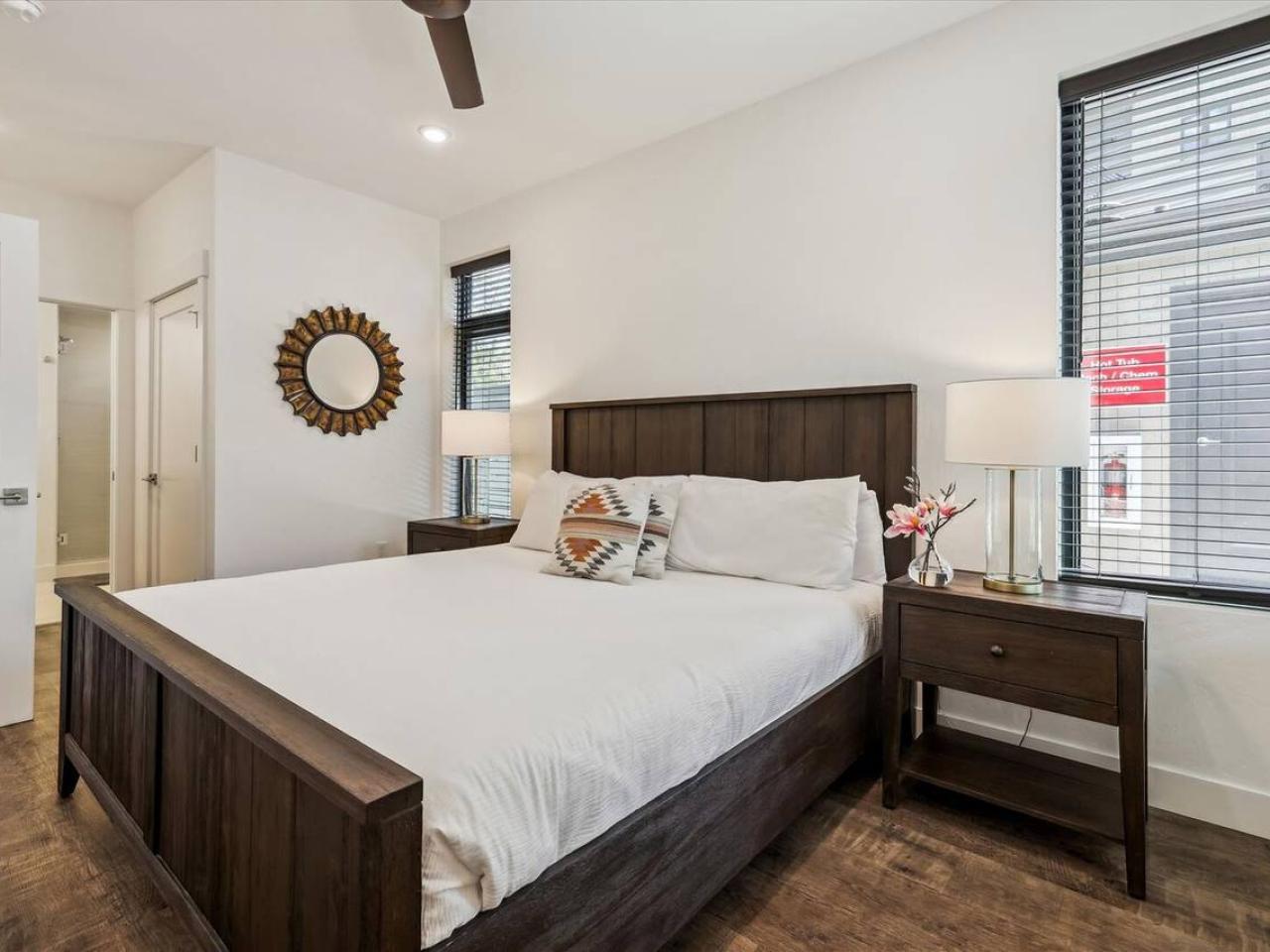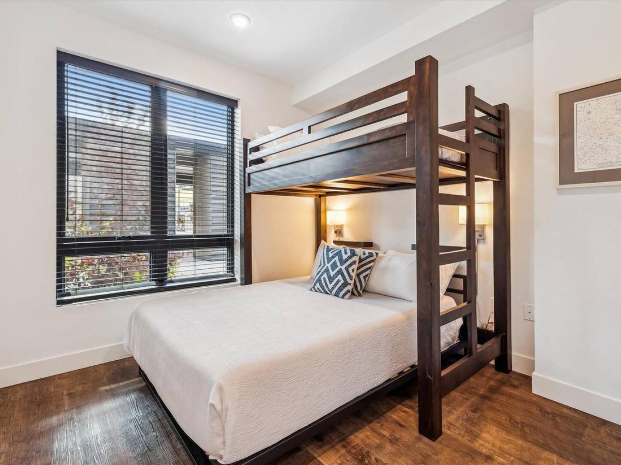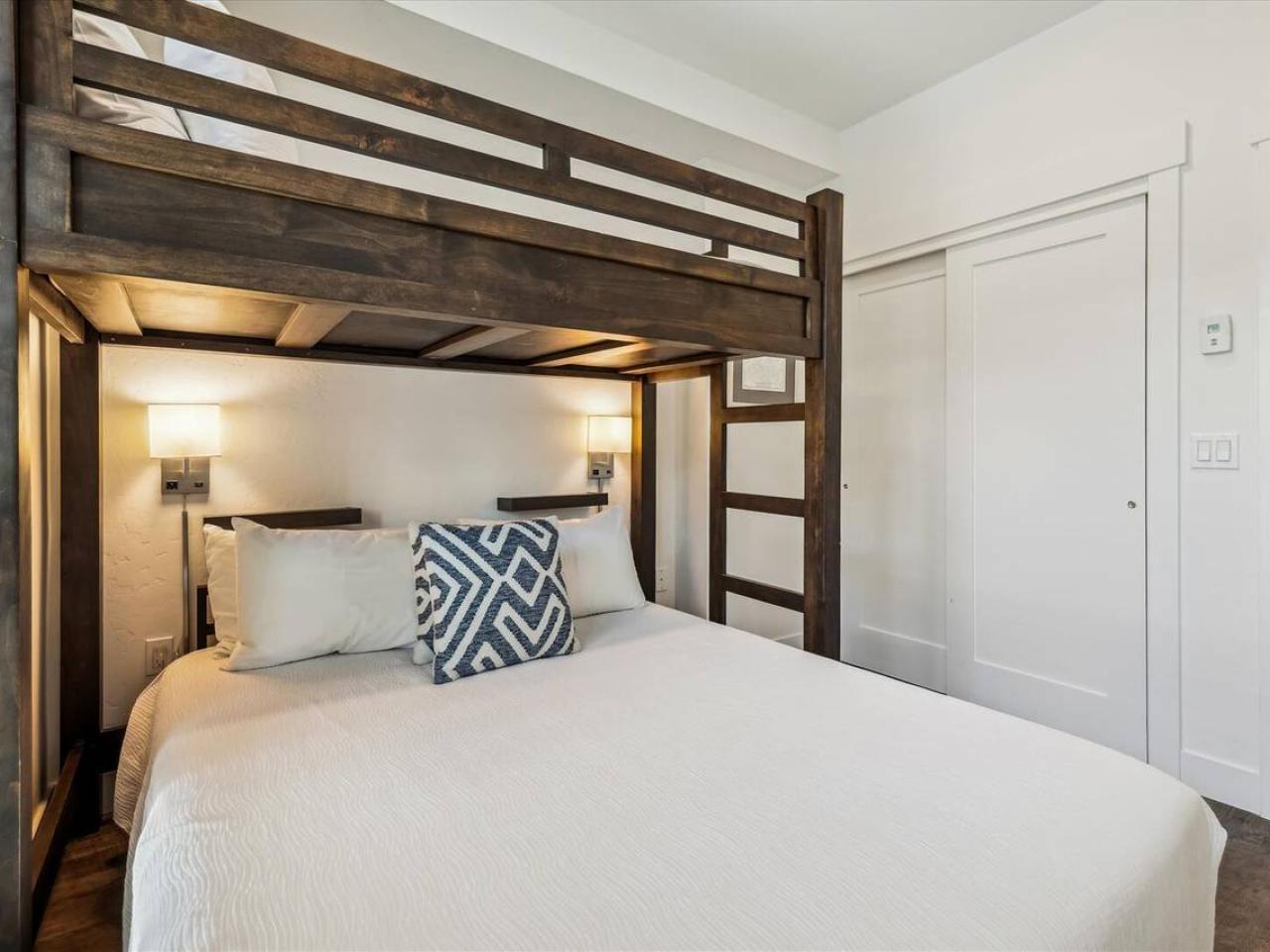 Offering a King bed, the primary suite includes dual sinks and a walk-in shower. Ideally outfitted for the kids, the guest bedroom is furnished with a Twin over Queen Bunk bed and access a full bathroom shared with the living area. Providing additional sleeping accommodations is a Queen sleeper sofa in the living room.