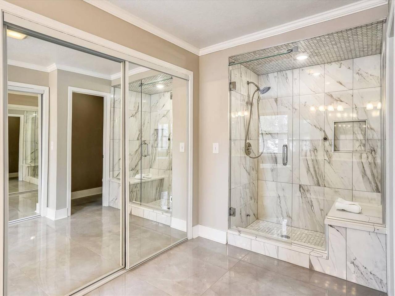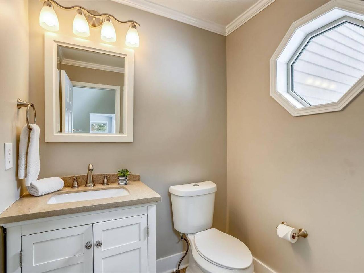 Located on the other side of the kitchen is a formal dining room with seating for 6 guests and a family room offering multiple sofas and chairs. Completing the main level is a half bathroom and access to the garage while the laundry facilities are located on the upper level.