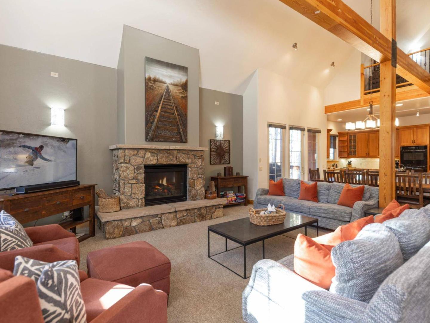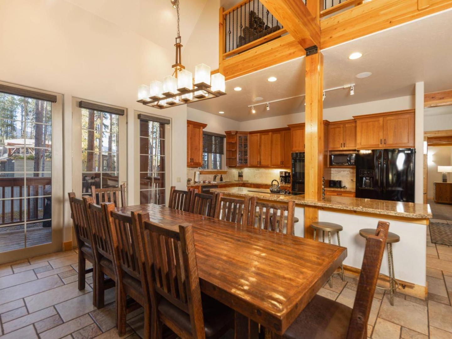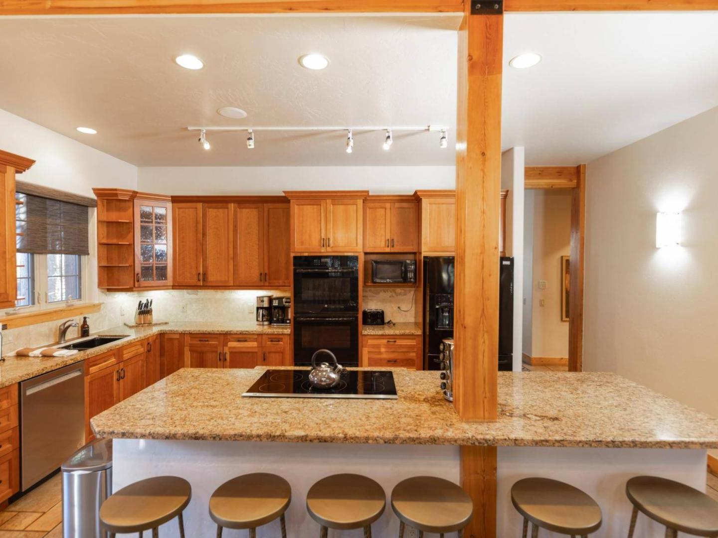 With vaulted ceilings, a stone fireplace as its centerpiece and quality furnishing the Great Room of Sawmill Run Lodge is designed for entertaining. Open to the living room, the dining area with its antler chandelier is equipped to seat up to ten guests. An adjacent gourmet kitchen features a large breakfast bar with additional seating for up to four and offers upscale appliances, granite countertops and custom cabinetry.