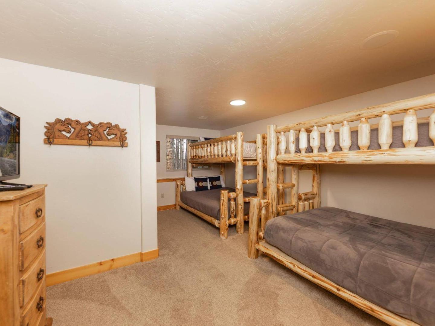 Sawmill Run Lodge offers 7 bedrooms with 6.5 bathrooms spread over multiple levels offering a variety of bedding options and quality furnishings. Three Master Suites are equipped with King beds and feature with private bathrooms as well as private decks. An upper bunk room is furnished with a Captains Bunk that offers a Twin over Queen plus a Twin daybed with a Twin trundle and shares a bathroom with another bunk room equipped with a Twin over Twin bunk plus a Twin daybed with a Twin trundle bed. The lower bunk room features two sets of Twin over Queen bunk beds and shares a bathroom with a King bedroom. Additional bedding is supplied by a Queen sleeper sofa in the loft.