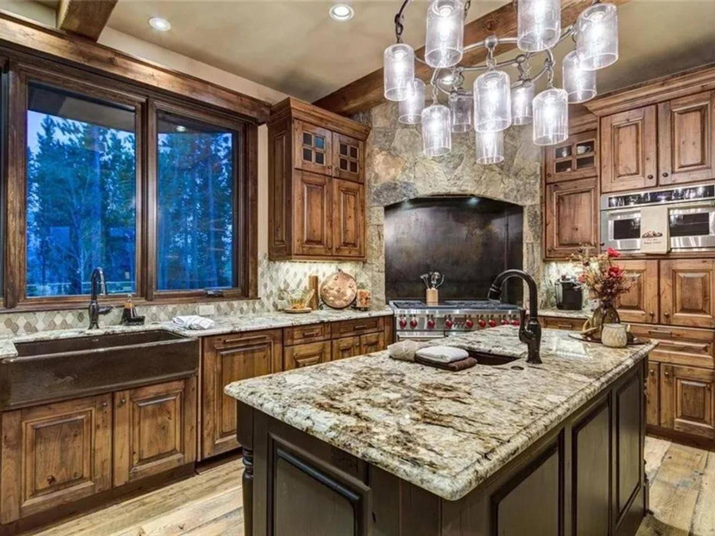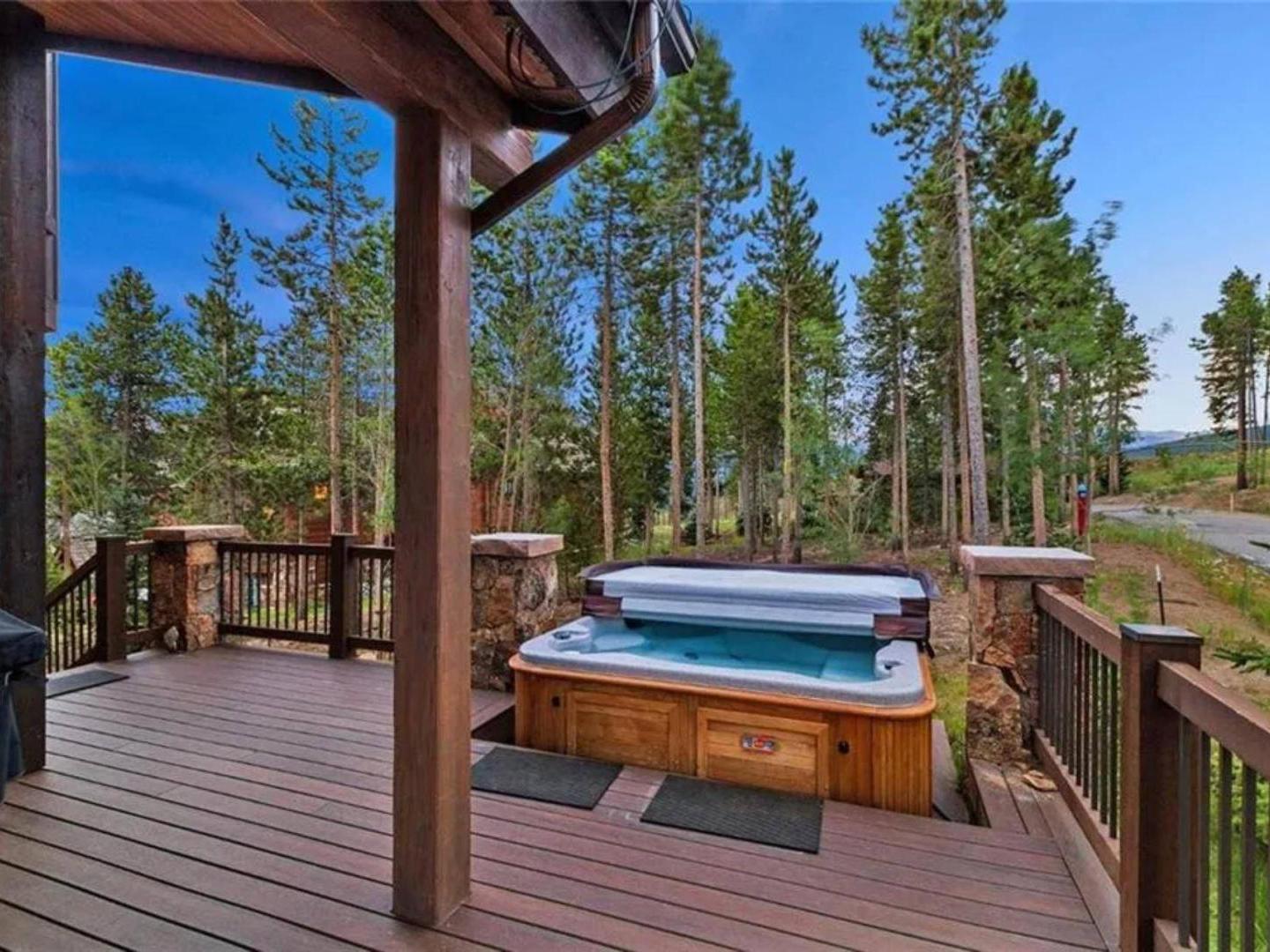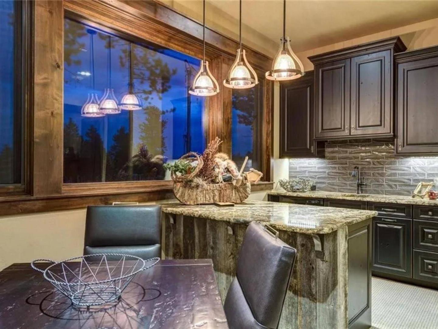 Just off the living area, the large dining table seats 8 guests and flows seamlessly into the chef-inspired kitchen, complete with professional-grade appliances, granite countertops, and a breakfast bar for 5. A double-sided fireplace adds warmth and ambiance to both the kitchen and dining areas, making this the heart of the home for shared meals and conversation. Step outside and take in the serene alpine landscape. Relax around the outdoor fire pit, soak in the private hot tub, or fire up the barbecue grill on the expansive deck outfitted with comfortable outdoor furnishings and breathtaking mountain views.