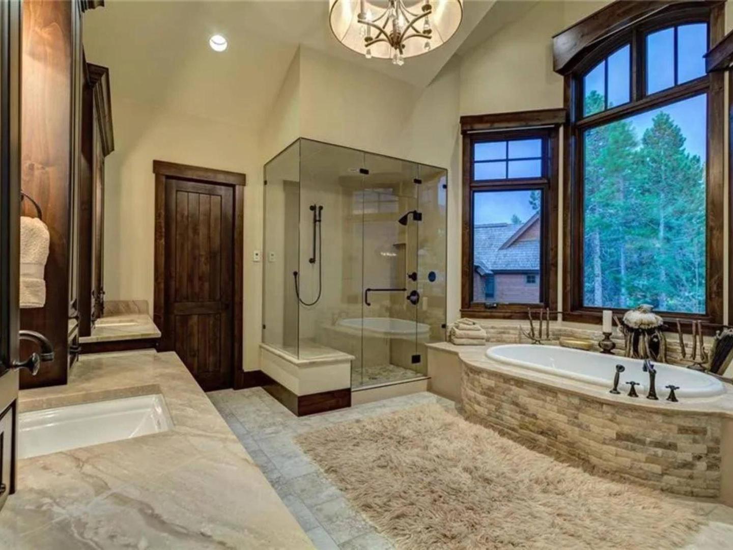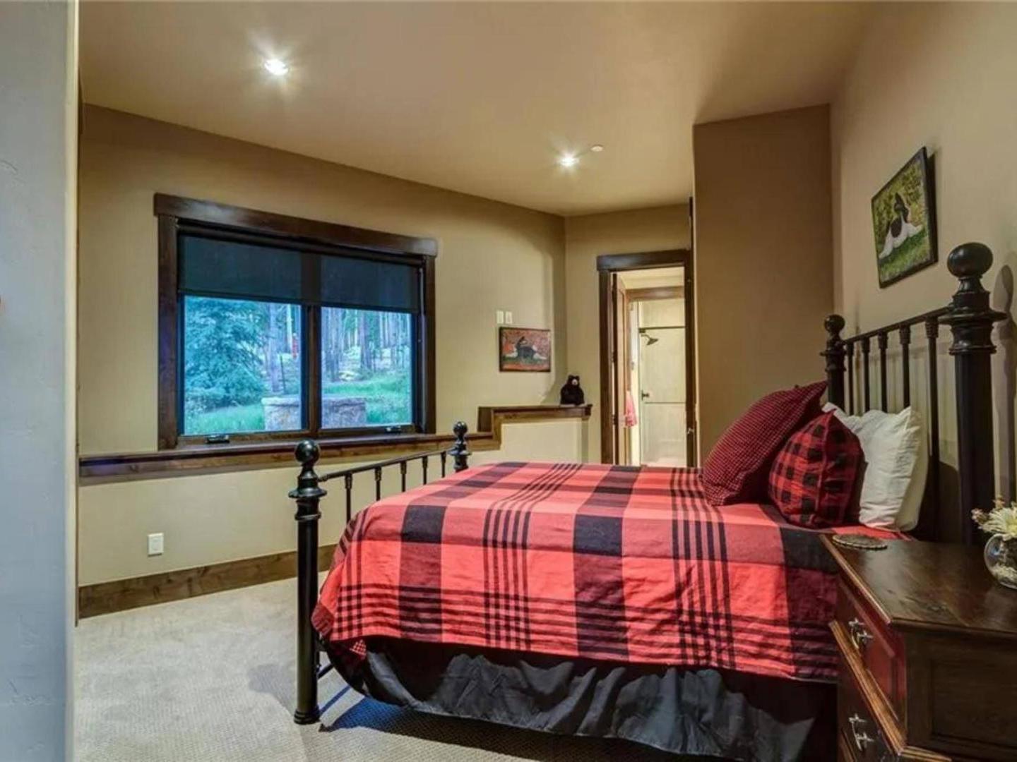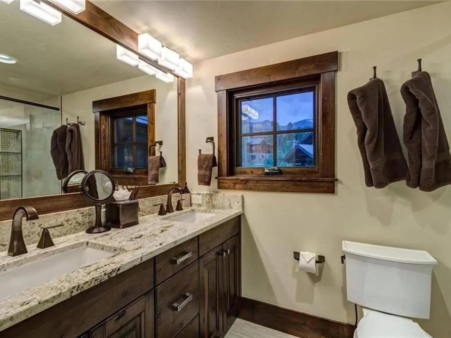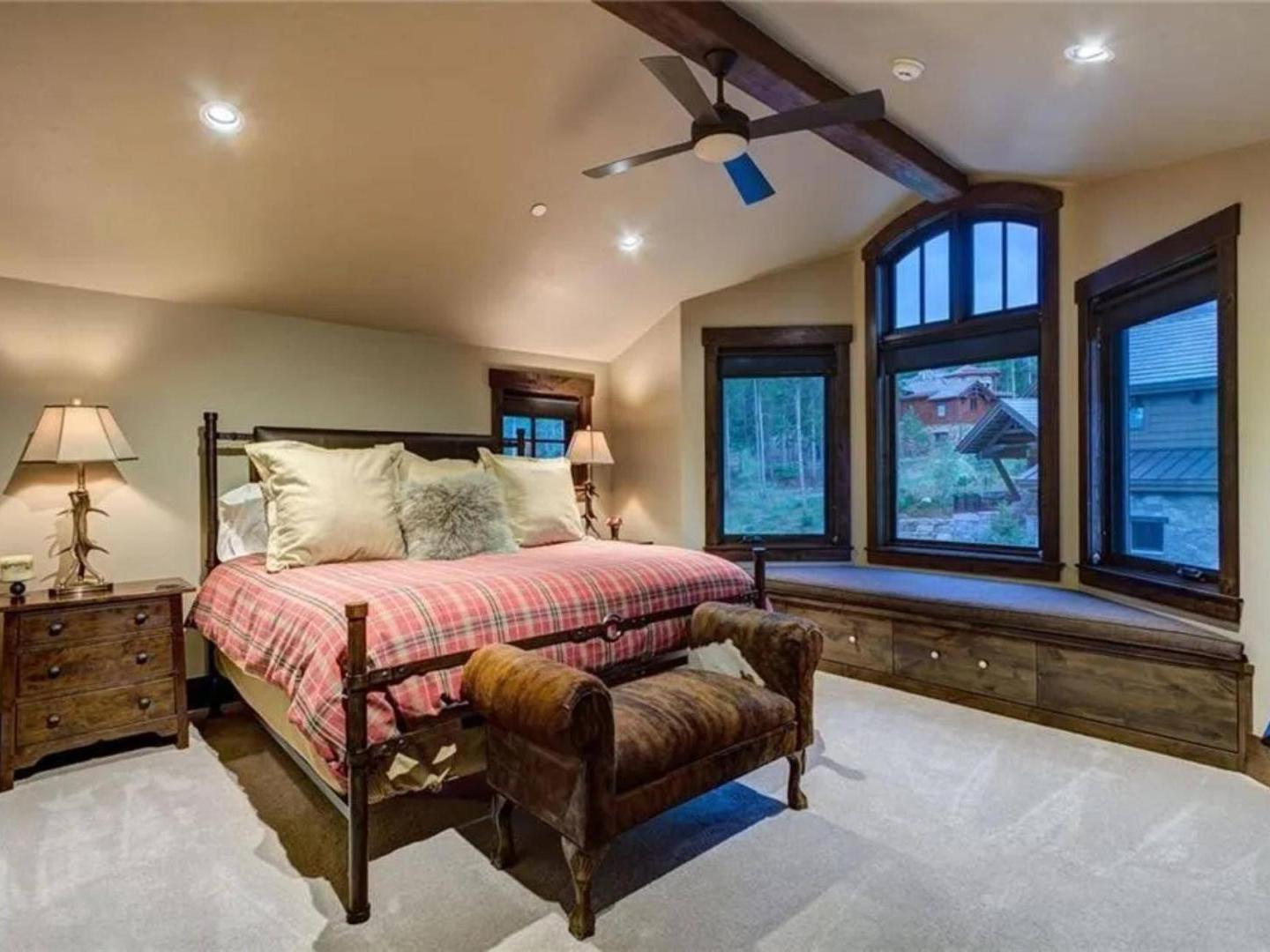 Whether you're gathering around the cozy fireplace, enjoying après-ski in the spacious great room, or preparing meals in the gourmet kitchen, every corner of this 5-bedroom, 5.5-bathroom luxury retreat is thoughtfully crafted to offer comfort, style, and convenience in a stunning alpine setting. Infused with an authentic Western mountain vibe, the main living room welcomes you with vaulted ceilings, exposed beam architecture, and plush furnishings centered around a striking fireplace and adjacent wall-mounted television.