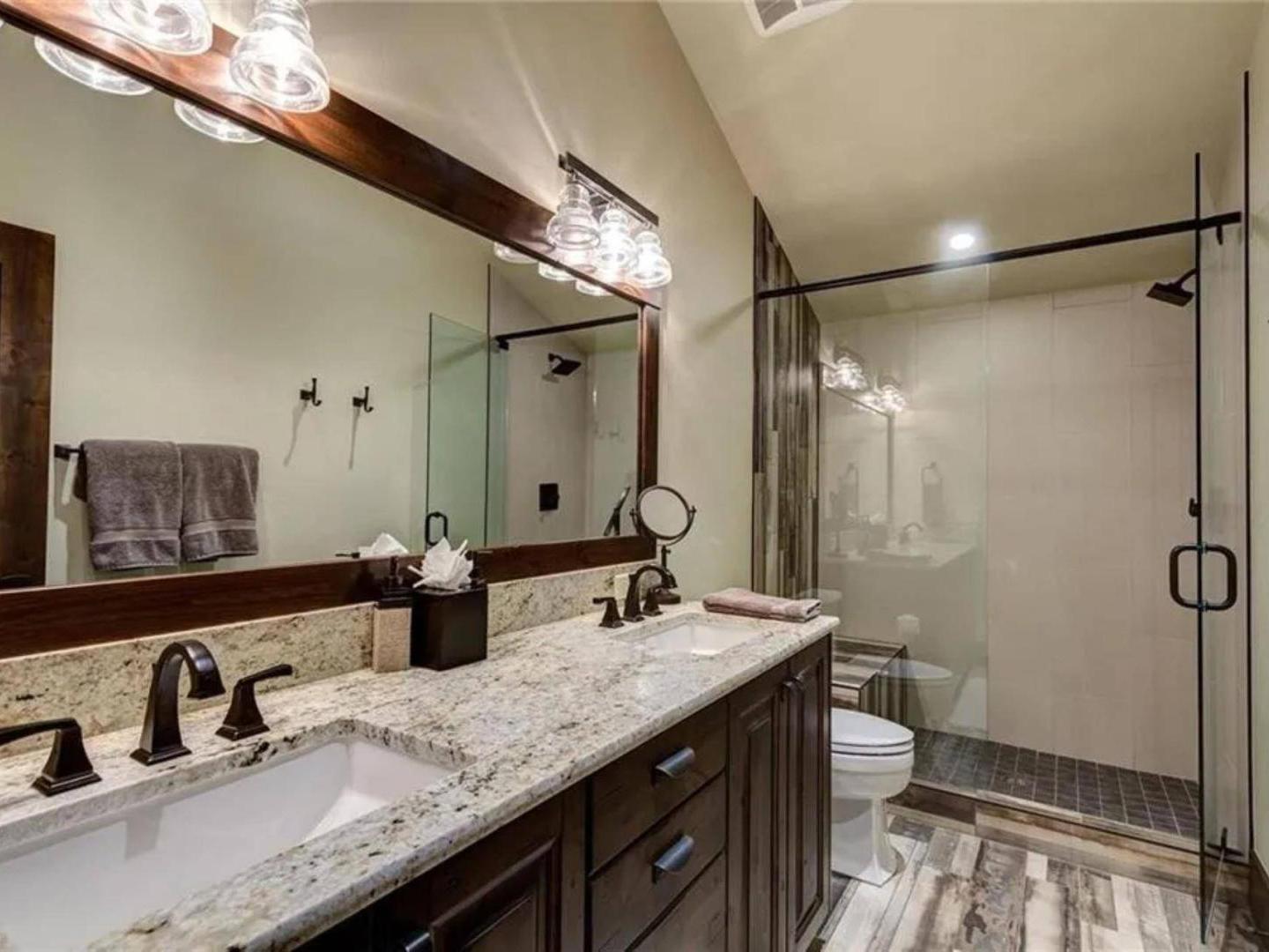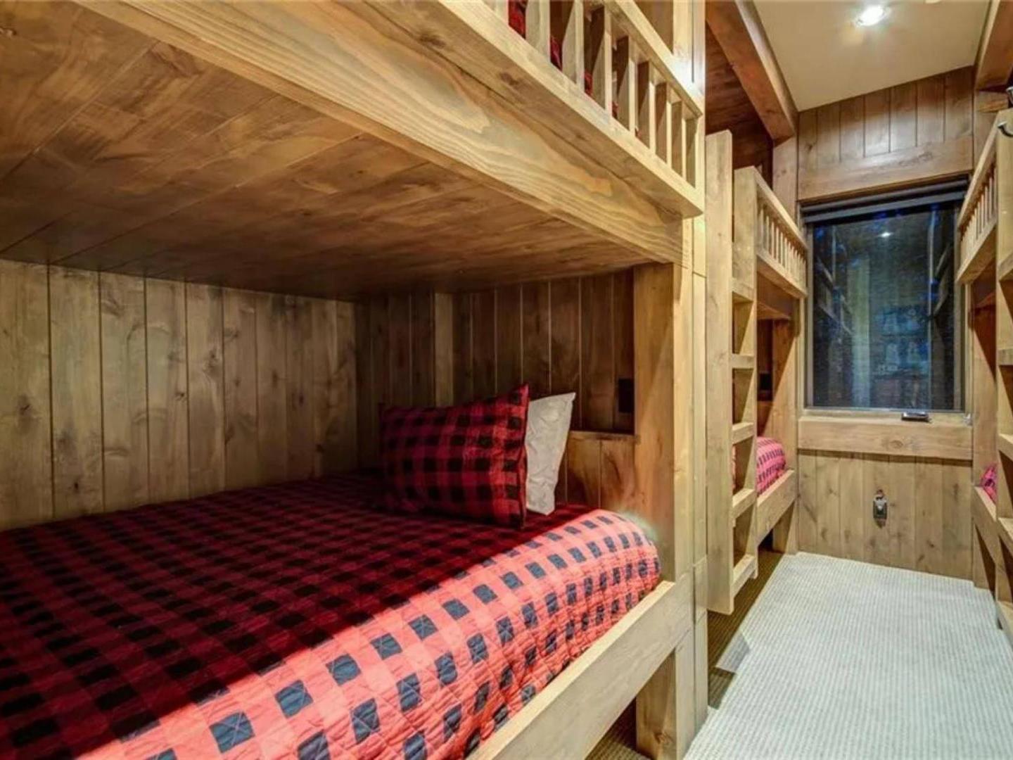 On the lower level, one bedroom includes a King bed and a Twin-over-Twin bunk, while the second is a true bunk room with four Twin-over-Twin bunks plus a Full-over-Full bunk—perfect for kids or larger groups. Both lower-level bedrooms have private bathrooms, offering comfort and convenience for all.