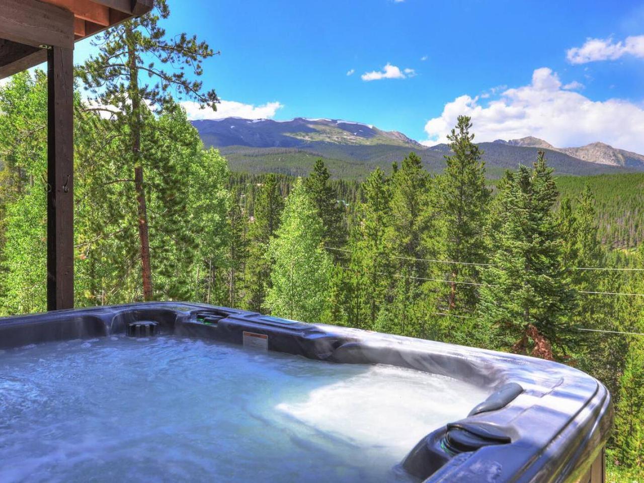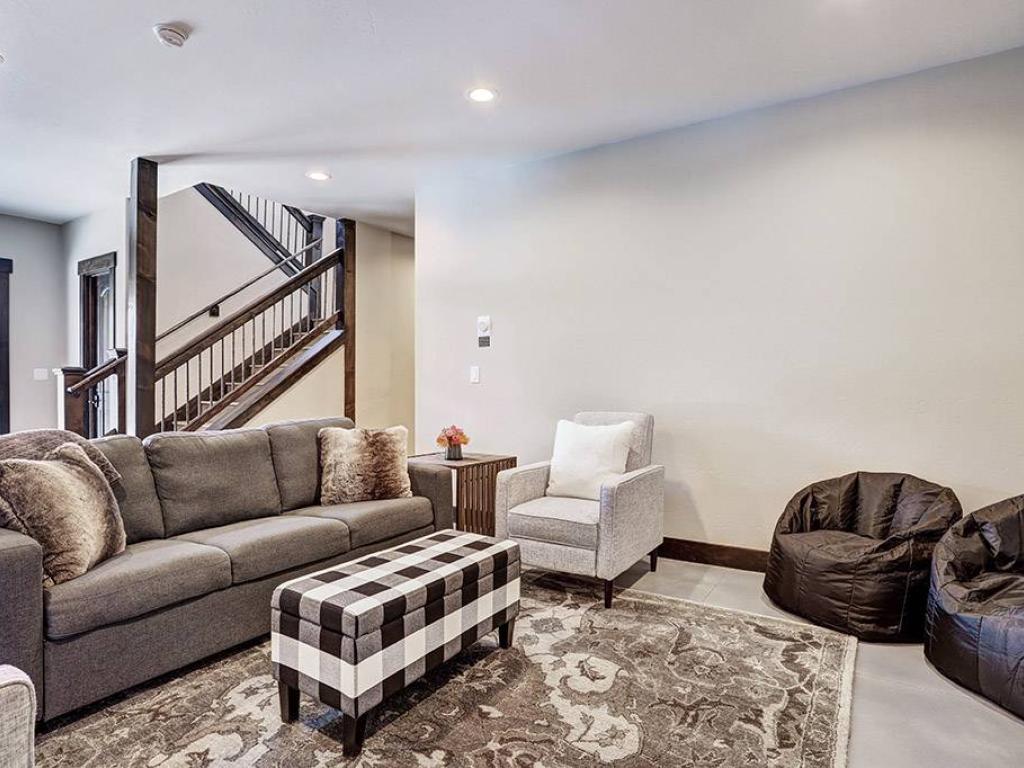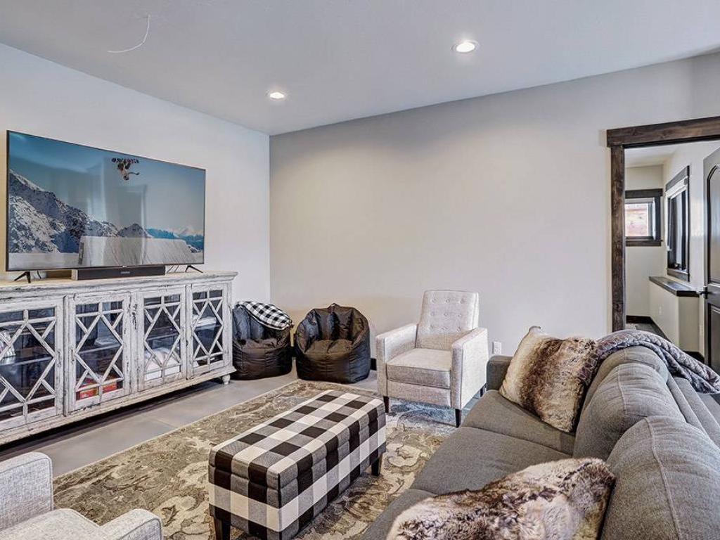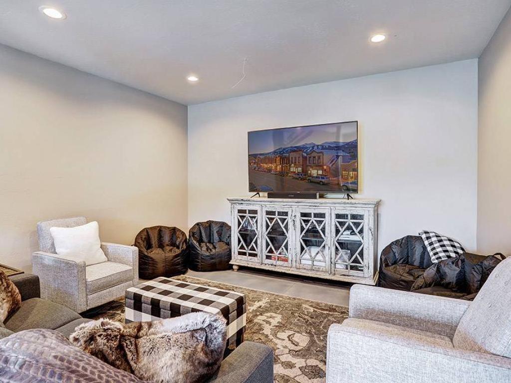 Enjoy movie night in the lower level family room featuring comfortable furnishings focused on a large screen television. After a day of adventure in the mountains relax in the private hot tub on the lower level patio while enjoying the captivating views and Rocky Mountain sunset.