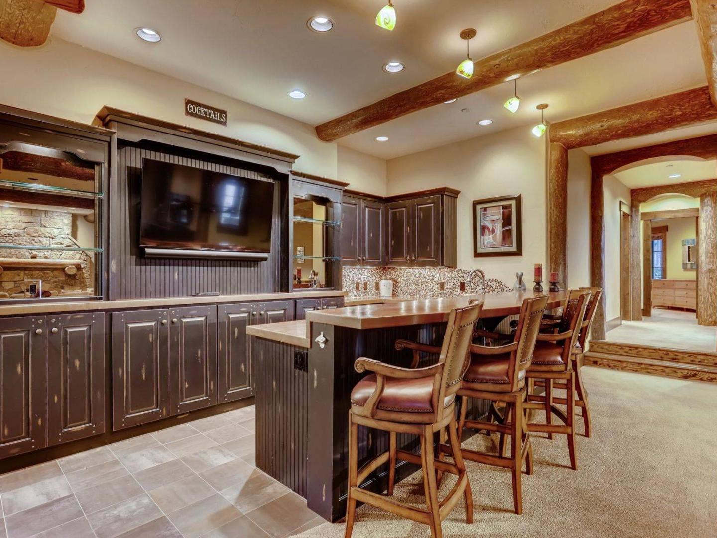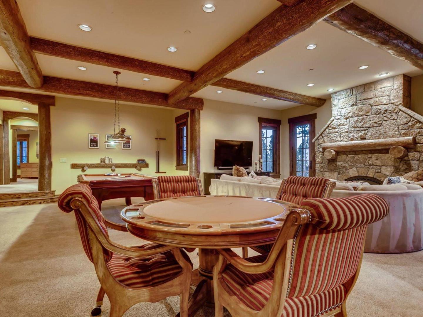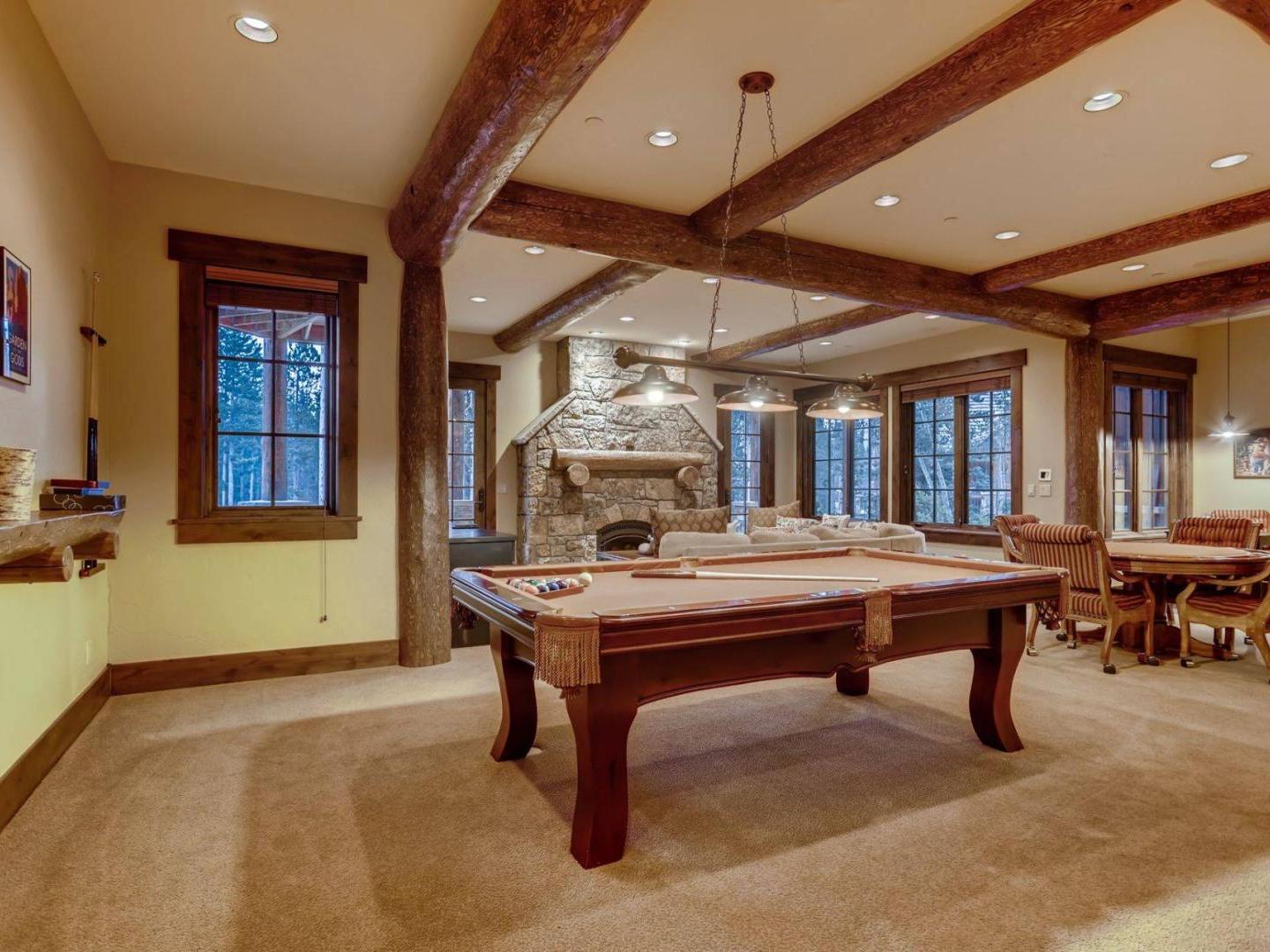 Located on the lower level is a second living space equipped for hours of evening fun. Relax in front of the fireplace while enjoying a game or movie on the large television, break out the cards for some poker at the game table, or play pool on the billiards table in the festive family room. The large wet bar invites the beverage-maker in the group to host the festivities in style. Step out back to find the sunken hot tub and the outdoor fireplace set under the expansive Colorado sky.