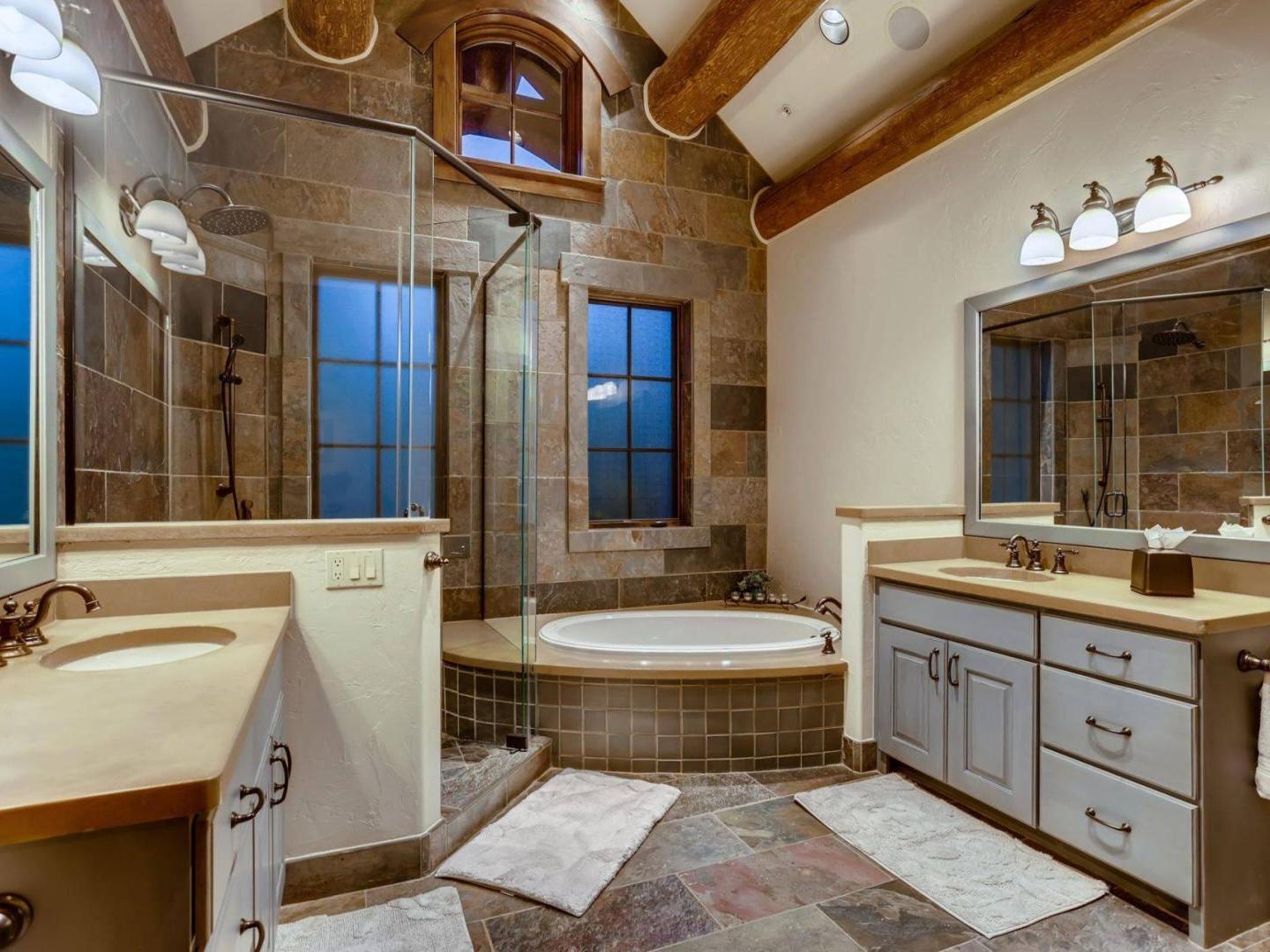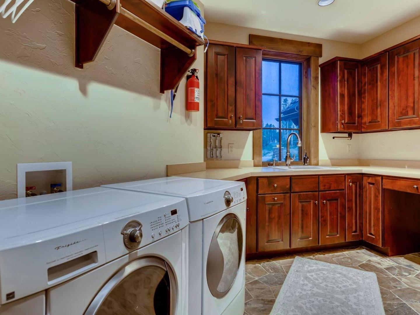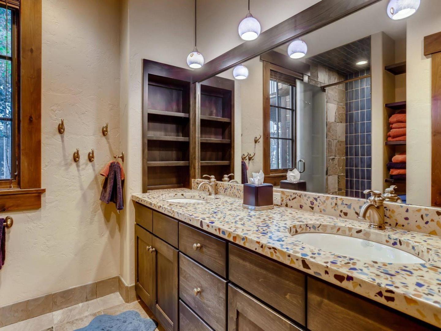 Located on the lower level is a second living space equipped for hours of evening fun. Relax in front of the fireplace while enjoying a game or movie on the large television, break out the cards for some poker at the game table, or play pool on the billiards table in the festive family room. The large wet bar invites the beverage-maker in the group to host the festivities in style. Step out back to find the sunken hot tub and the outdoor fireplace set under the expansive Colorado sky.