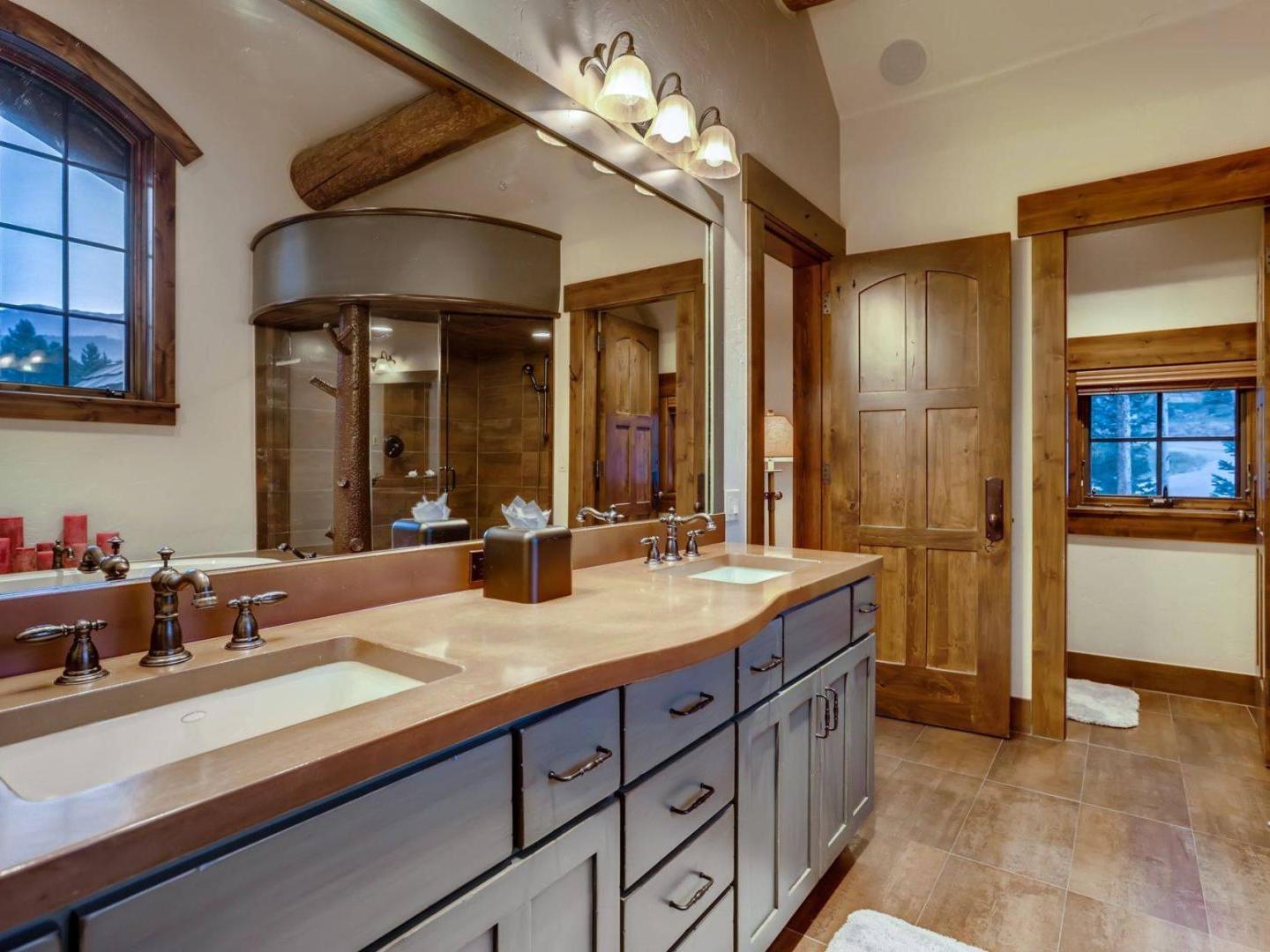 Six bedrooms are distributed over the three levels of the home providing an abundance of bedding for up to 28 guests. Two master bedrooms, one furnished with a King bed and the other with a Queen bed, are located on the main level, each featuring a private bathroom. An expansive master suite with a King bed and beautiful private bathroom occupies the upper level of the residence.