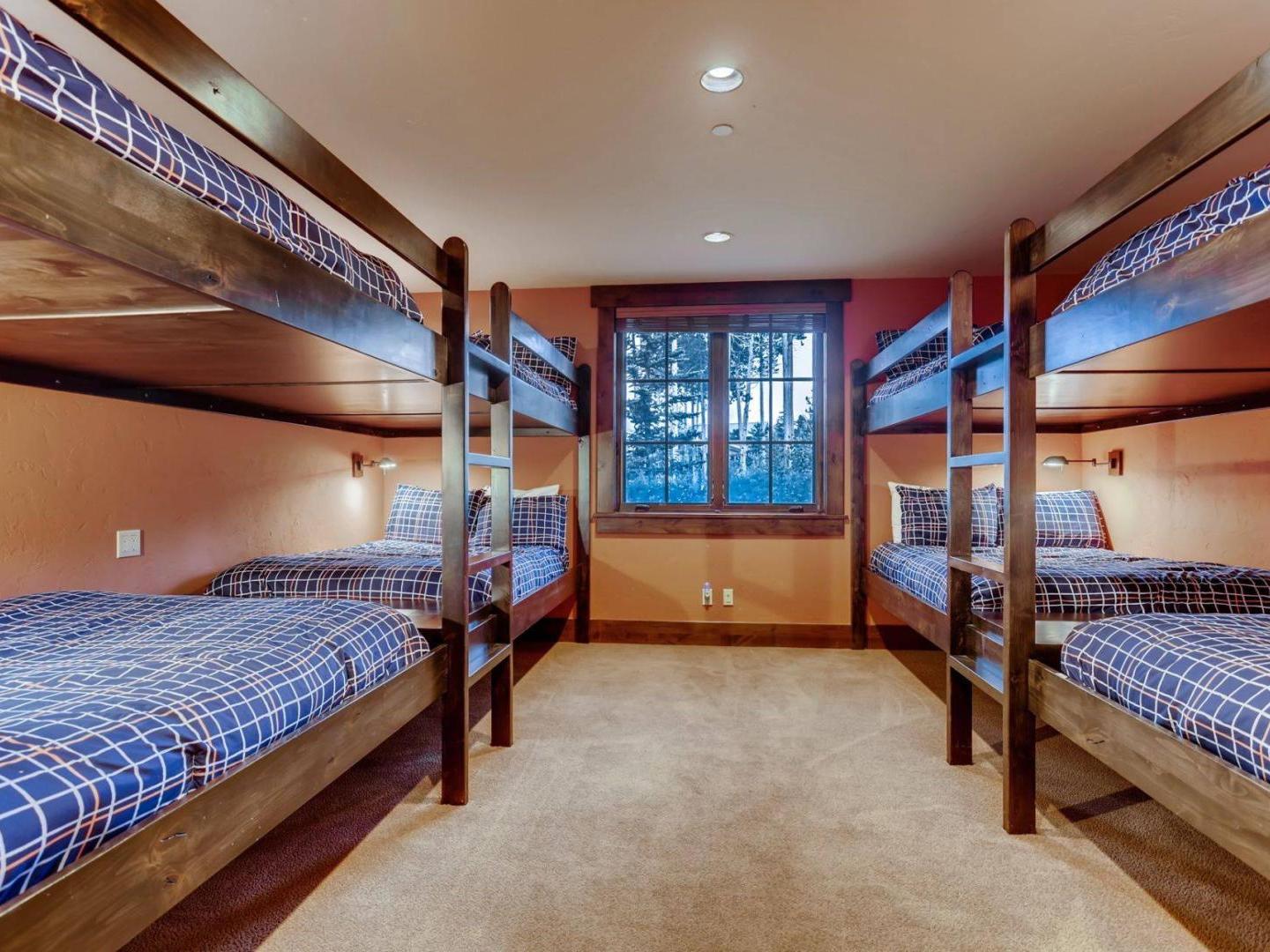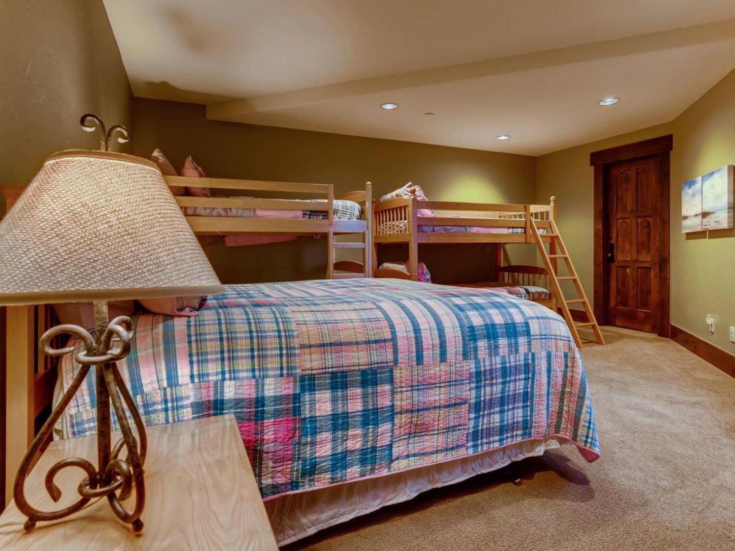 The three remaining bedrooms are found on the lower level off of the family room. Two bedrooms share a bathroom, one offering a Queen bed while the other is a large bedroom with a Twin Bunk bed plus a Queen bed to sleep 4. The remaining bedroom on the lower level has an attached bathroom and four Double-Size Bunk Beds for 8 adults or up to 16 kids!