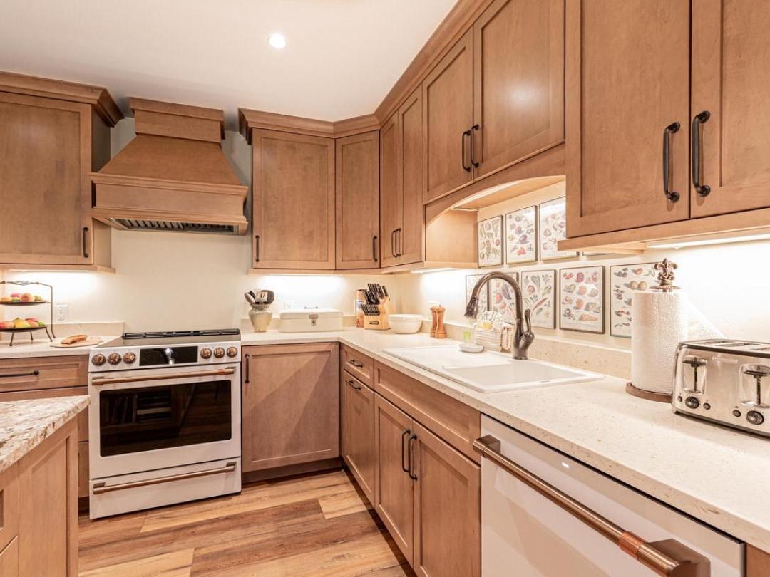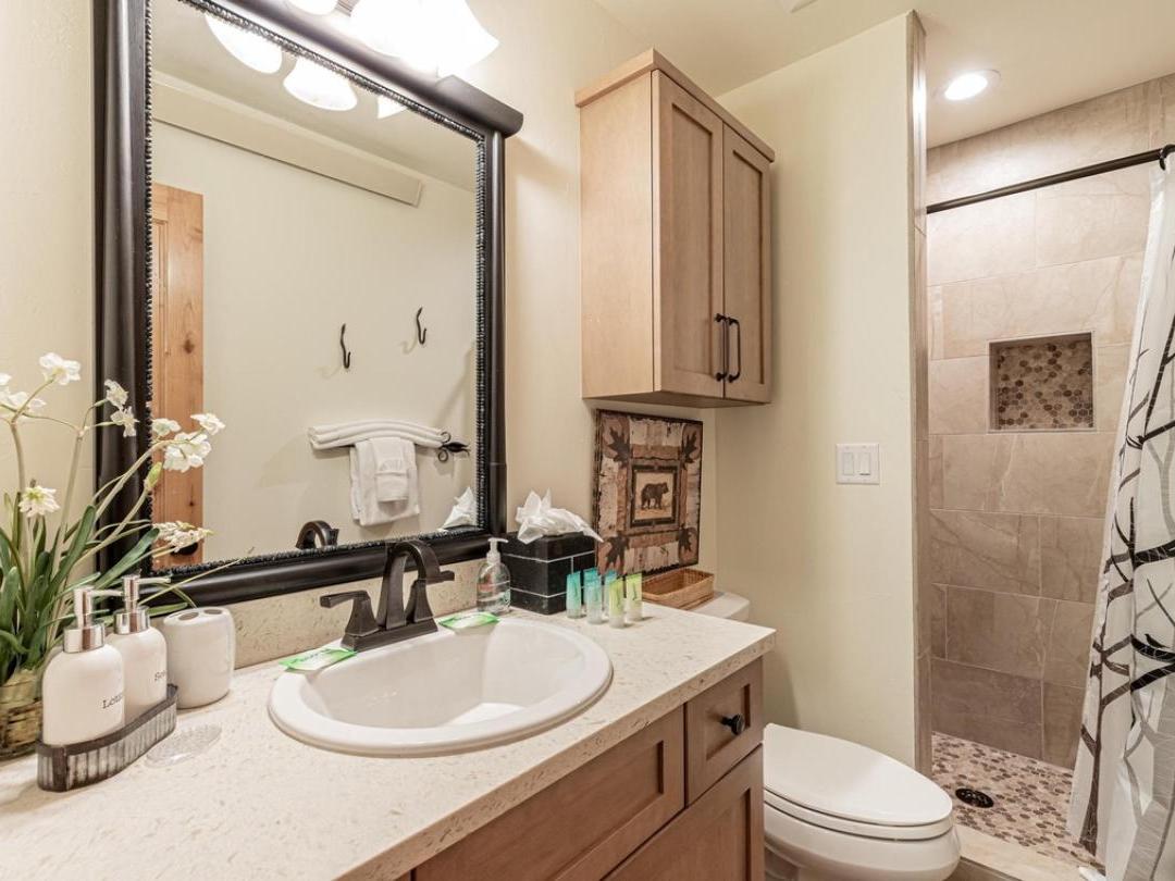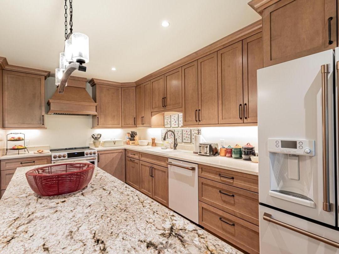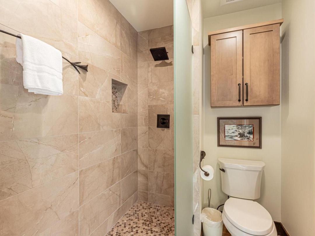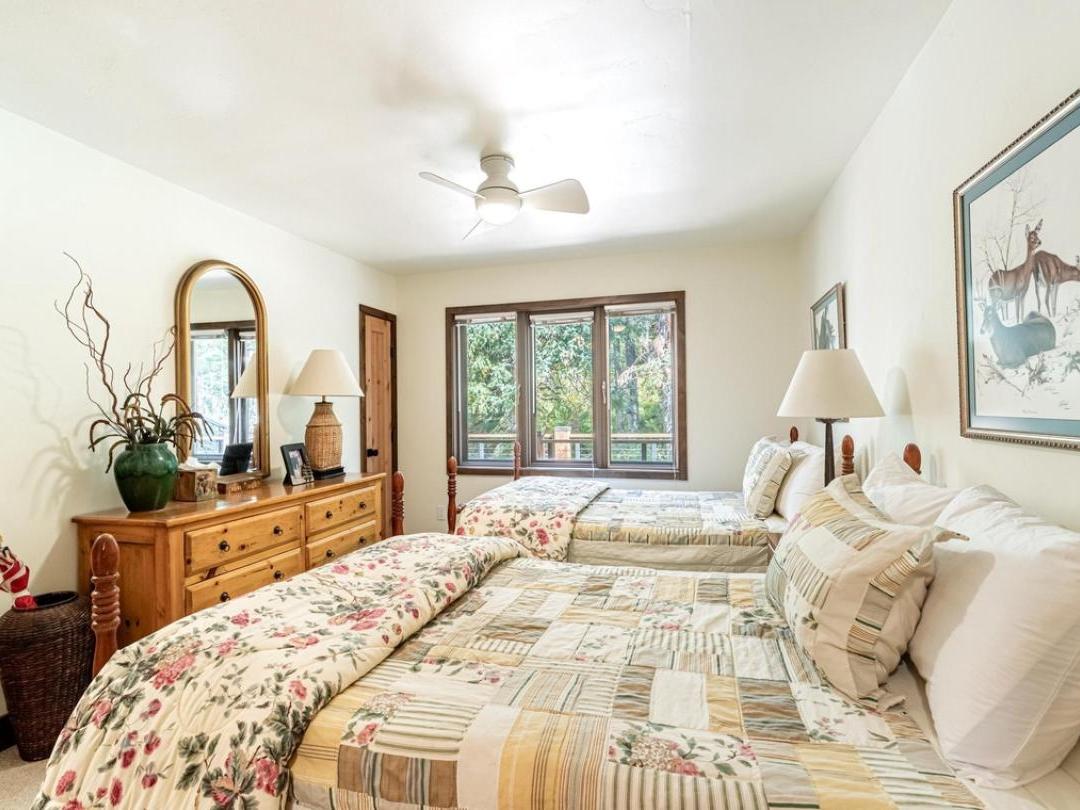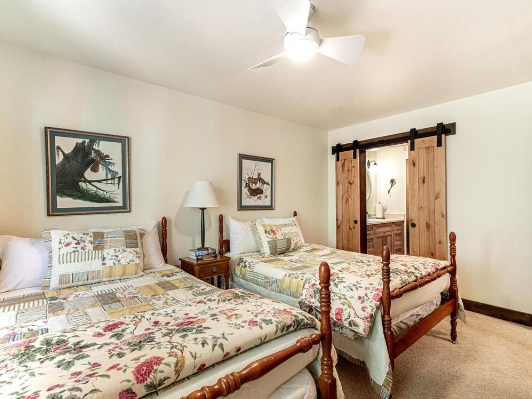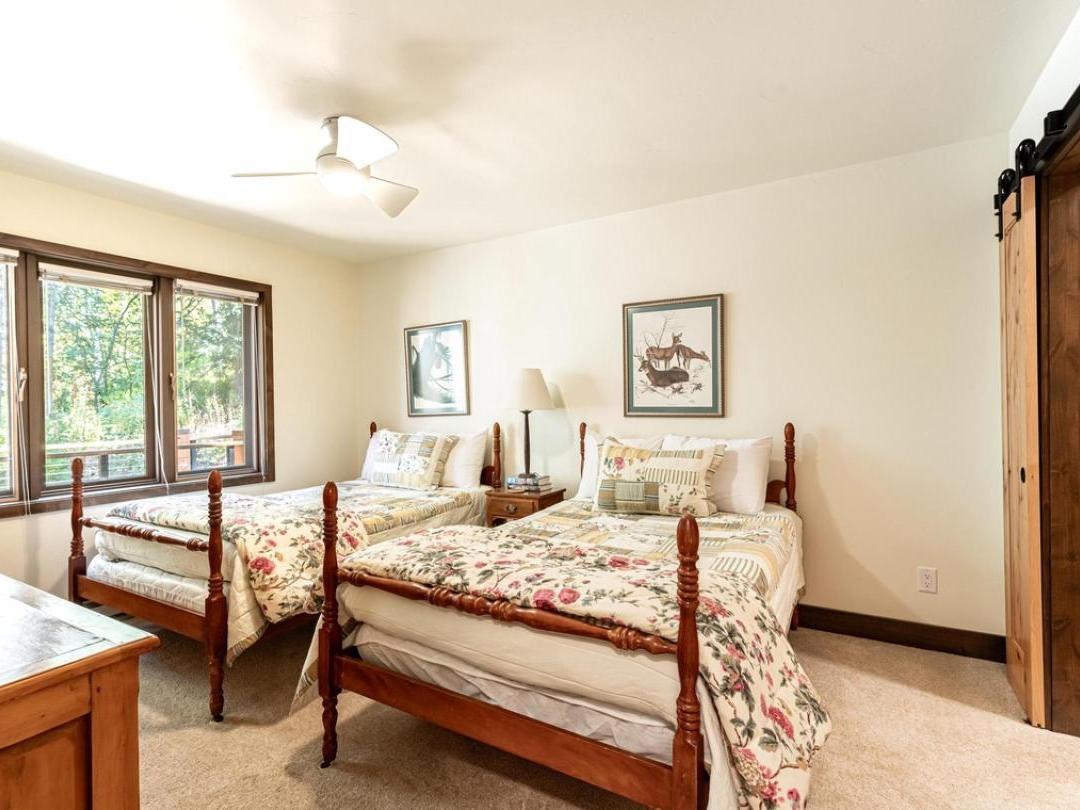 Upon entering Ski Trail Chalet, the wide open kitchen, living and dining area is right in front of you boosting dramatic high vaulted ceilings. The kitchen of this ski chalet is fully equipped with all the bells and whistles for your perfect family meal. There is a gas BBQ grill on the large deck right outside of the dining area. Enjoy the great views with a glass of wine while you are grilling. The warm and cozy fireplace inside will add to the great mountain feel of this ski home. There are 2 large bedroom on this level - one with a queen bed and one with 2 twin beds, which can be put together to become a king to fit perfectly your group. There is one full bathroom on that level, shared by both the bedroom and the living area. Moving downstairs, we have 2 more very large bedrooms plus the extremely large Master suite.