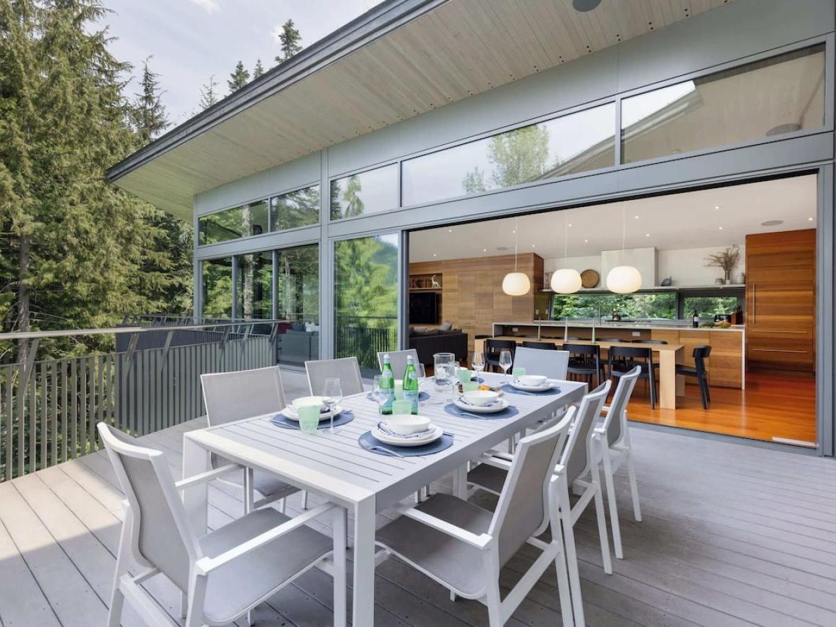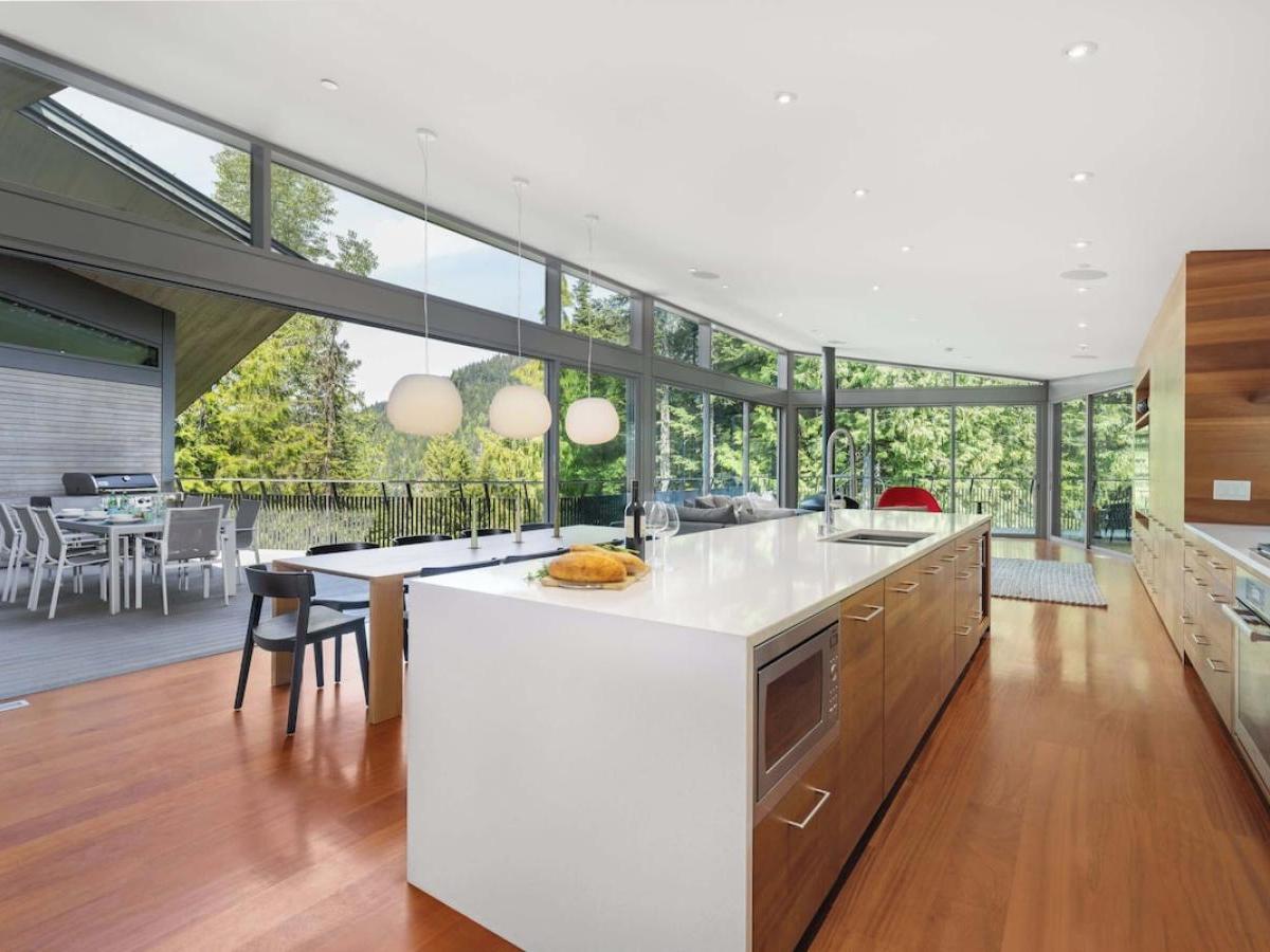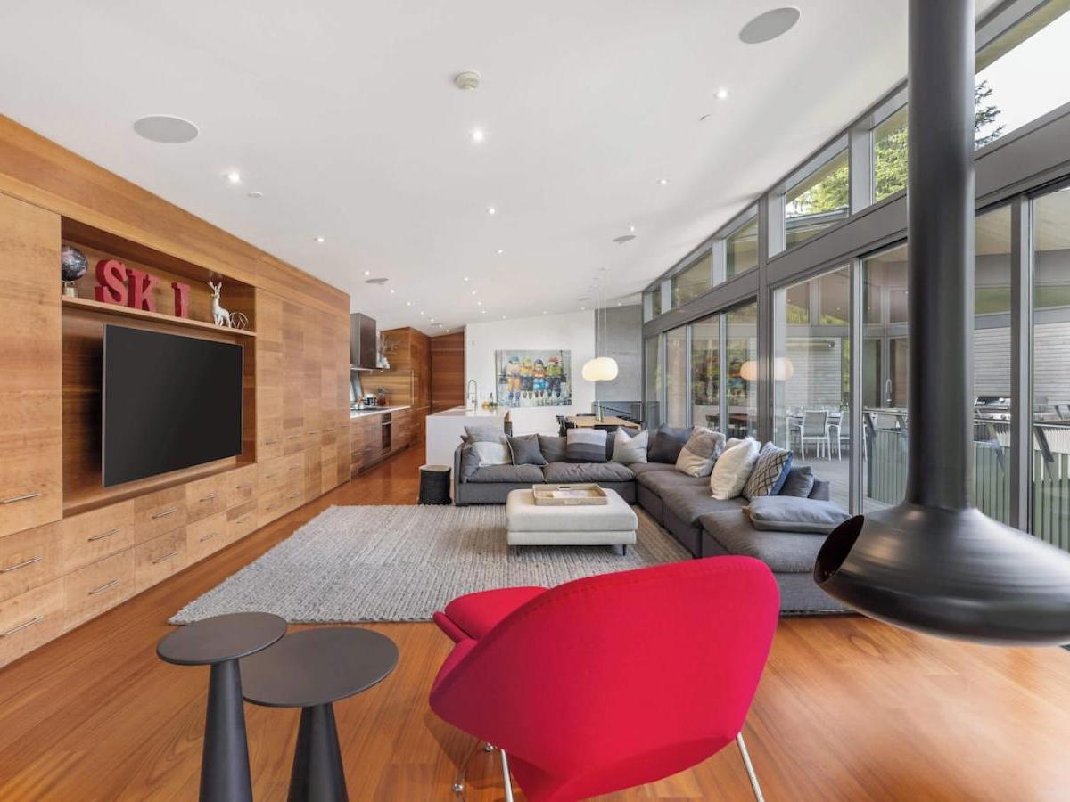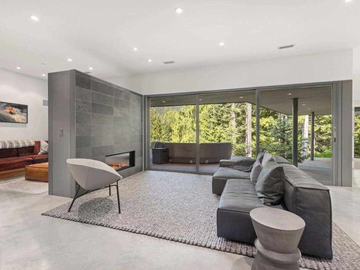 Step inside this 5-bedroom, 4-bathroom mountain retreat where sophisticated design meets alpine charm. The open-concept living area showcases natural Cherrywood finishes, vaulted ceilings, and expansive windows that capture sweeping views of Whistler’s iconic peaks. Unwind in the spacious living room, where plush seating surrounds a suspended fireplace, and large glass doors open directly onto the sun deck — perfect for après-ski cocktails or summer evenings around the BBQ.
