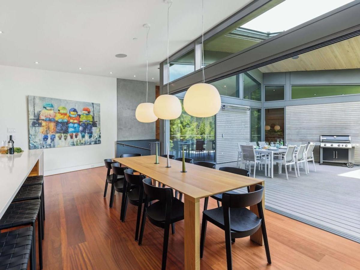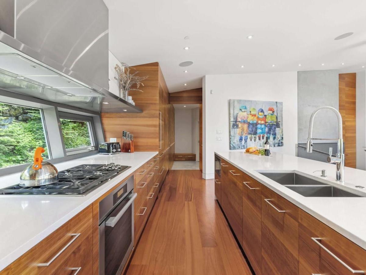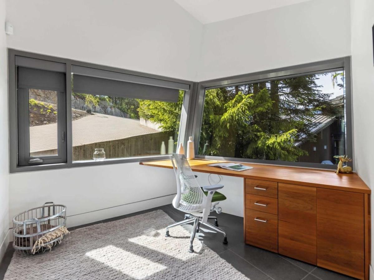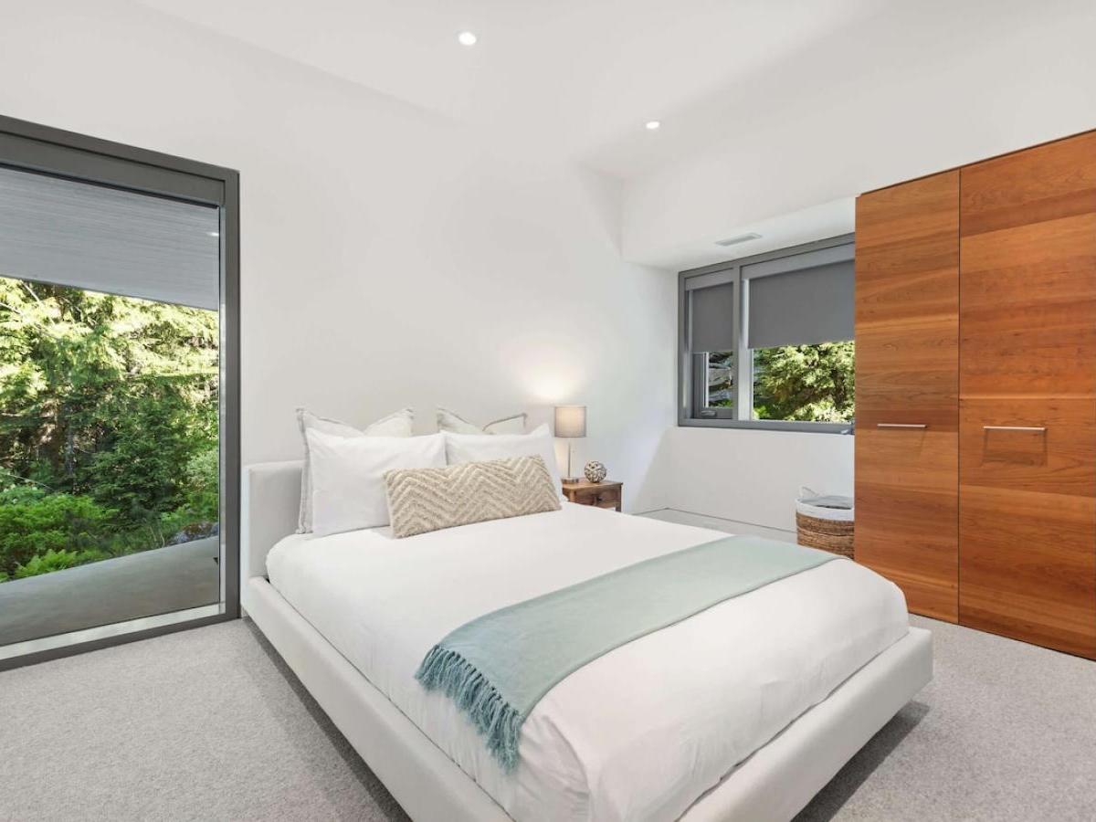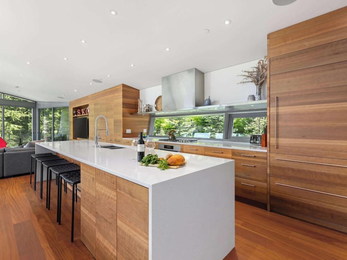 Step inside this 5-bedroom, 4-bathroom mountain retreat where sophisticated design meets alpine charm. The open-concept living area showcases natural Cherrywood finishes, vaulted ceilings, and expansive windows that capture sweeping views of Whistler’s iconic peaks. Unwind in the spacious living room, where plush seating surrounds a suspended fireplace, and large glass doors open directly onto the sun deck — perfect for après-ski cocktails or summer evenings around the BBQ.