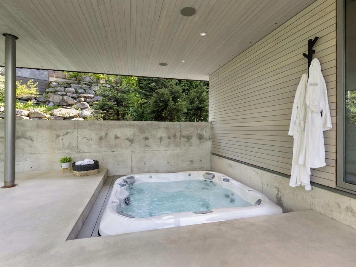 Step outside to your own private alpine oasis. featuring a private hot tub nestled among the trees. The expansive deck, with panoramic mountain views, invites you to dine alfresco or gather with friends for sunset drinks overlooking the runs of Whistler. Practicality meets luxury with a heated two-car garage, snow-melt driveway, and ample gear storage, ensuring effortless transitions from outdoor adventure to cozy indoor comfort. Inside, radiant heated floors provide consistent warmth throughout the home, while air conditioning keeps the atmosphere refreshingly cool during warmer months.