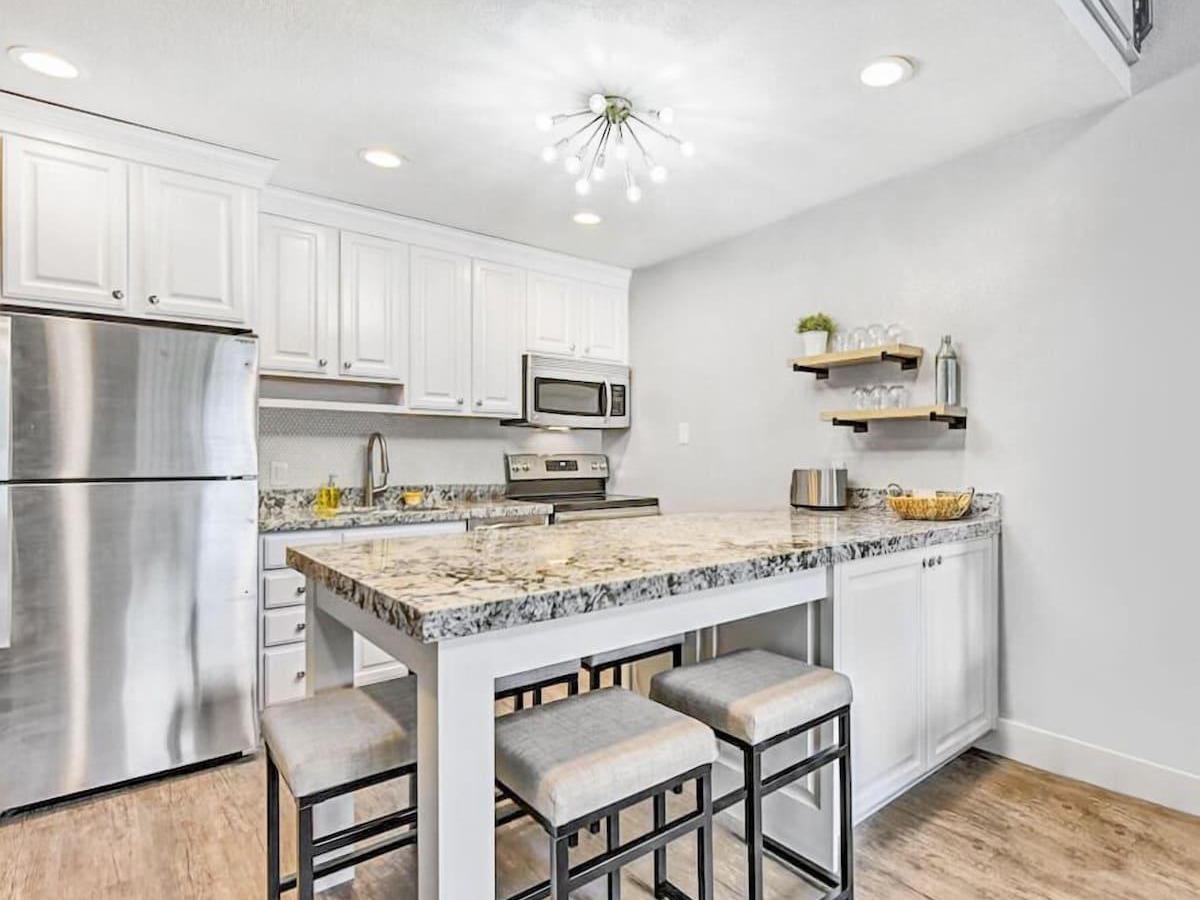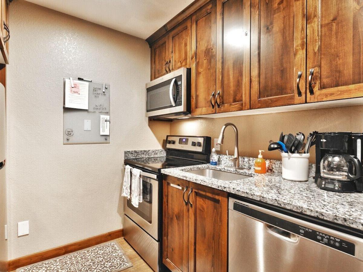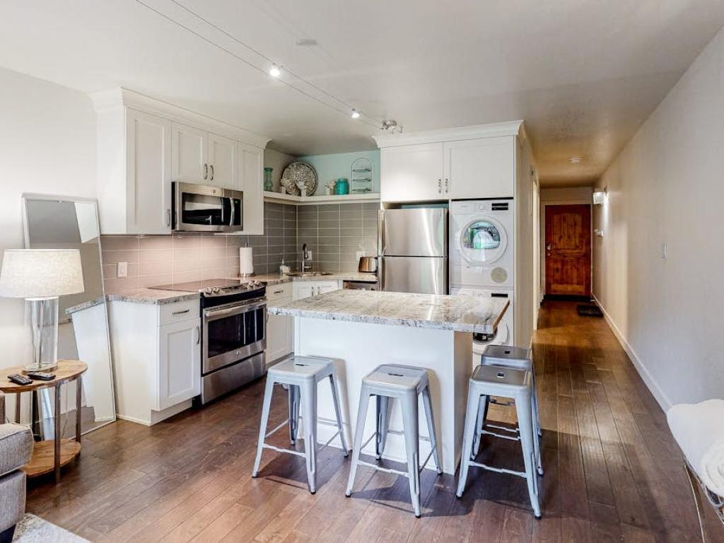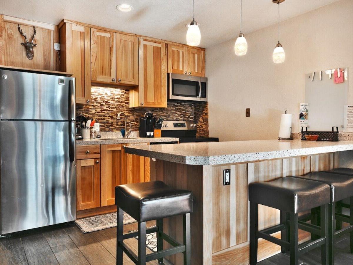 These cozy one-bedroom and one-bedroom-plus-loft vacation rentals are perfect for small families or groups of friends seeking comfort and convenience. Each condominium is individually decorated, well maintained, and many have been recently updated. With full kitchens, welcoming living rooms with fireplaces, and access to the property’s outdoor pool and hot tub, guests have everything they need for a relaxing and enjoyable Park City getaway.