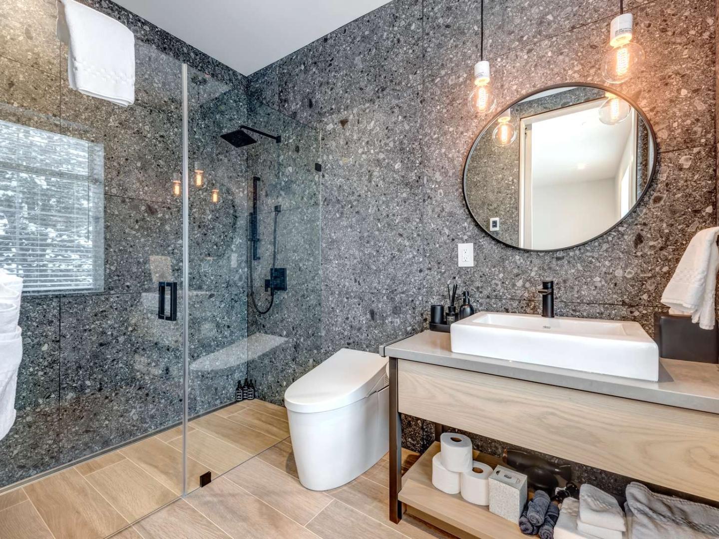Bedrooms are thoughtfully spread across multiple levels, with primary suites featuring large beds and private bathrooms. Secondary bedrooms often include queen or king beds with private bathrooms, while guest rooms vary in layout—some offering bunk beds or twin configurations to suit families or groups. Each residence is individually styled and appointed, with select townhomes offering private decks with BBQs and indoor or outdoor hot tubs for added luxury.