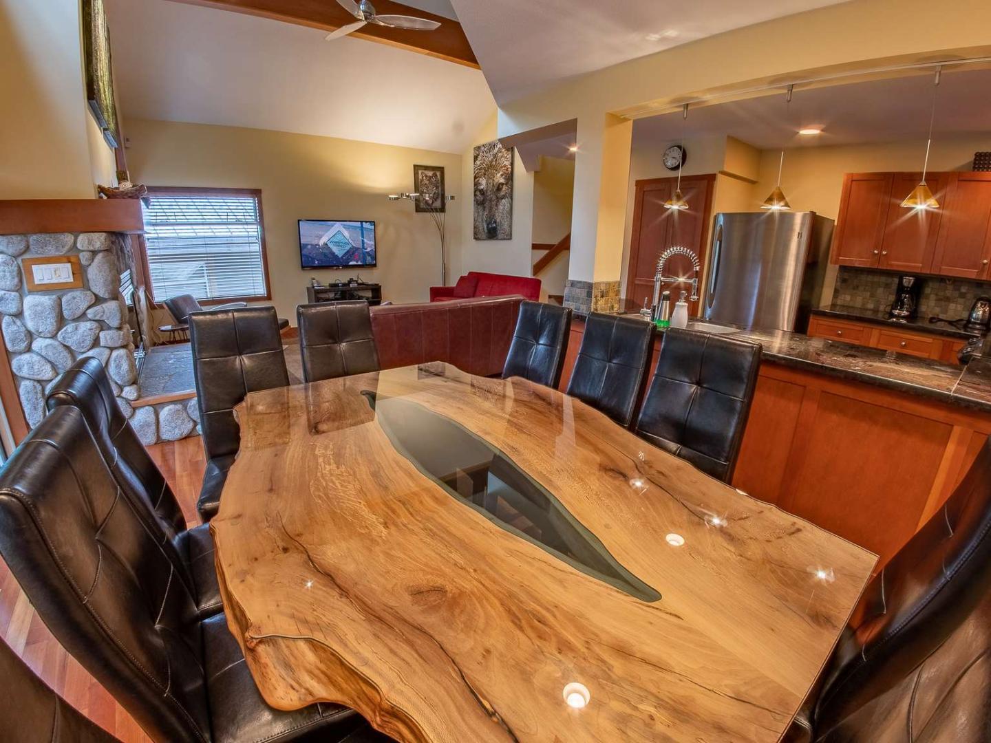 nside each 4- or 5-bedroom residence at Snowy Creek, comfortable furnishings are arranged around gas fireplaces in inviting living rooms with open-concept layouts, ideal for gathering and entertaining. Just off the main living space, dining areas and fully equipped kitchens ensure no one misses a moment of connection. Many residences also feature family rooms, dens, or loft areas, offering additional space for larger groups to relax and unwind.