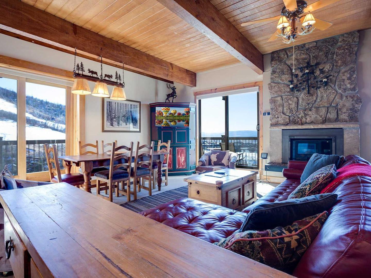 Storm Meadows Club has a variety of lodging option with studio, one bedroom, one bedroom plus loft, and two bedroom individually owned and decorated condominiums. Fully equipped for a comfortable vacation, each vacation rental has a full kitchen that is open to the living room with fireplace and adjacent balcony. Many of the units have been updated in this extremely reasonably priced property with top amenities and a superior Steamboat location.