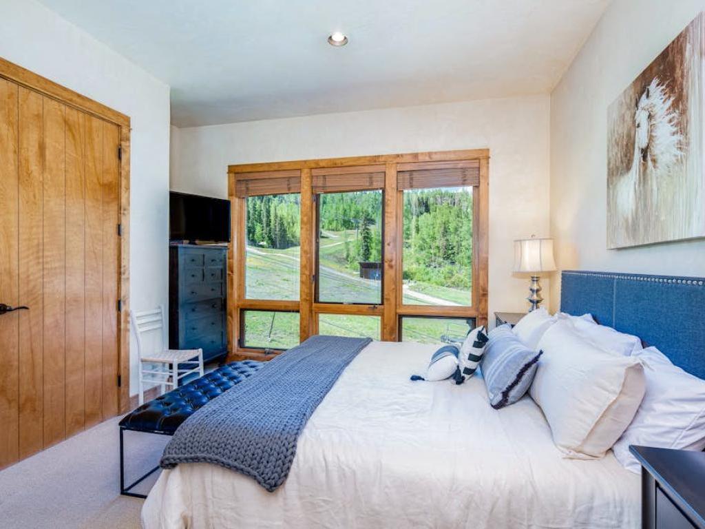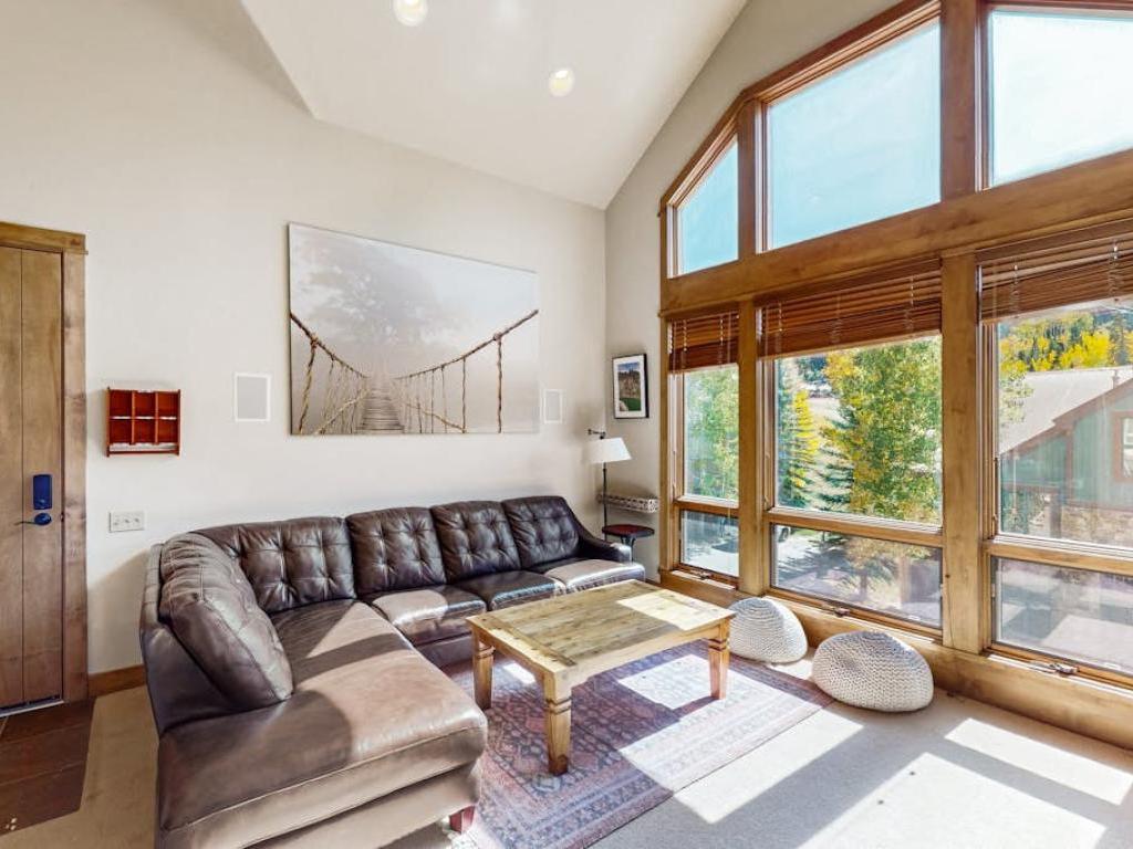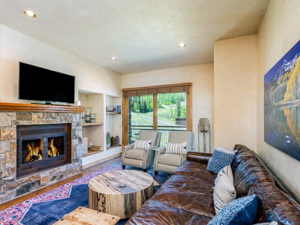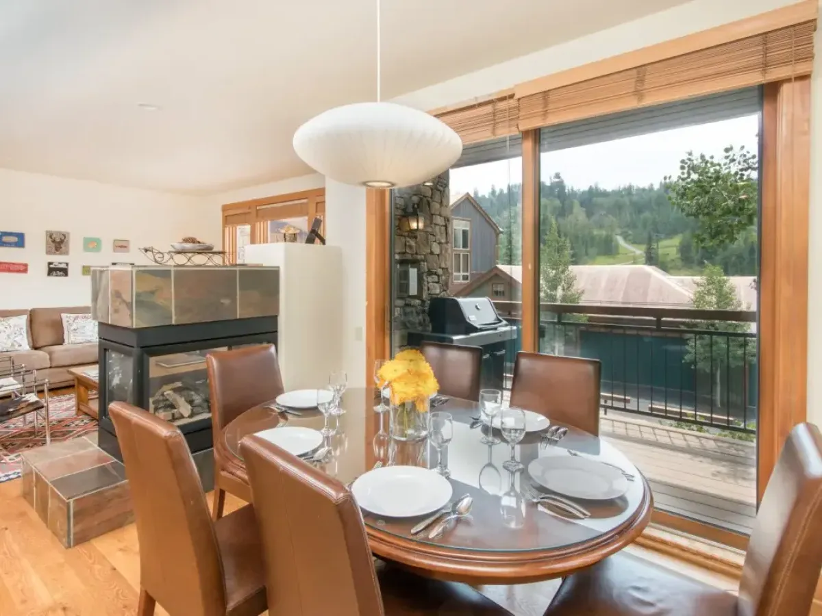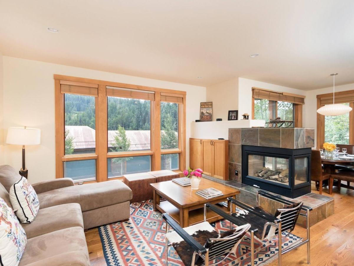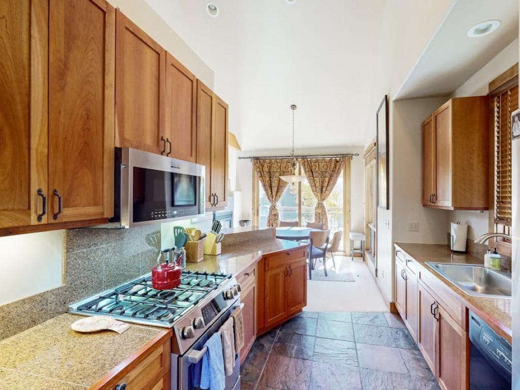 The luxury accommodations at the Terraces on the Meadows are spacious and open. A comfortably furnished living room with gas fireplace is open to a dining area and gourmet kitchen featuring upscale appliances and granite countertops. Spectacular mountain views are afforded through large windows in the living room as well as from the private decks. Spacious bedrooms are furnished with quality bedding and a sleeper sofa in the living rooms provides additional sleeping space.