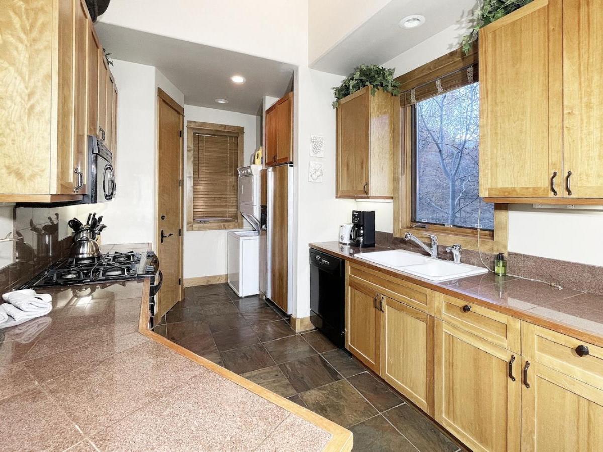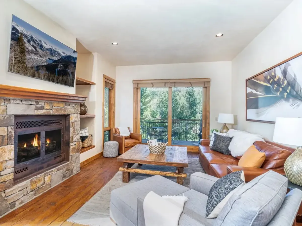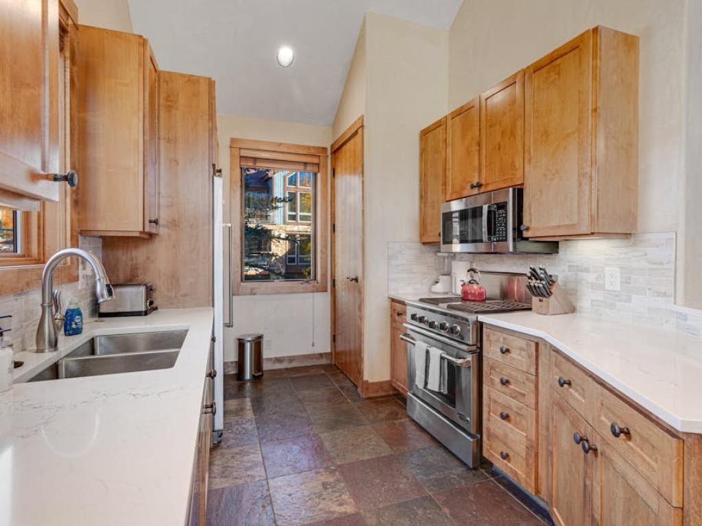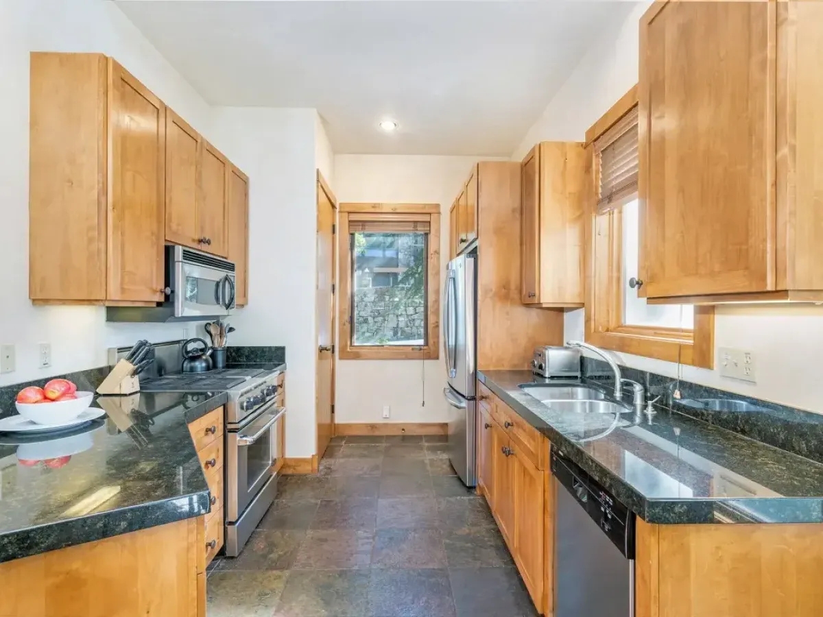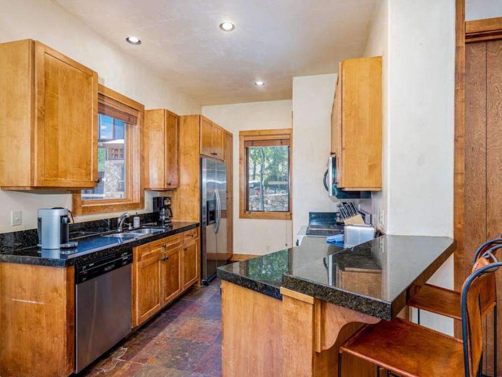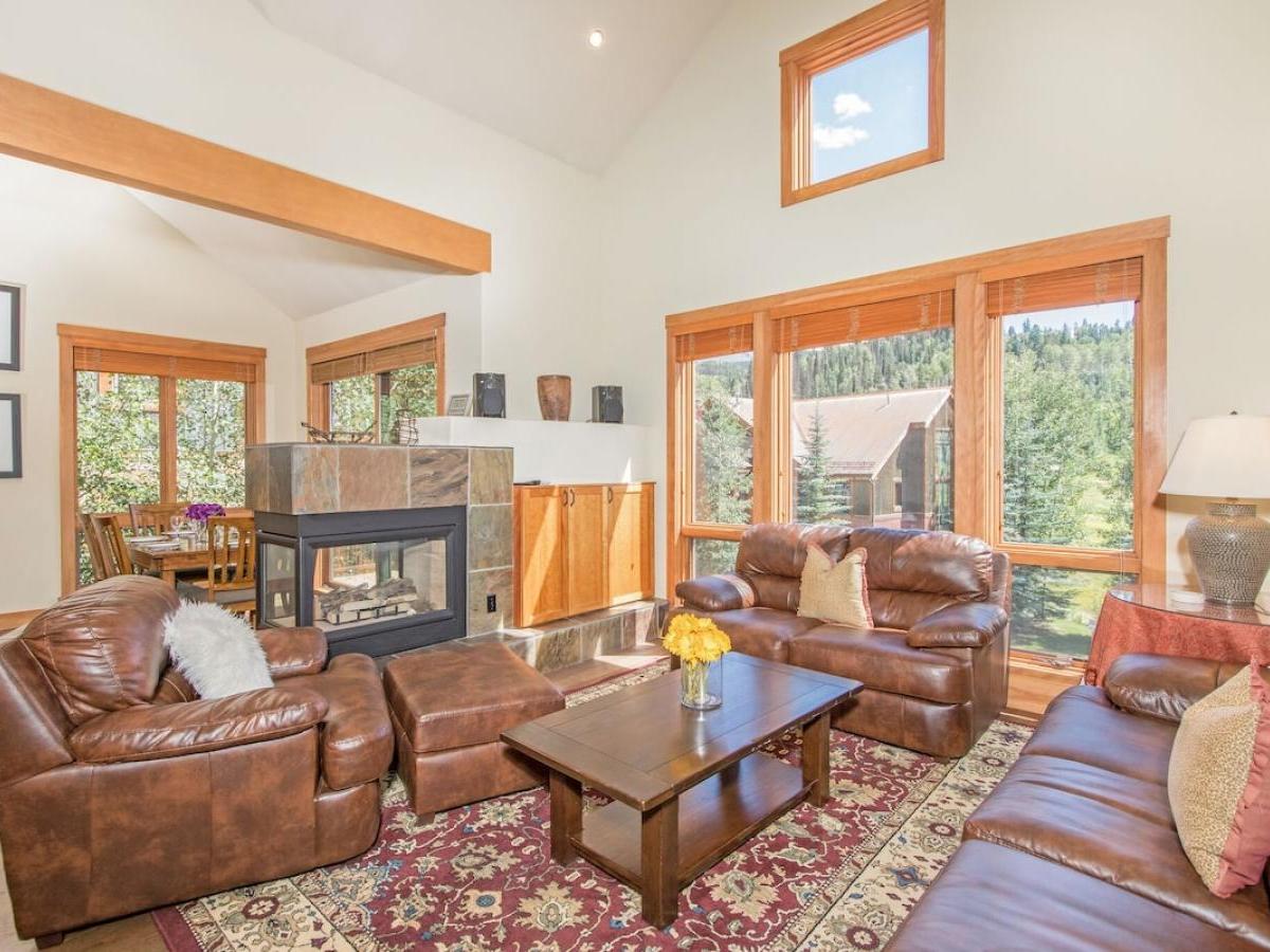 The luxury accommodations at the Terraces on the Meadows are spacious and open. A comfortably furnished living room with gas fireplace is open to a dining area and gourmet kitchen featuring upscale appliances and granite countertops. Spectacular mountain views are afforded through large windows in the living room as well as from the private decks. Spacious bedrooms are furnished with quality bedding and a sleeper sofa in the living rooms provides additional sleeping space.