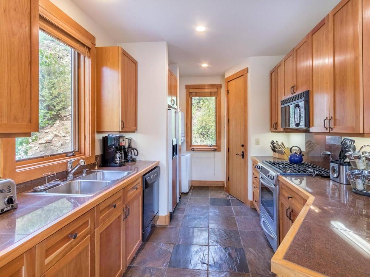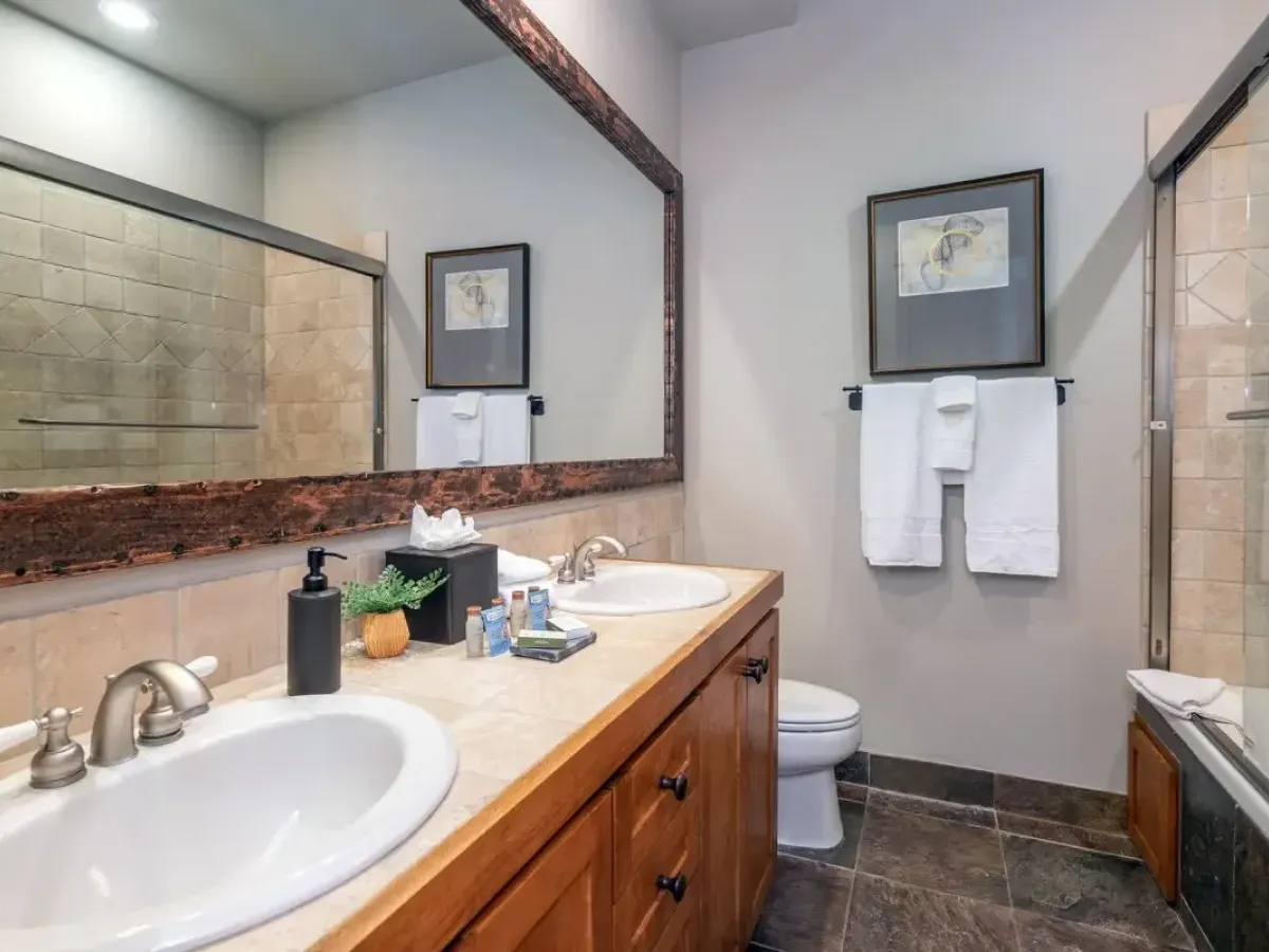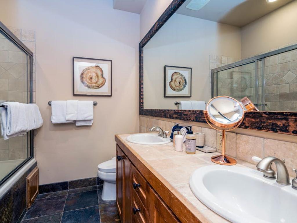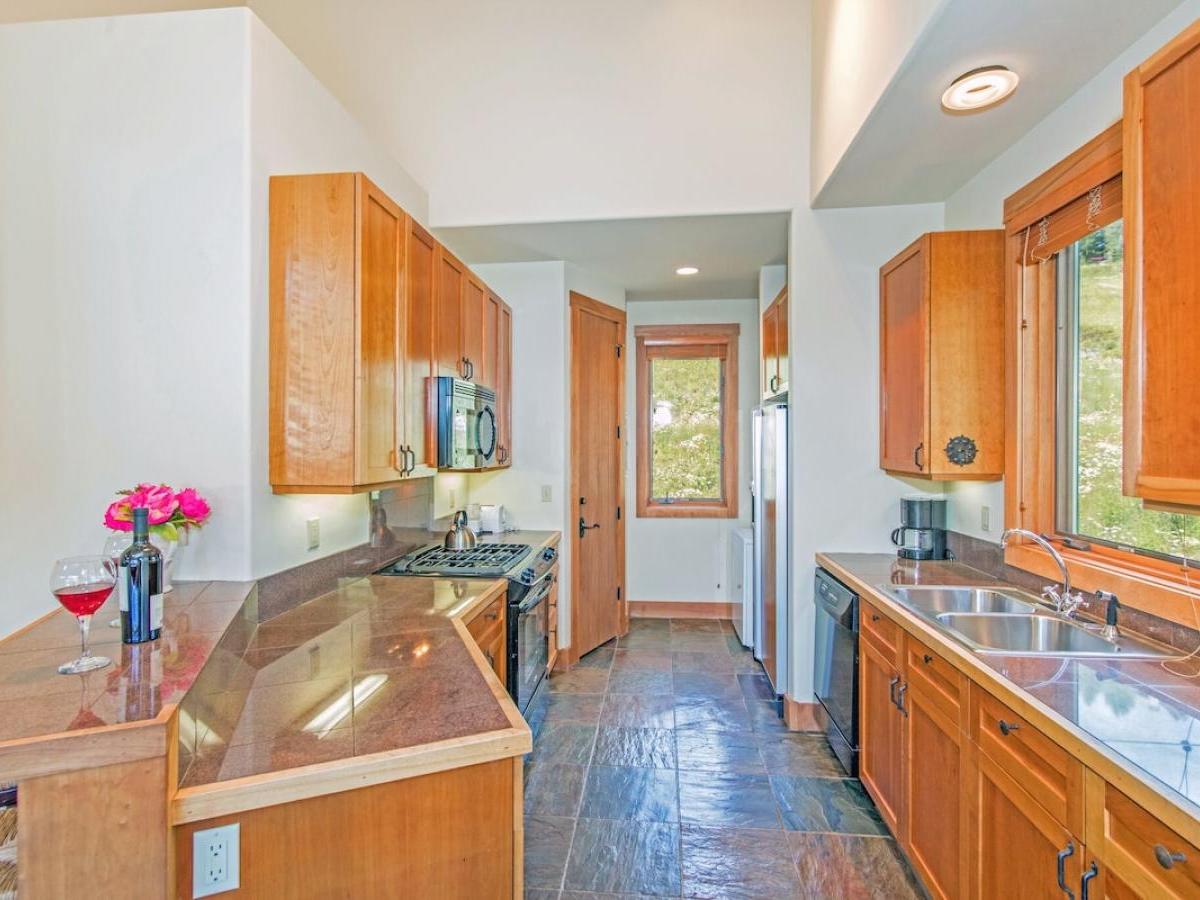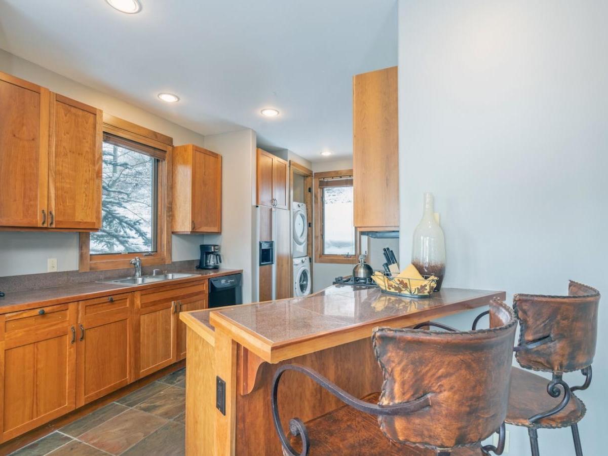 The luxury accommodations at the Terraces on the Meadows are spacious and open. A comfortably furnished living room with gas fireplace is open to a dining area and gourmet kitchen featuring upscale appliances and granite countertops. Spectacular mountain views are afforded through large windows in the living room as well as from the private decks. Spacious bedrooms are furnished with quality bedding and a sleeper sofa in the living rooms provides additional sleeping space.