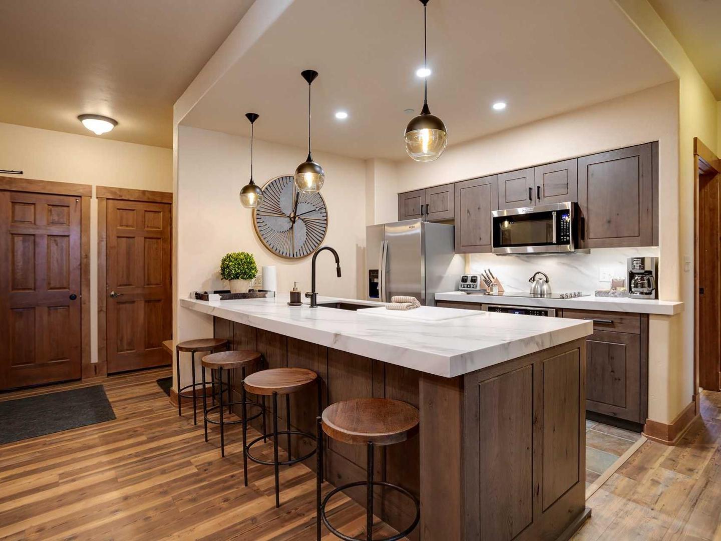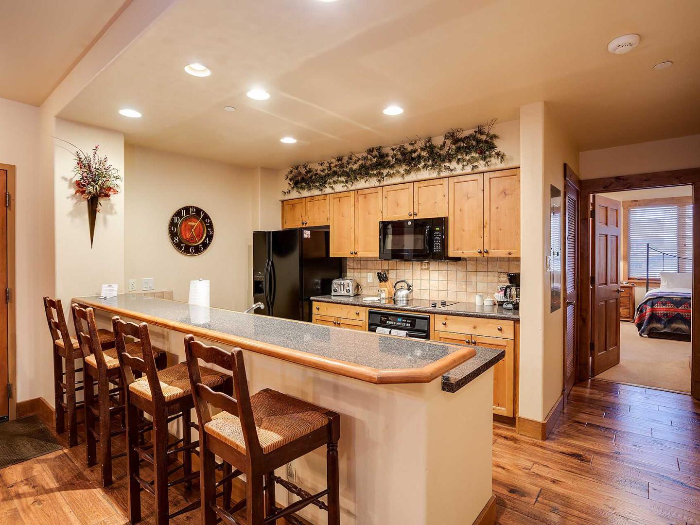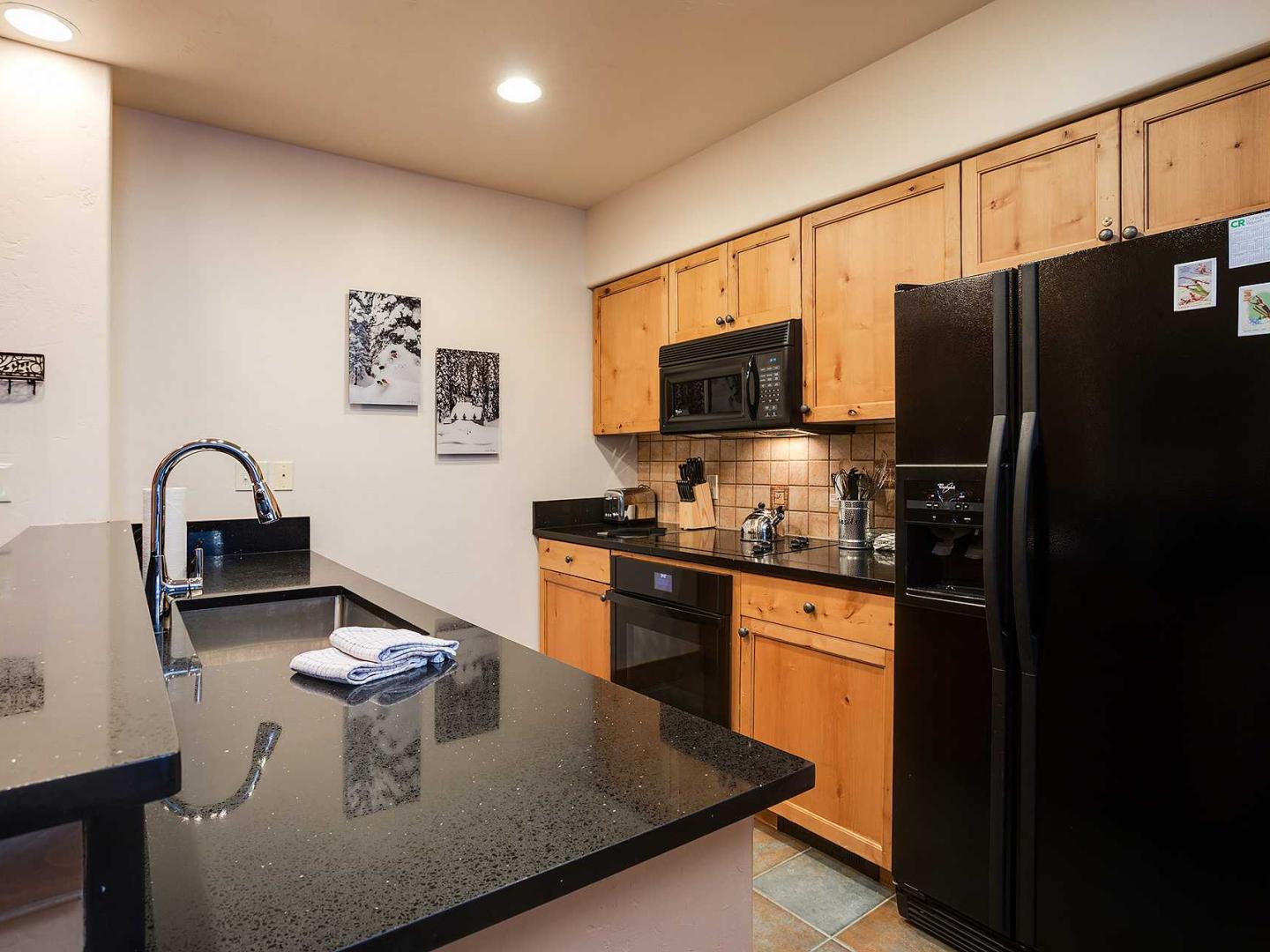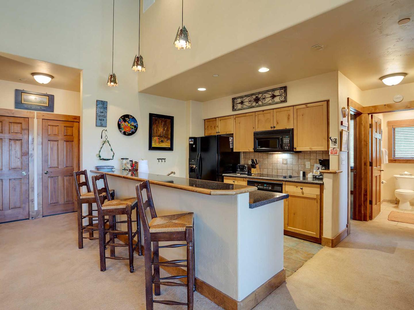 With an elegant mountain decor, these two to four bedroom condominiums provide a comfortable vacation rental for families both small and large. Each Timberline Lodge rental has a fully equipped kitchen with granite counters and custom tile that opens to a comfortably furnished living room with gas fireplace and adjacent private balcony. Other amenities include complimentary in-room high-speed wired Internet, a whirlpool bath, an in-room washer and dryer, private ski-lockers and heated underground parking.
